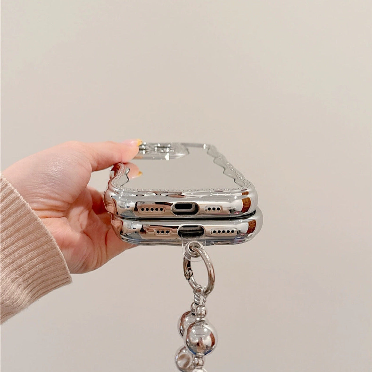 iPhoneケース おしゃれ ダイヤモンド シルバー ミラー付き スマホケース