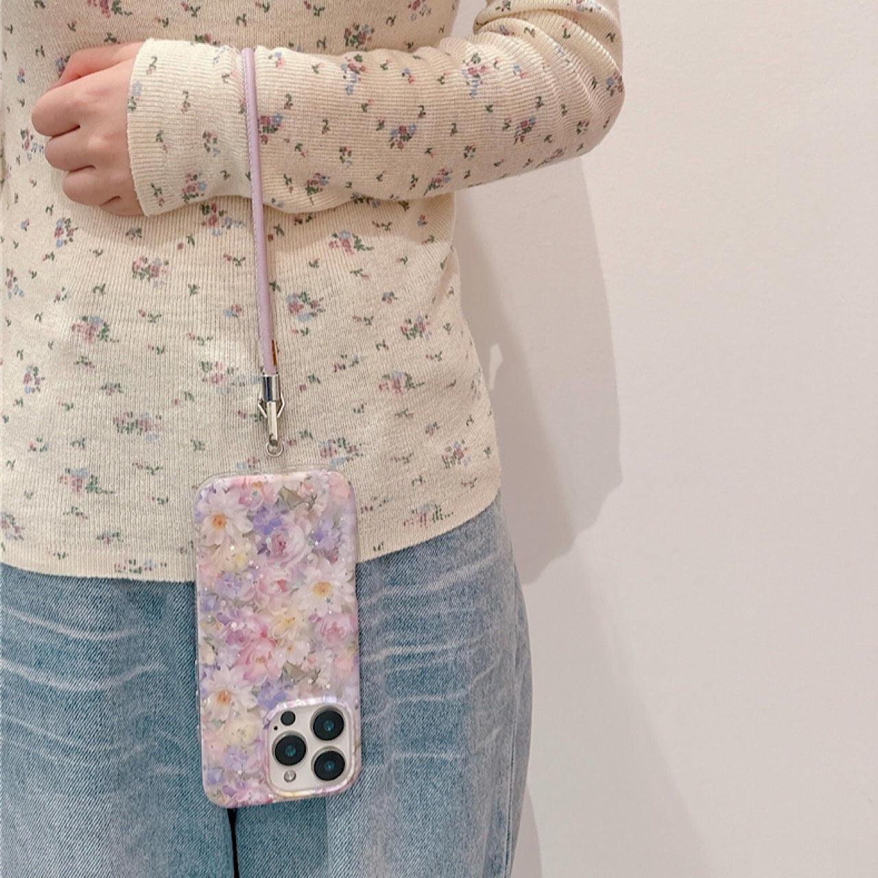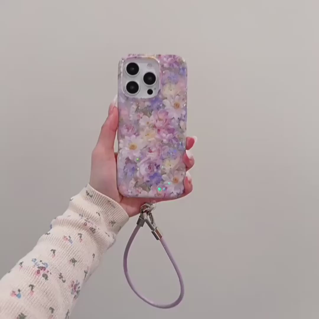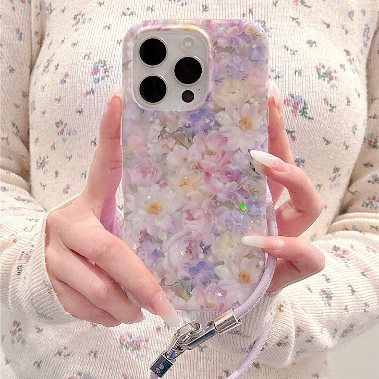 iPhoneケース おしゃれ キラキラ パープル フラワー スマホケース