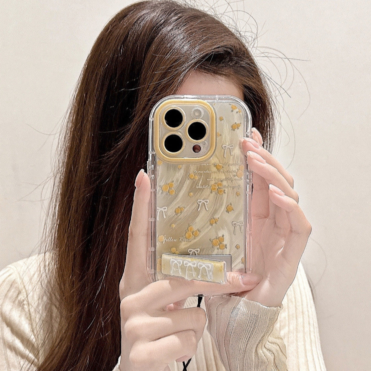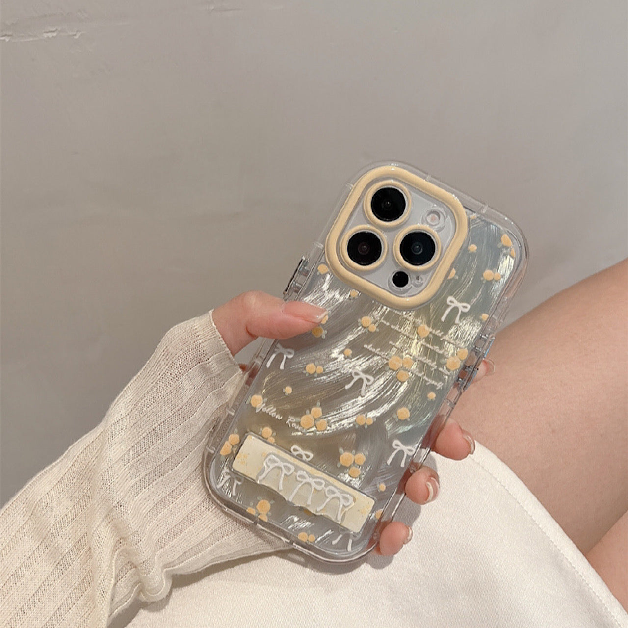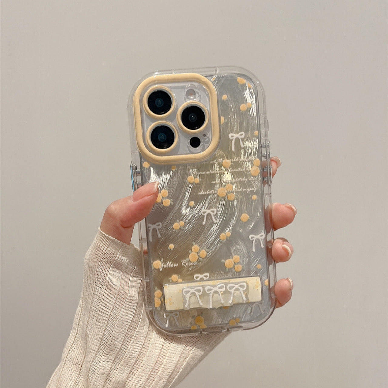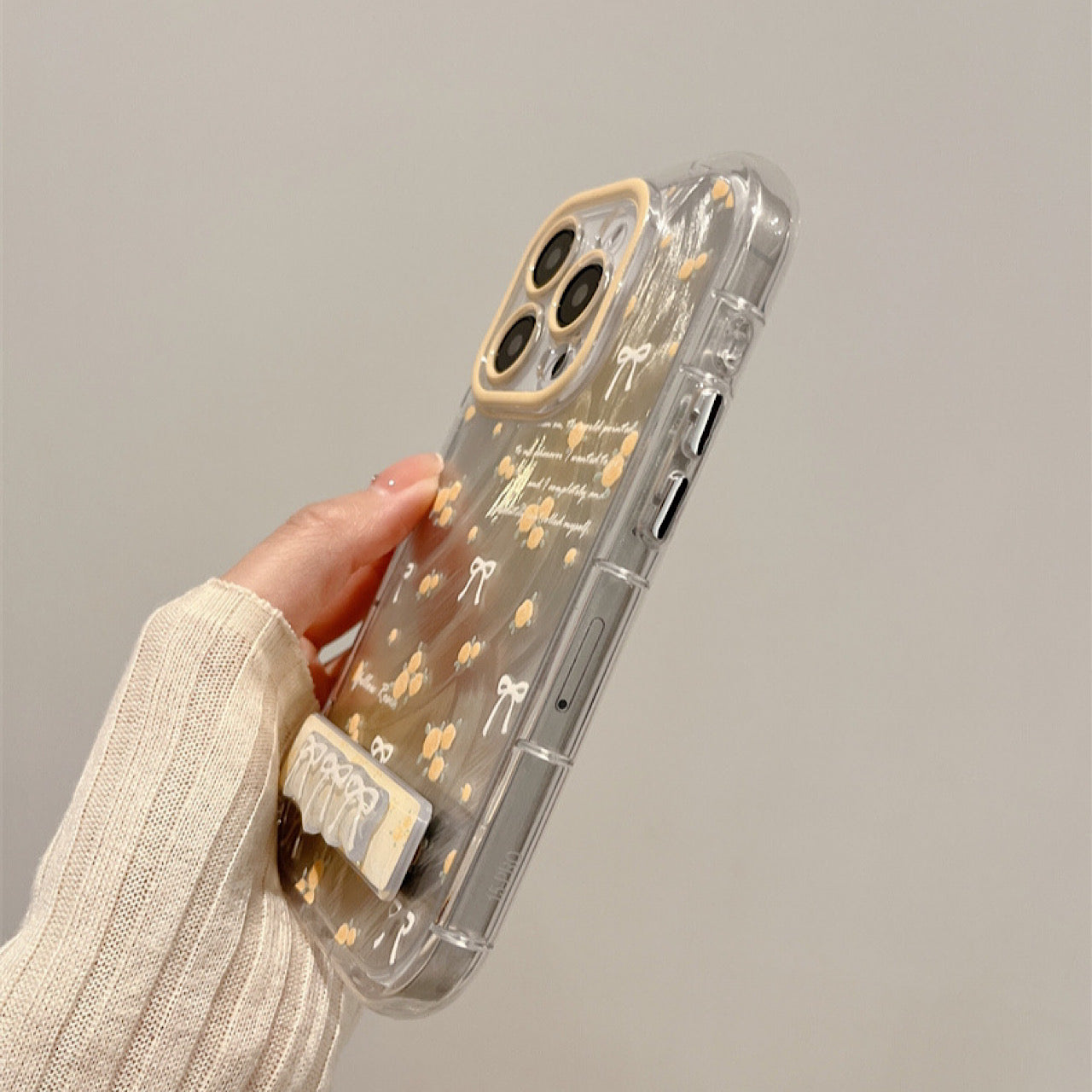 iPhoneケース かわいい イエロー フラワー スタンド付き スマホケース