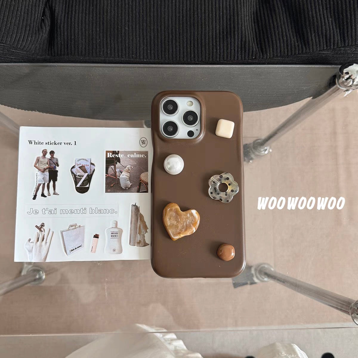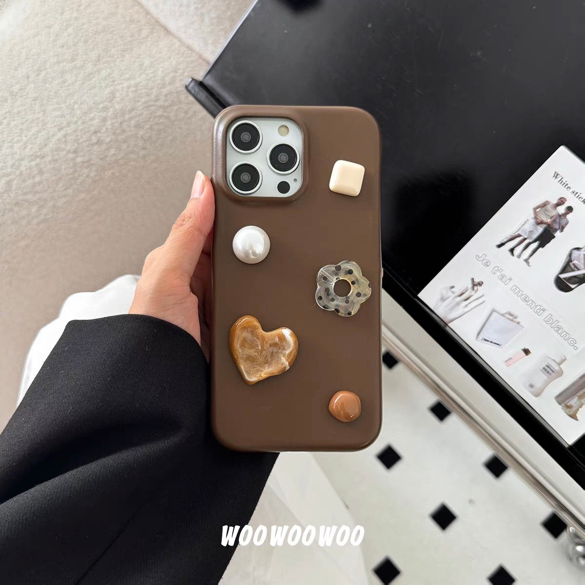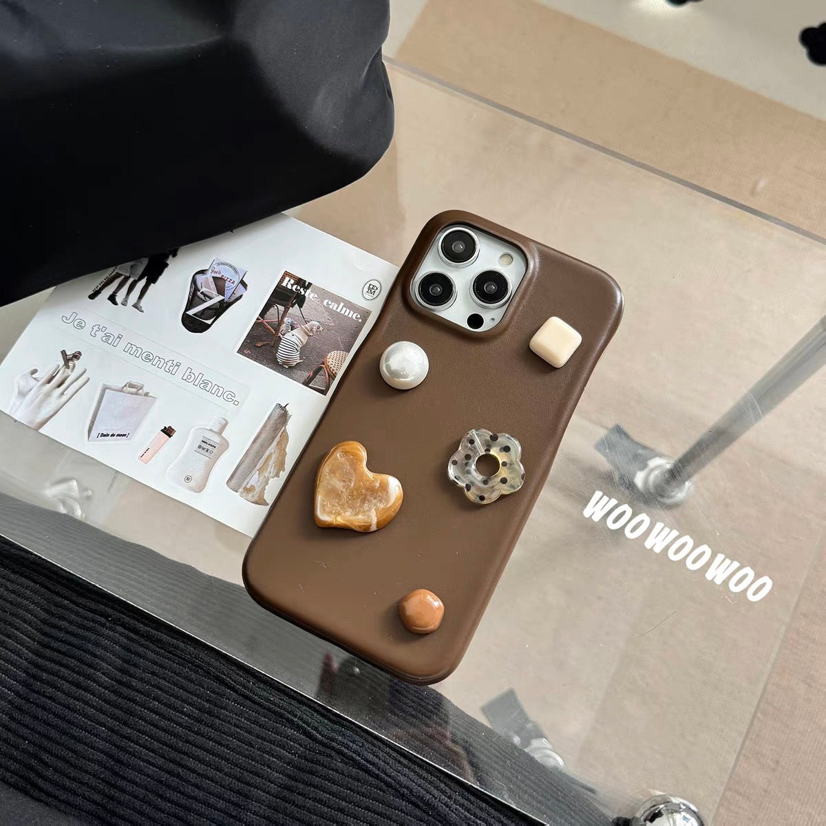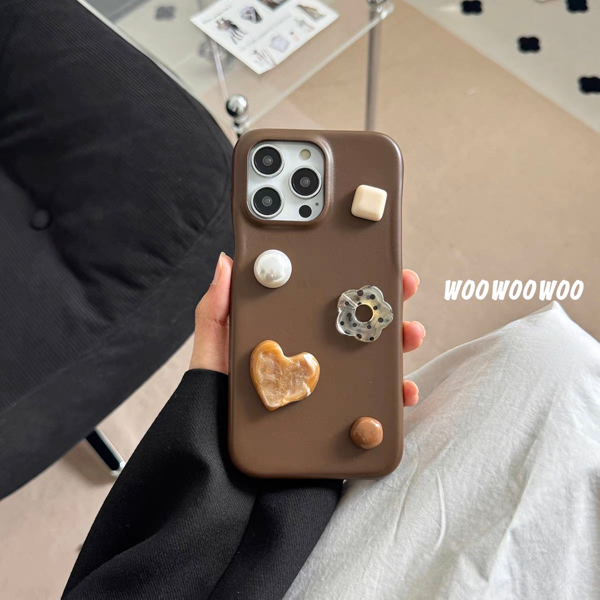 iPhoneケース かわいい フラワー スタンド付き ブラウン スマホケース
