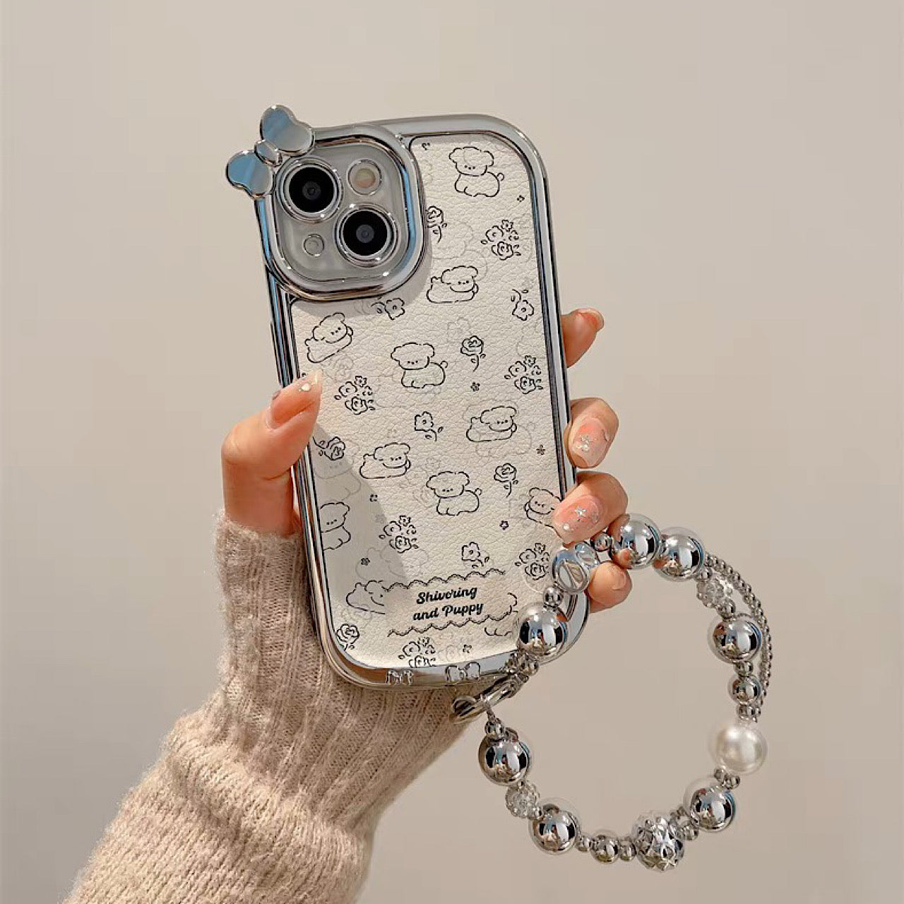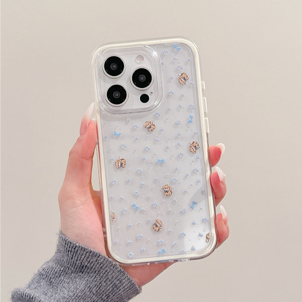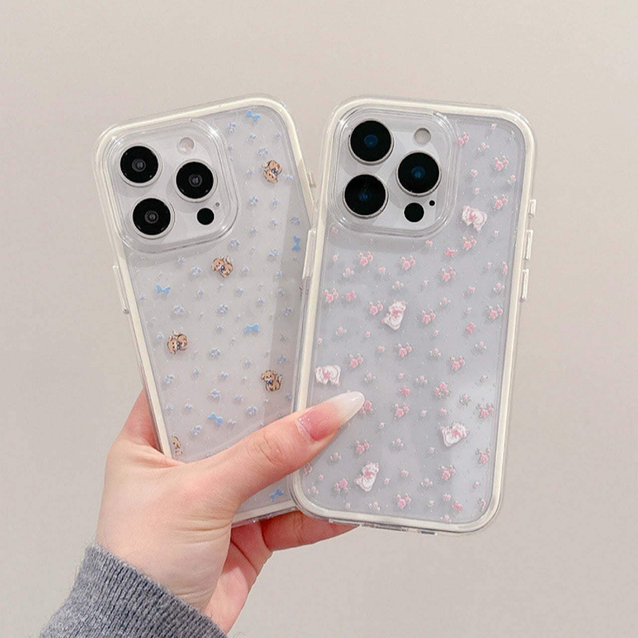 iPhoneケース かわいい 子犬 立体 リボン スマホケース
