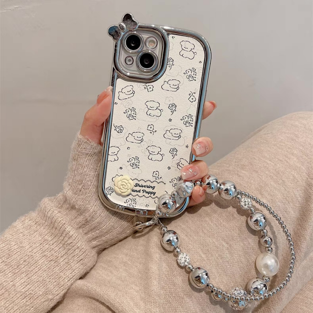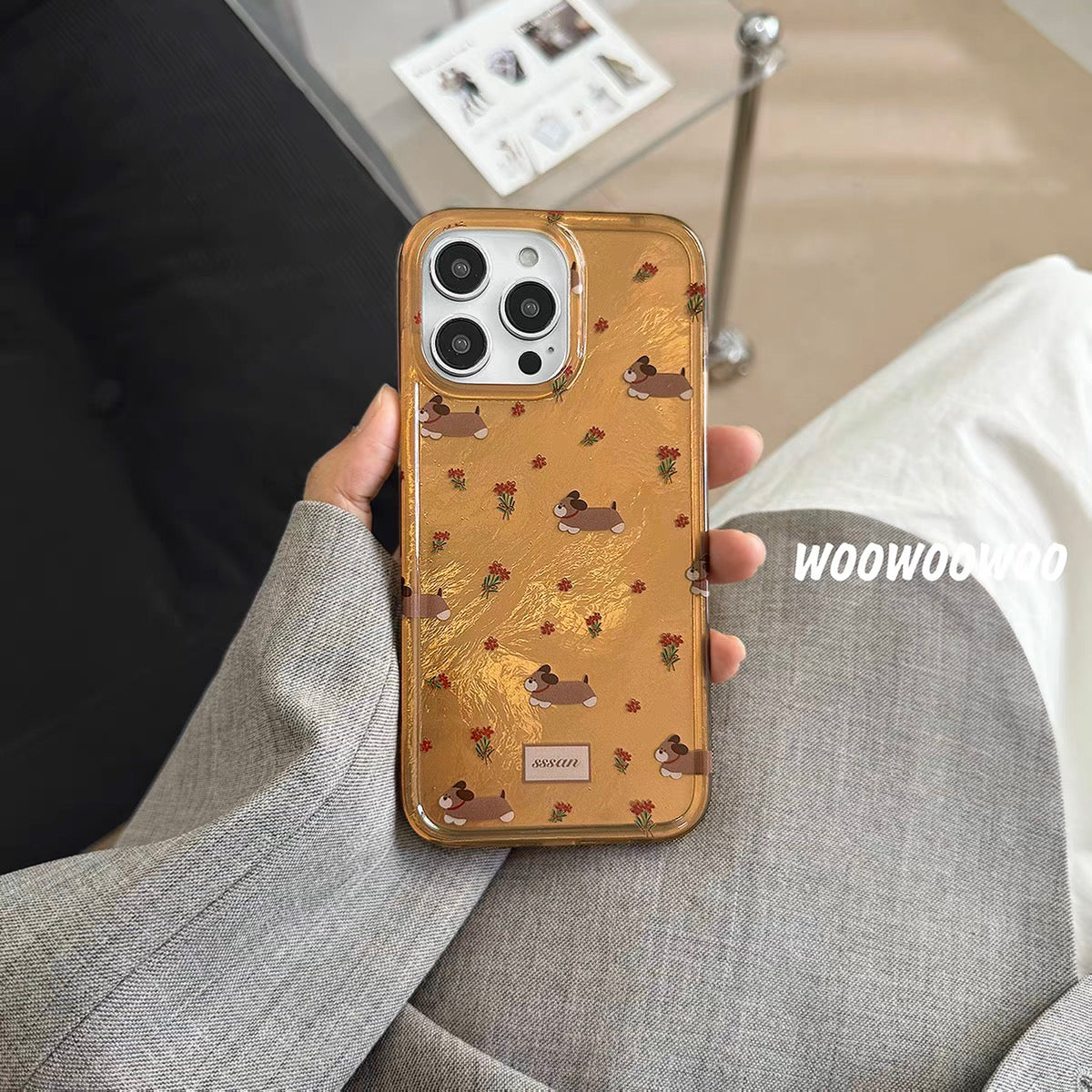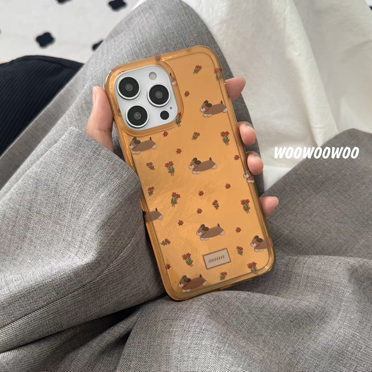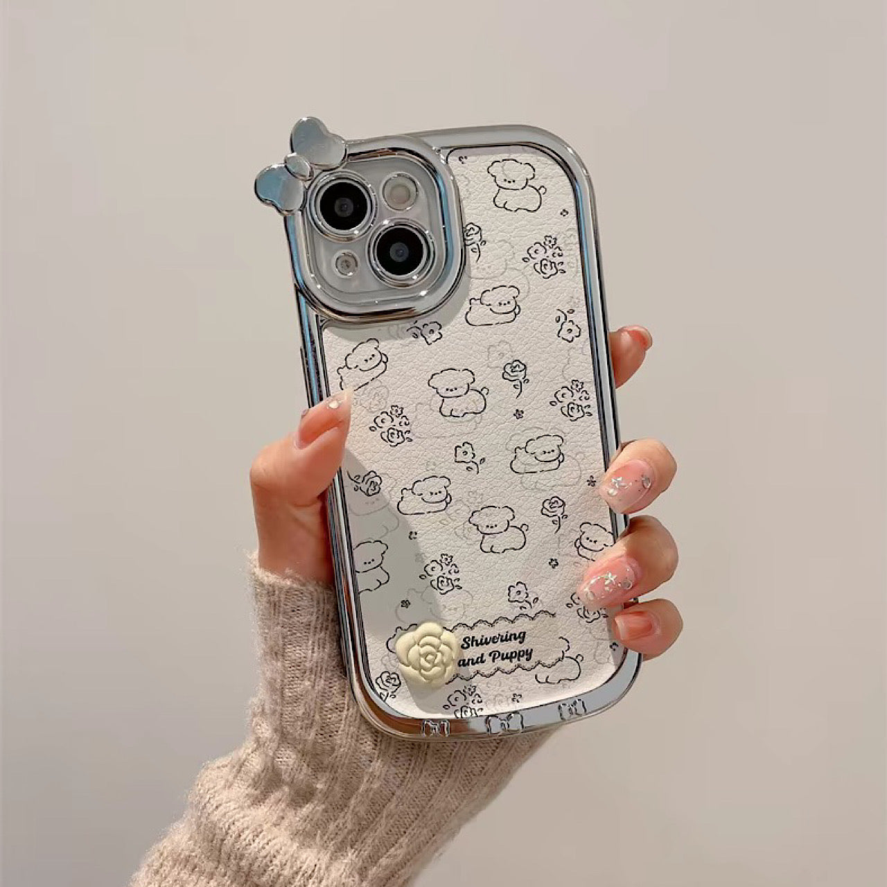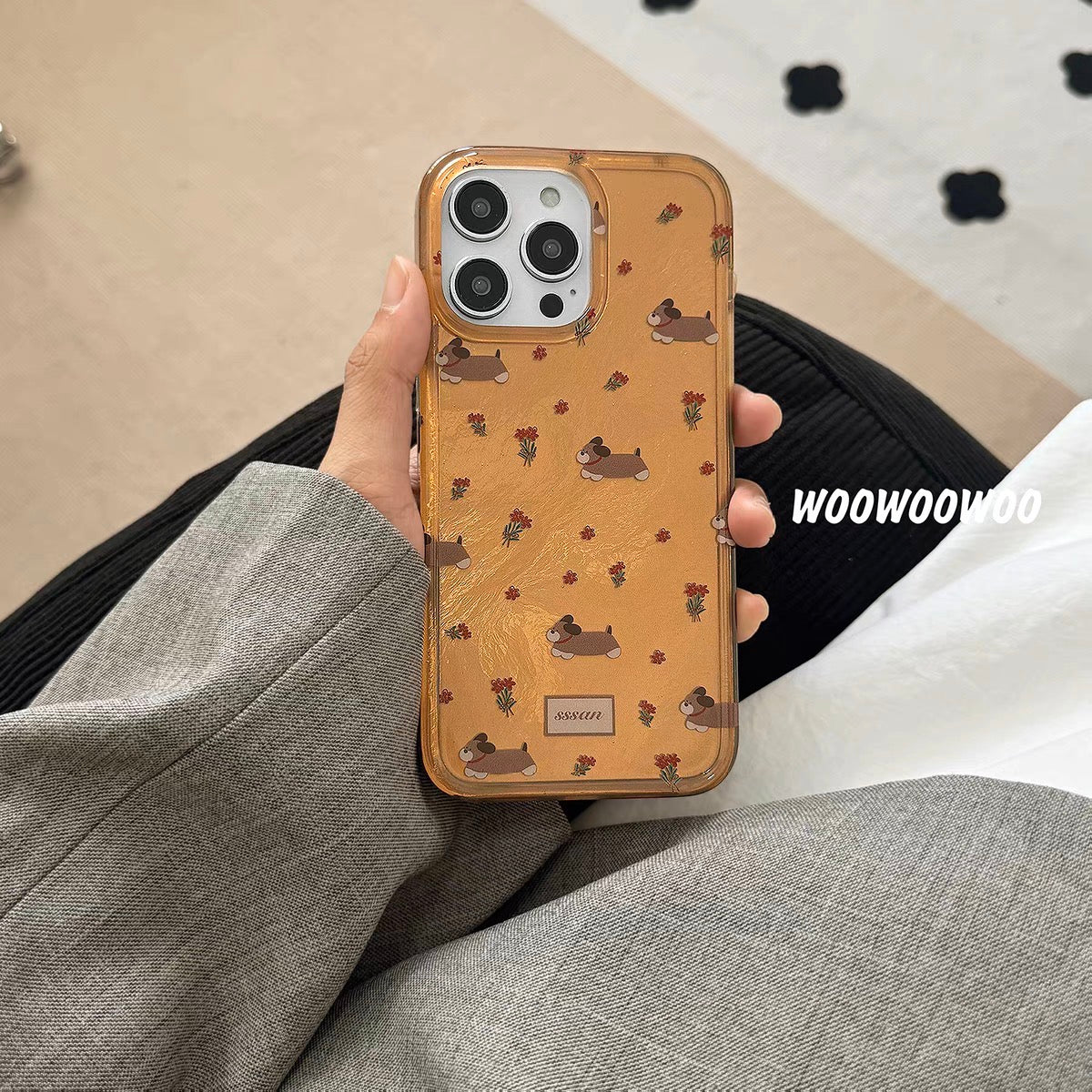 iPhoneケース かわいい 子犬 フラワー スマホケース