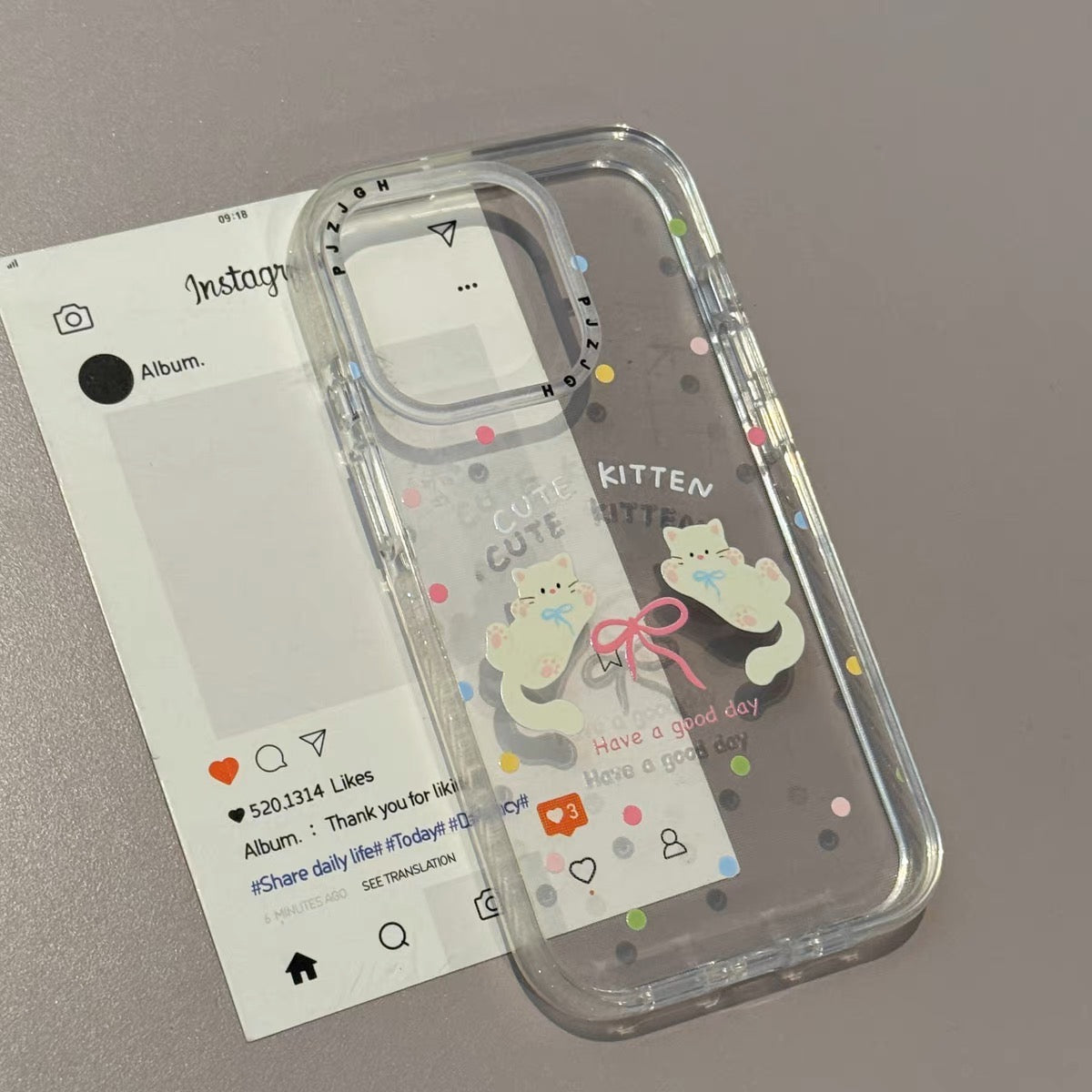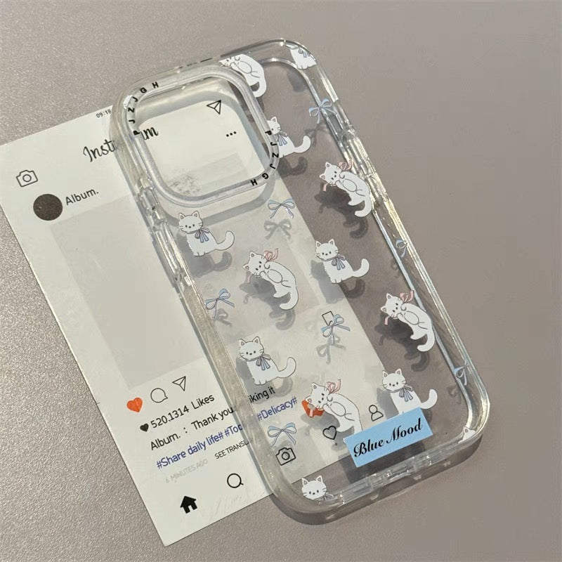 iPhoneケース かわいい ブルー 子猫 透明 クリア スマホケース
