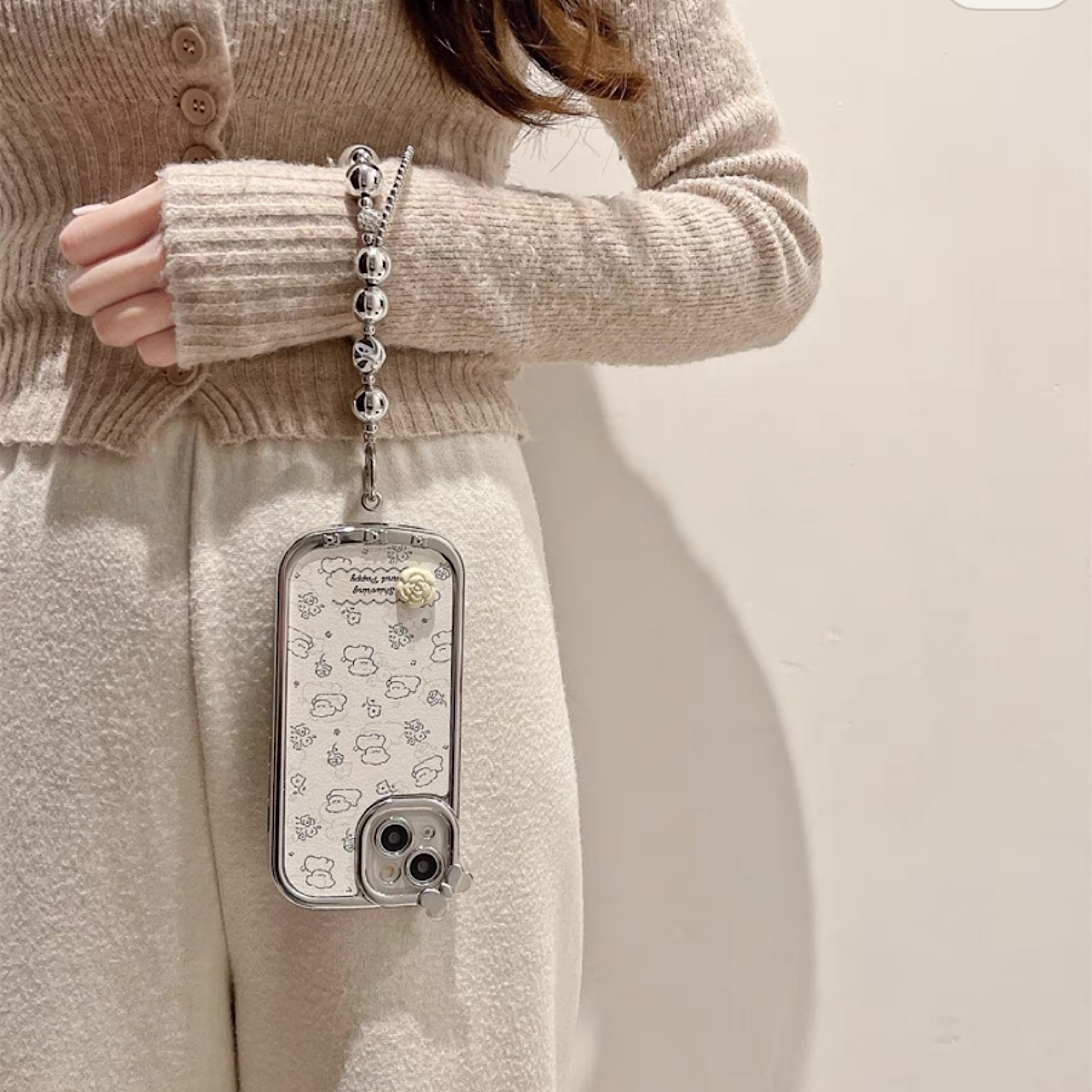 iPhoneケース かわいい 子犬 ピンク ミラー付き スマホケース