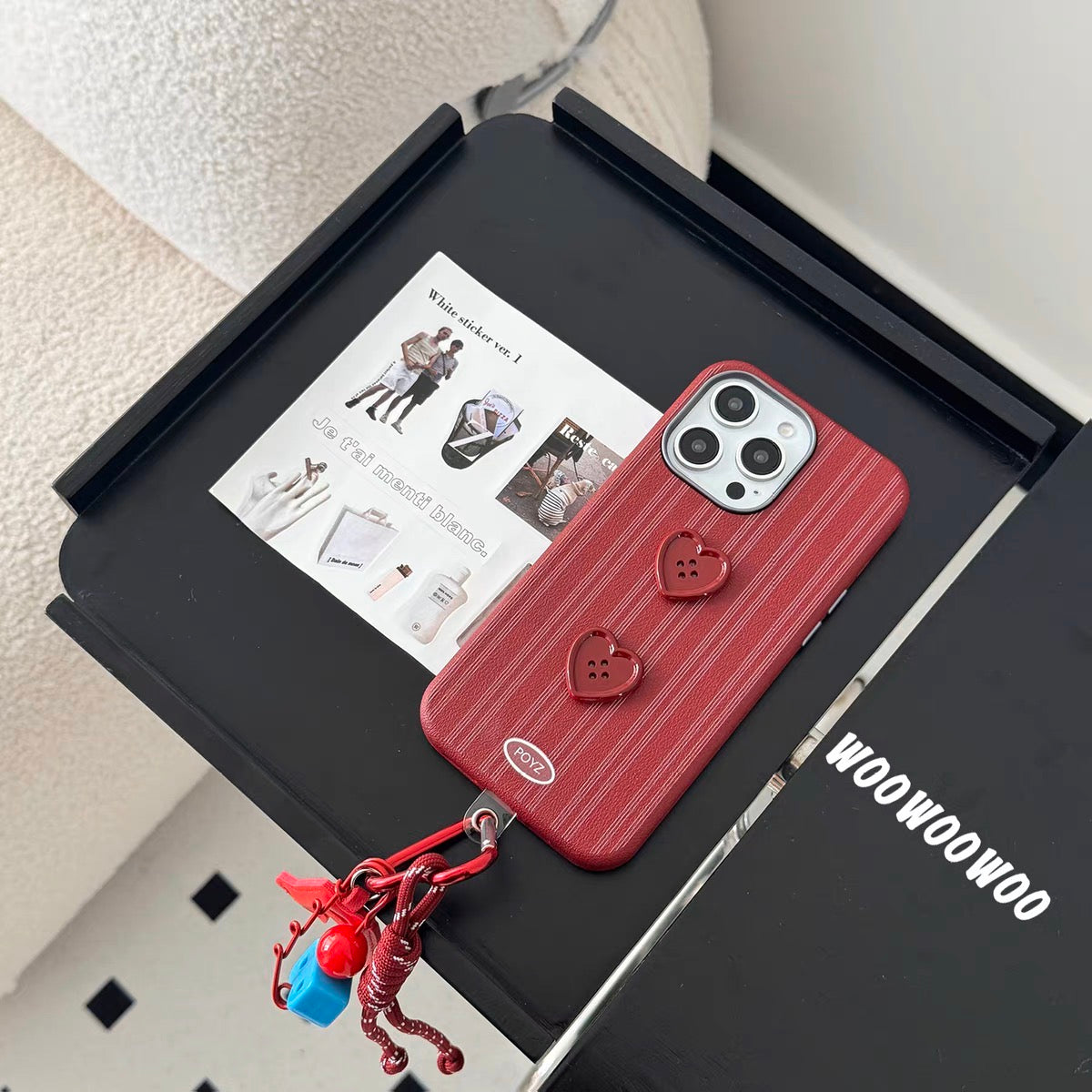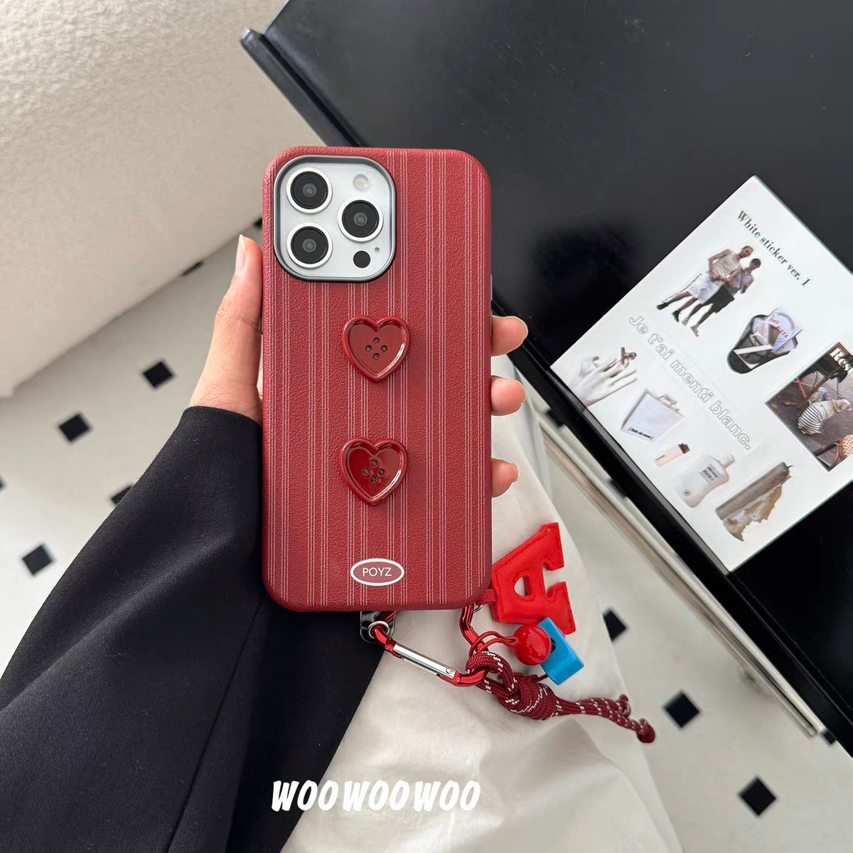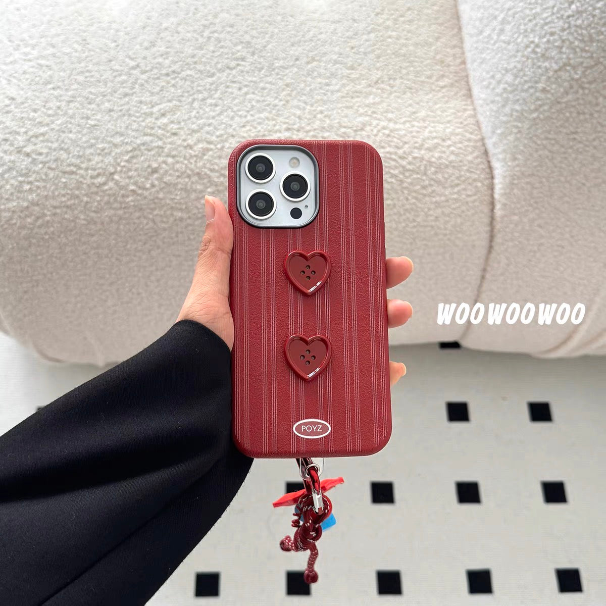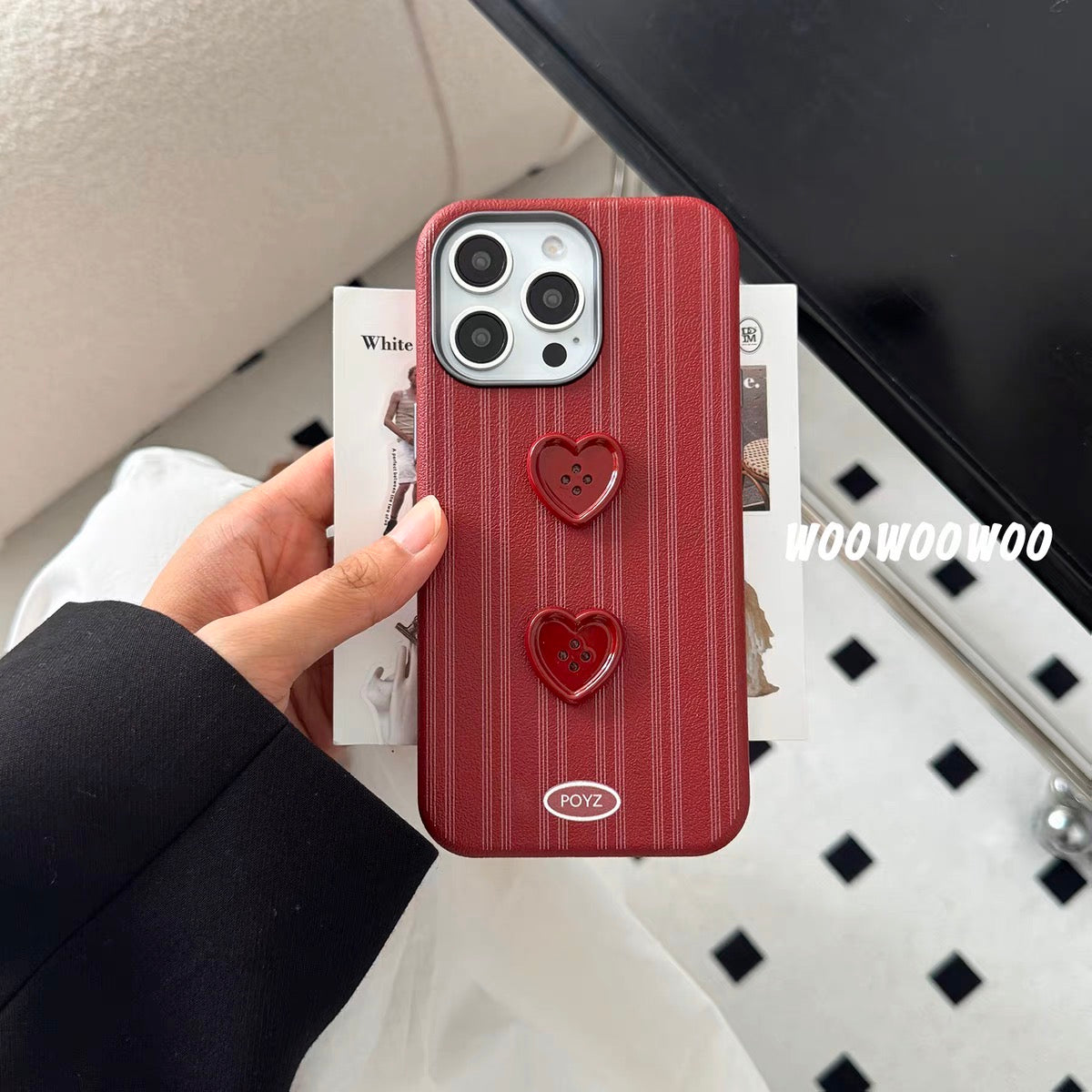 iPhoneケース おしゃれ ハート ボタン レッド スマホケース