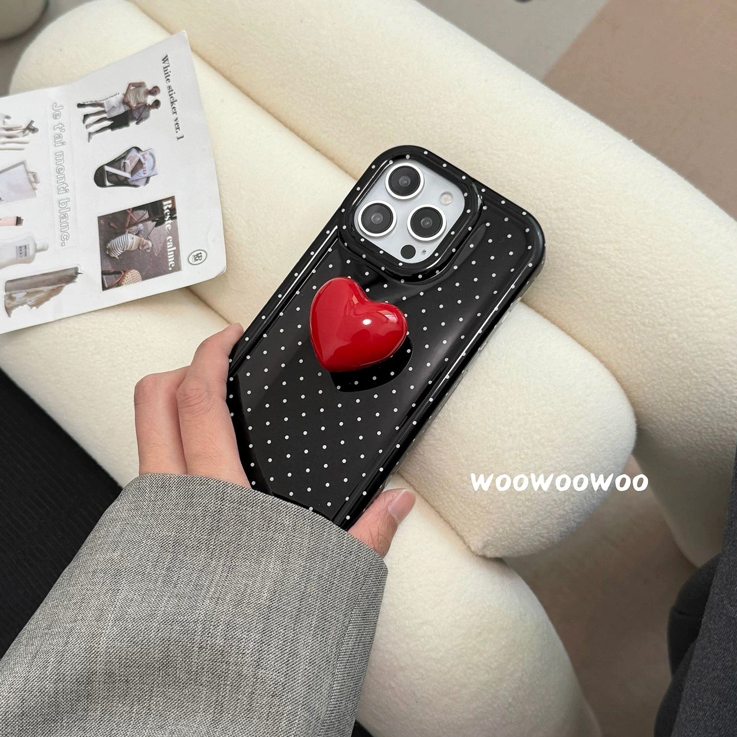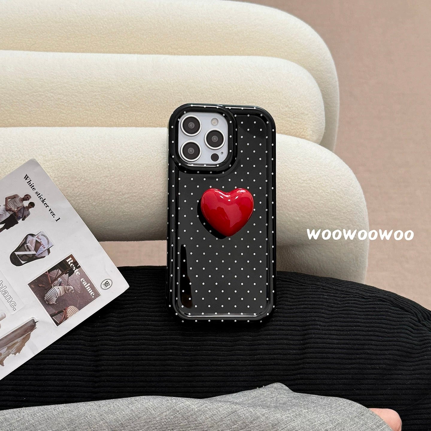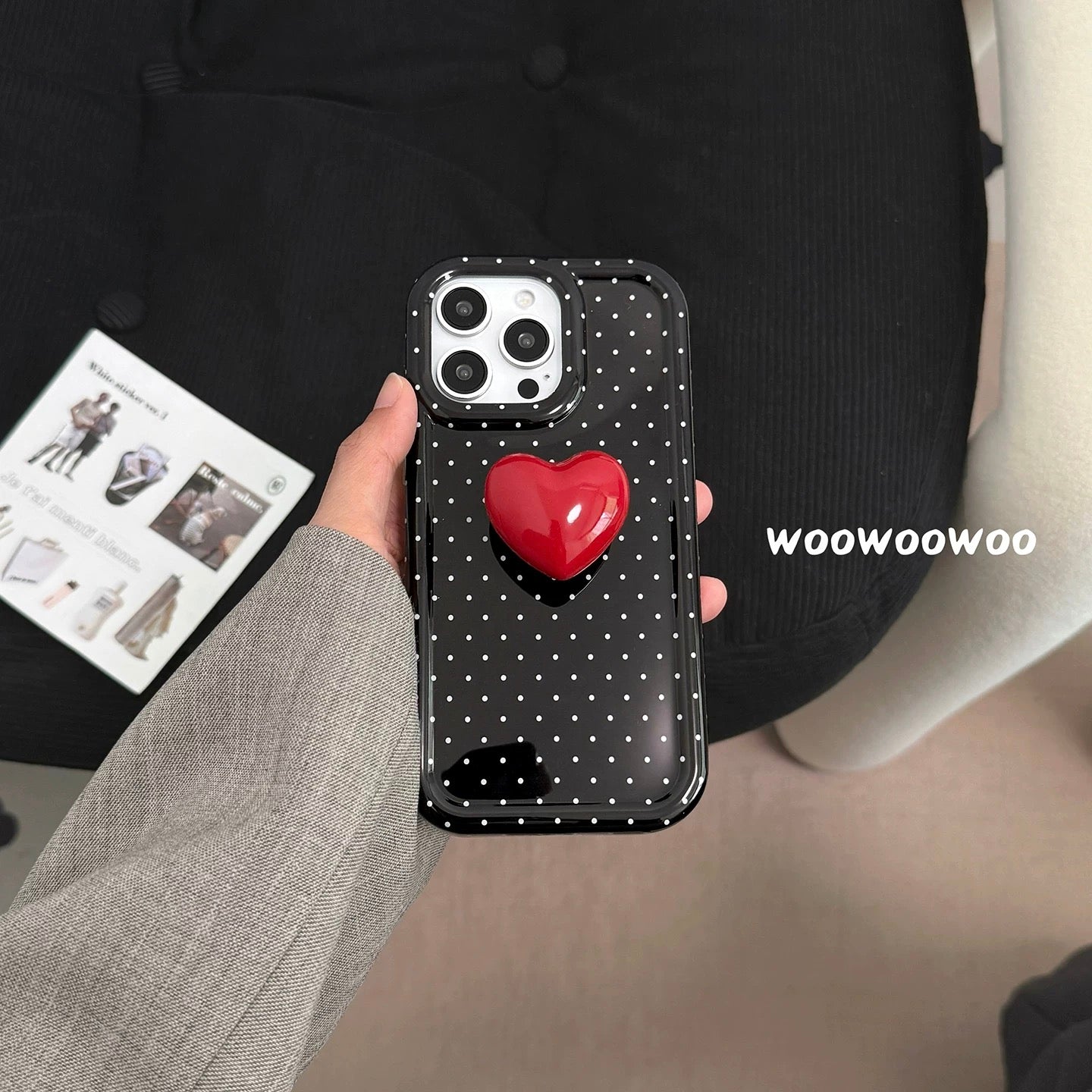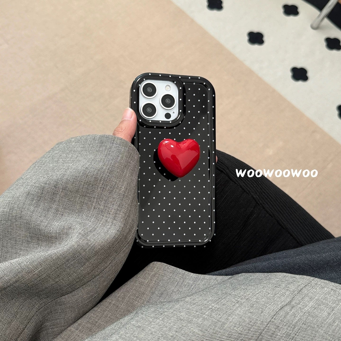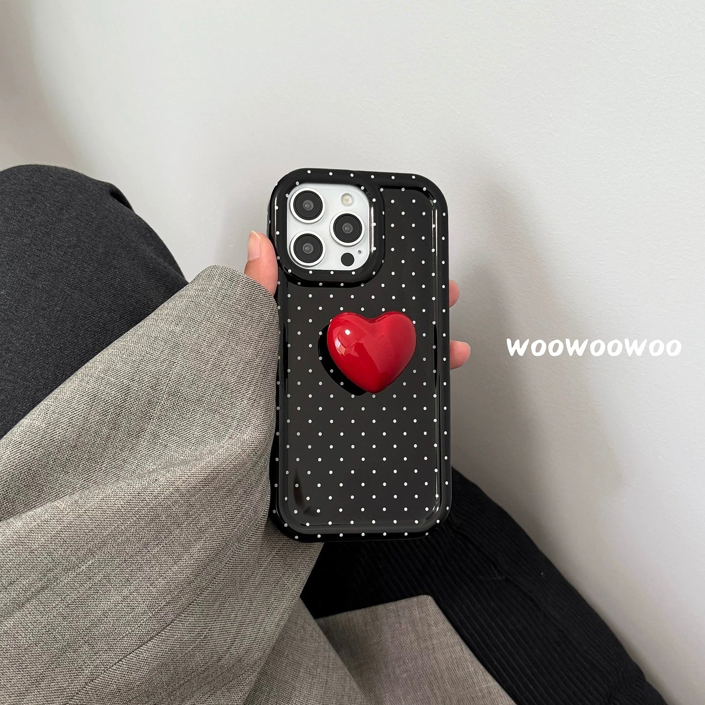 iPhoneケース おしゃれ ハート ボタン レッド スマホケース