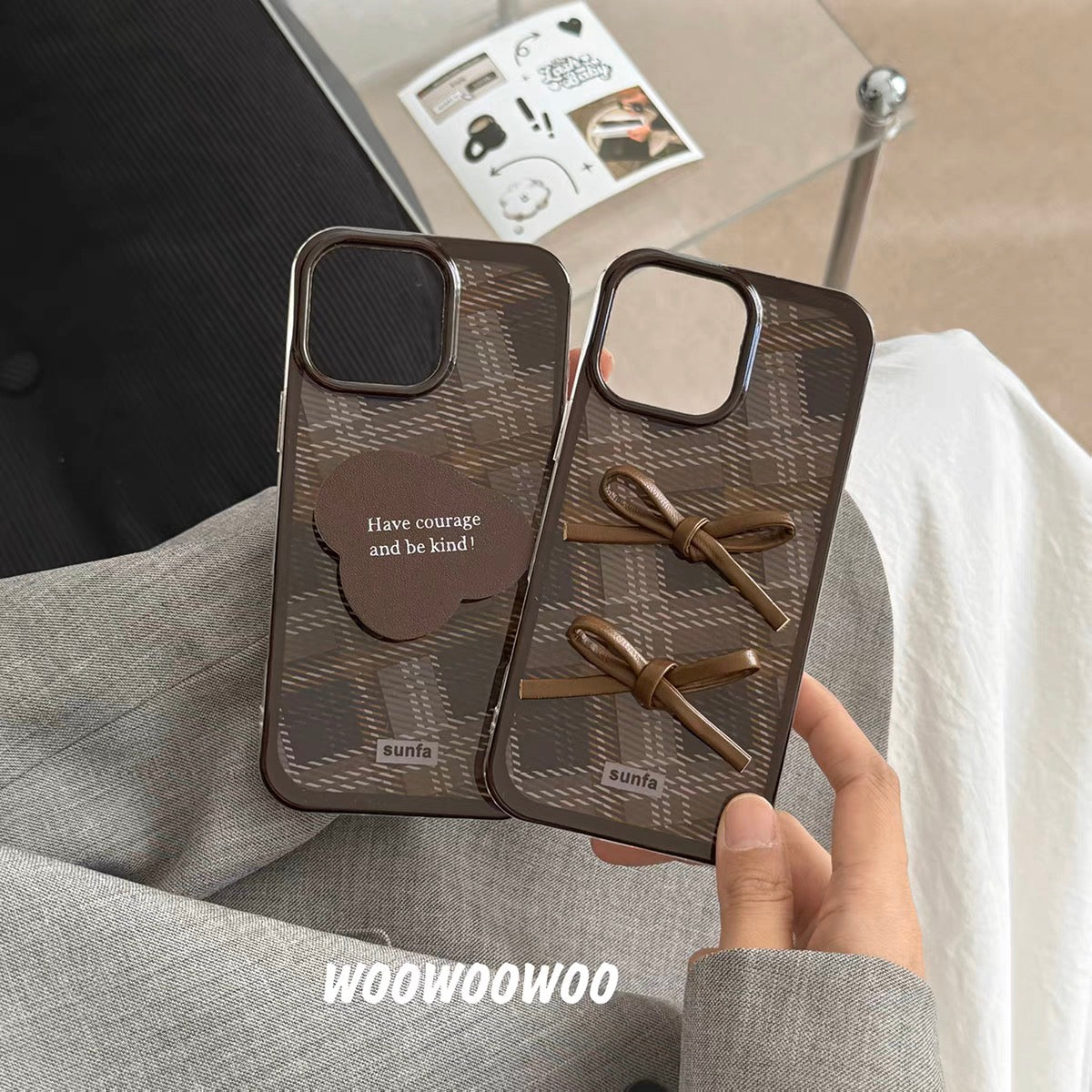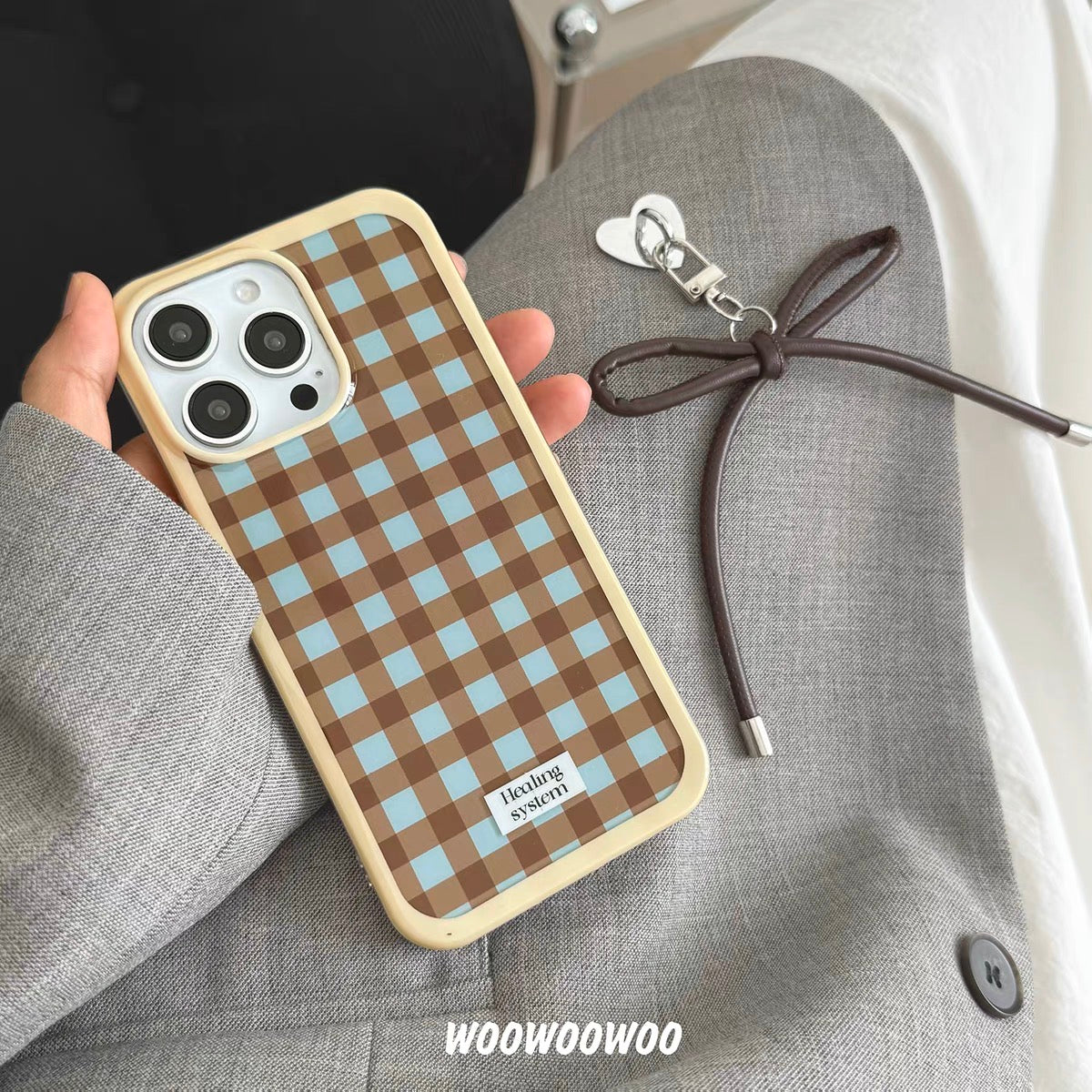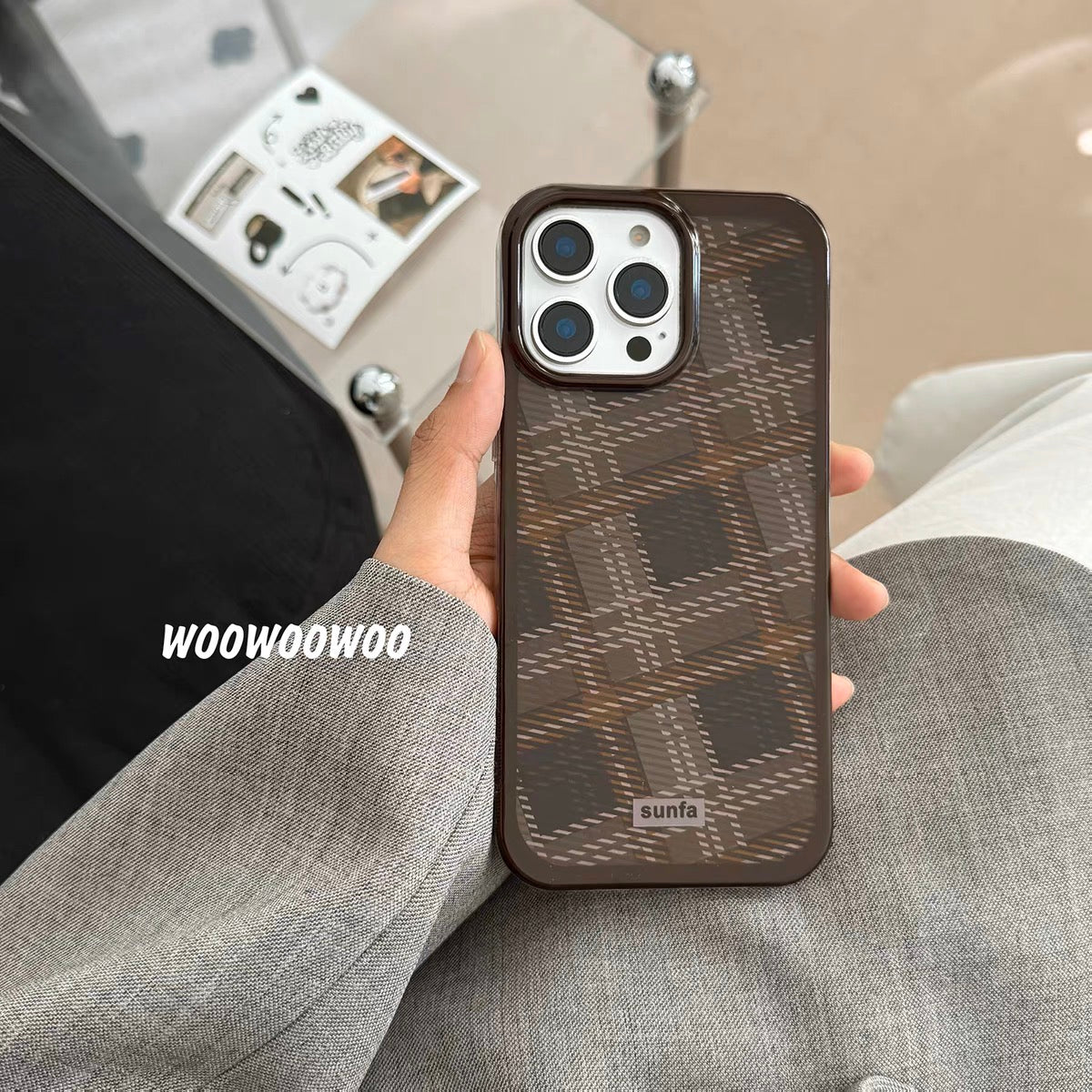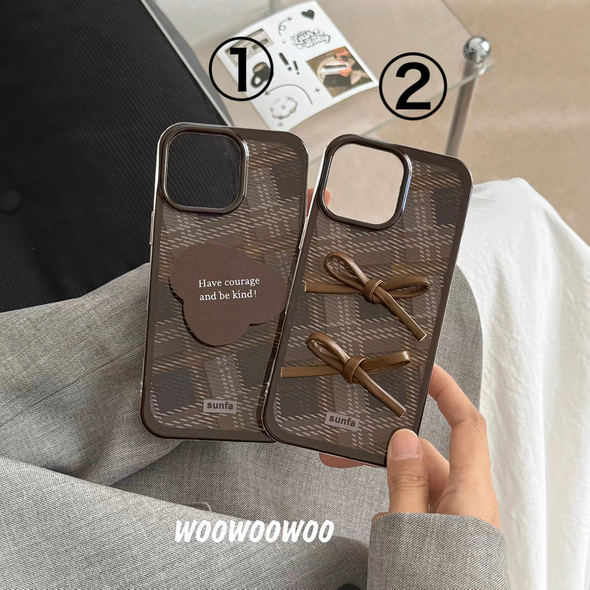 iPhoneケース おしゃれ チェック柄 ブラウン スマホケース