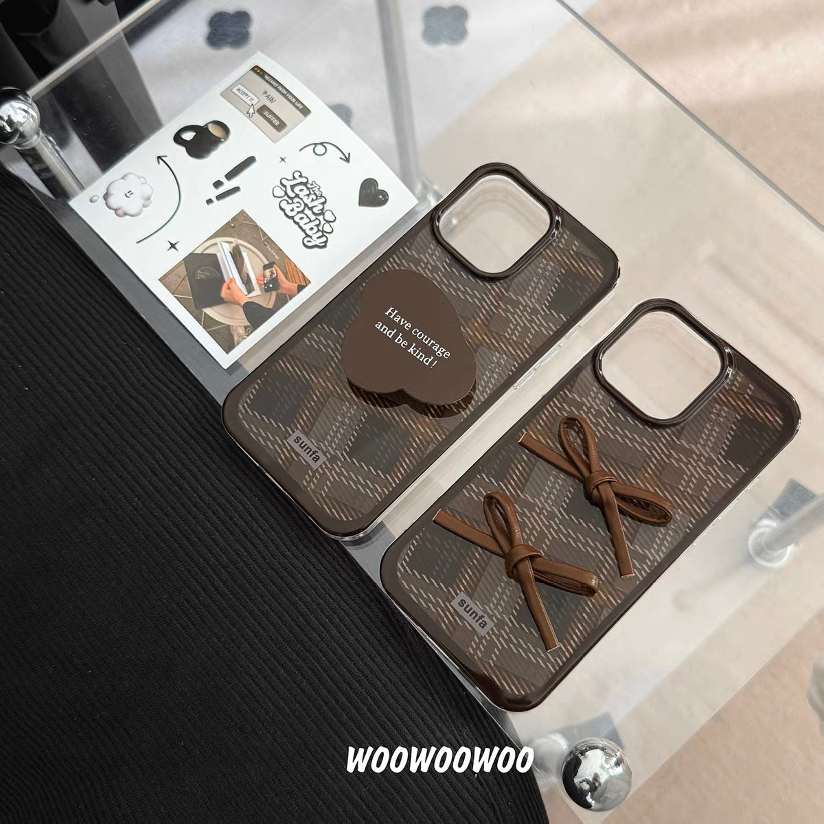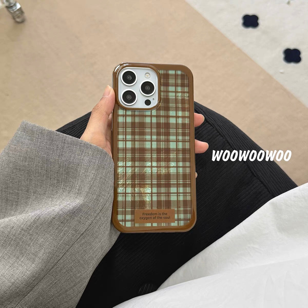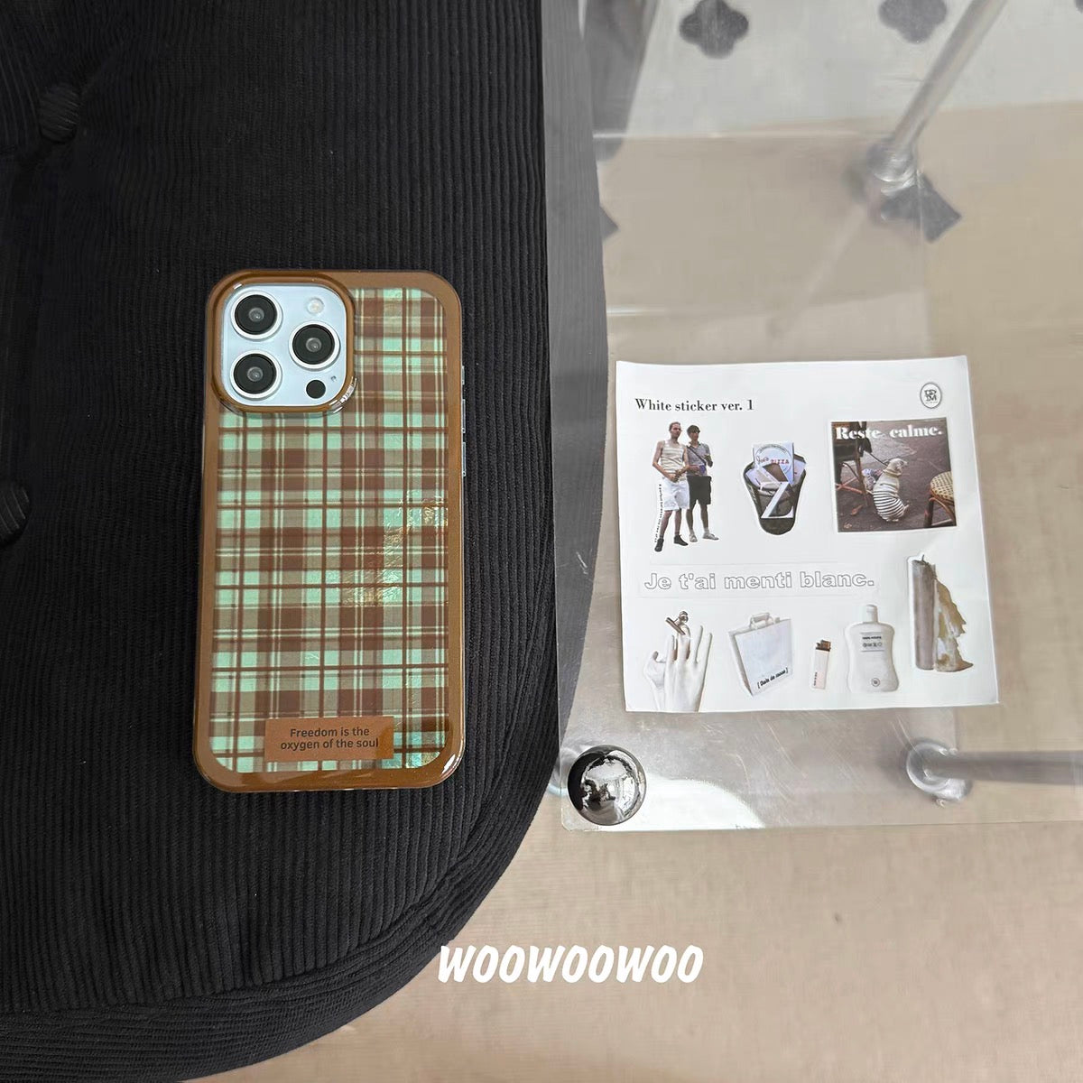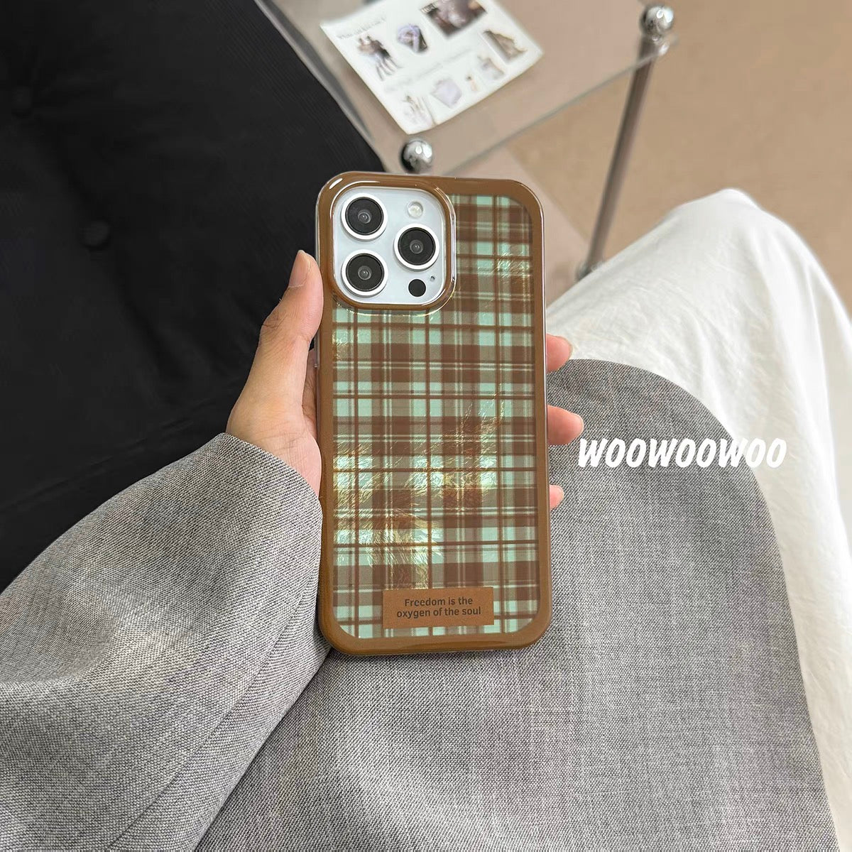 iPhoneケース おしゃれ チェック柄 ブラウン スマホケース
