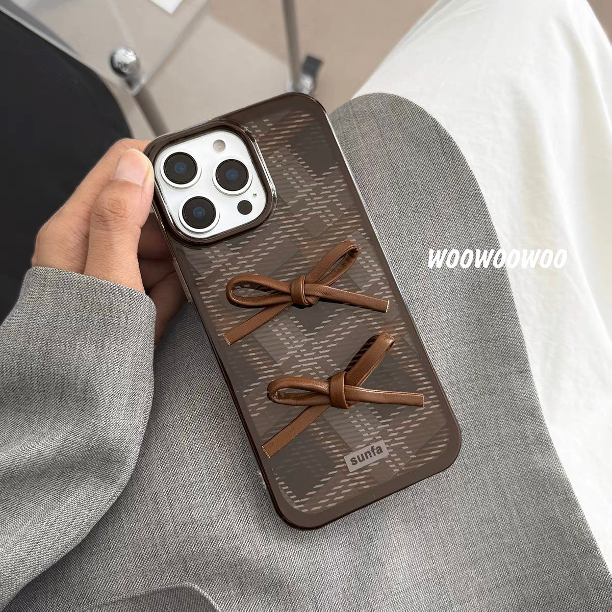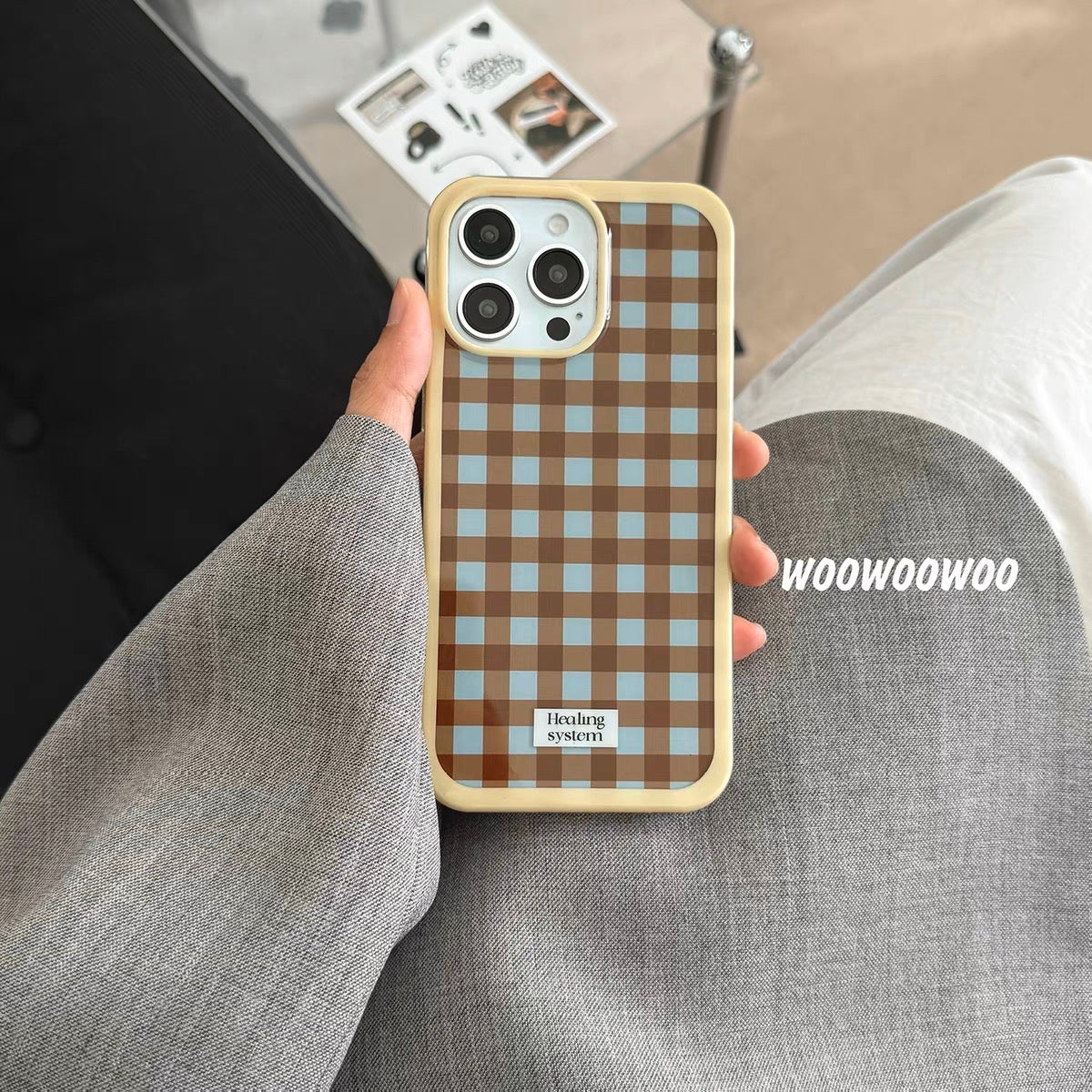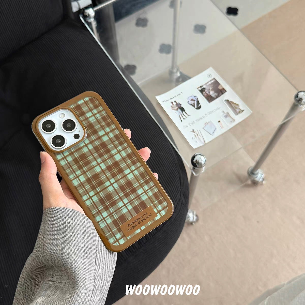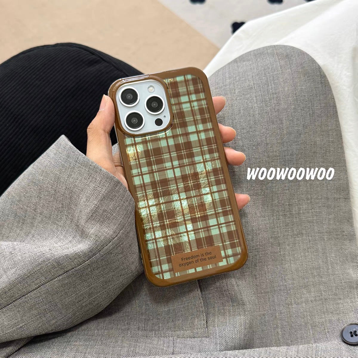 iPhoneケース おしゃれ チェック柄 ブラウン スマホケース
