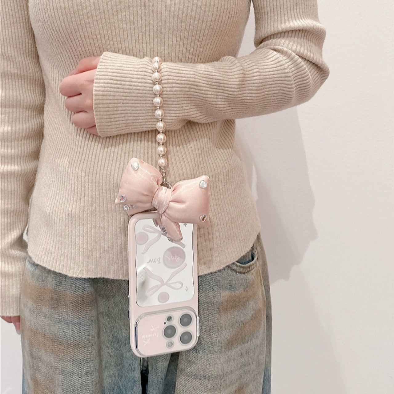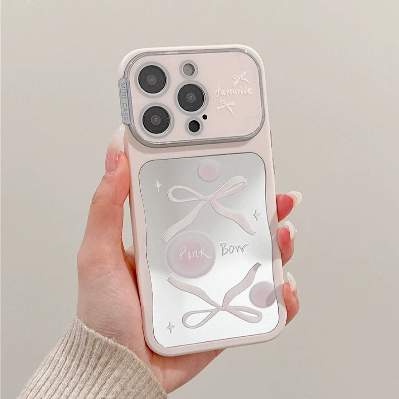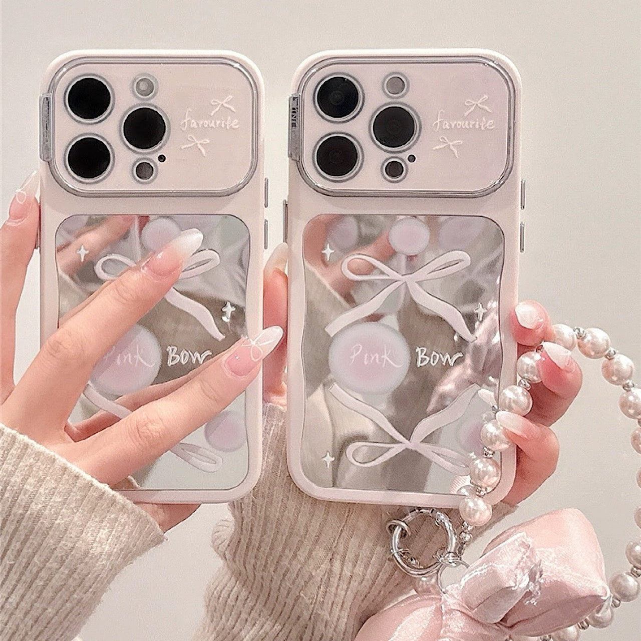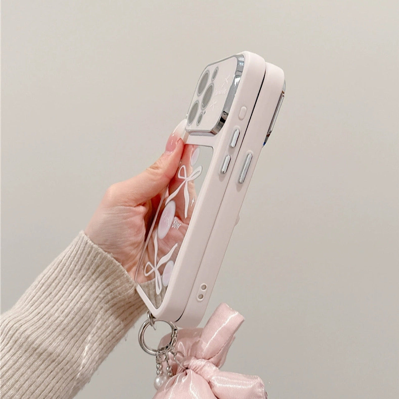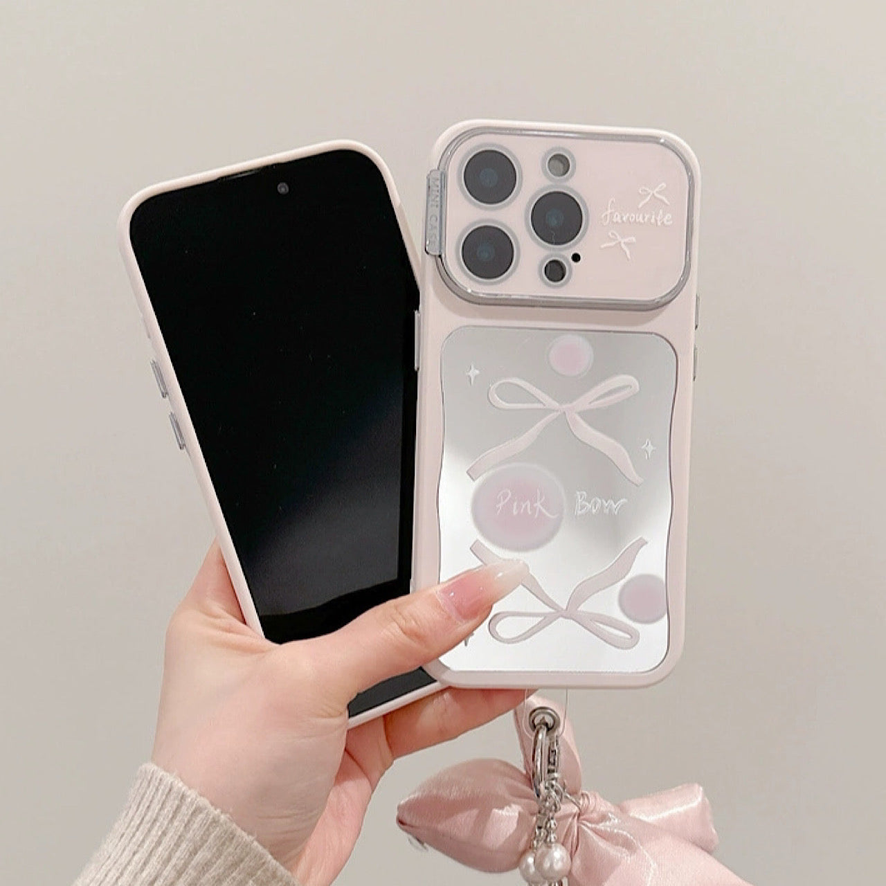 iPhoneケース おしゃれ ピンク リボン カメラ保護付き スマホケース