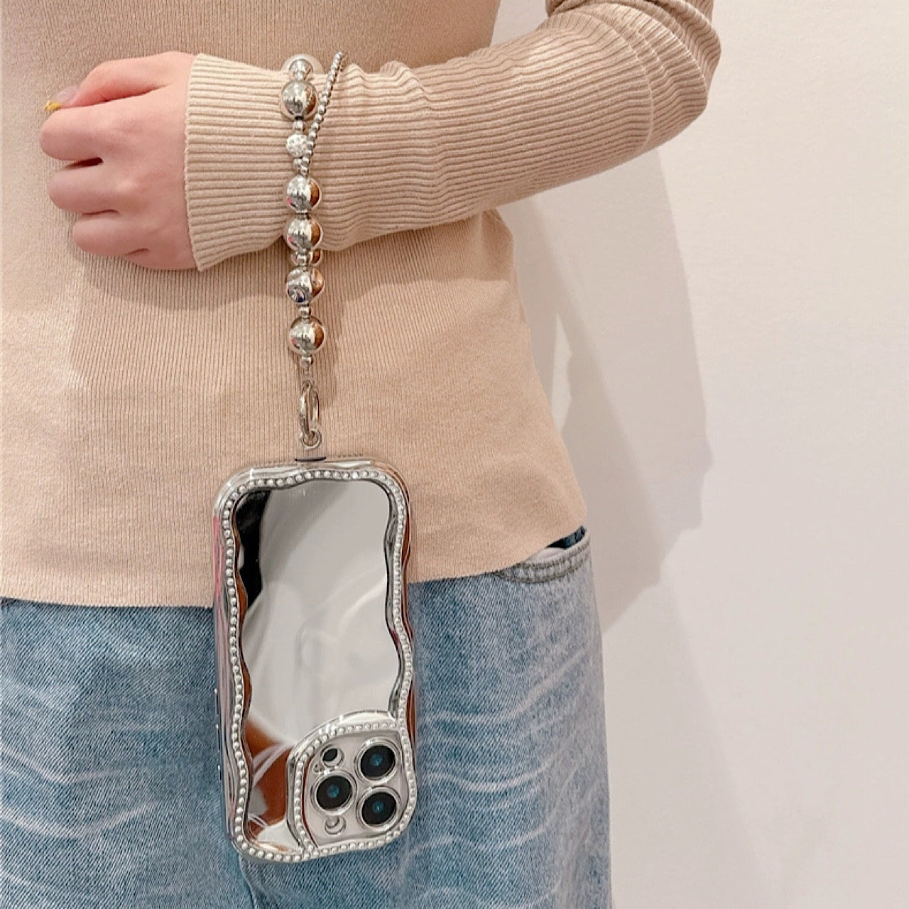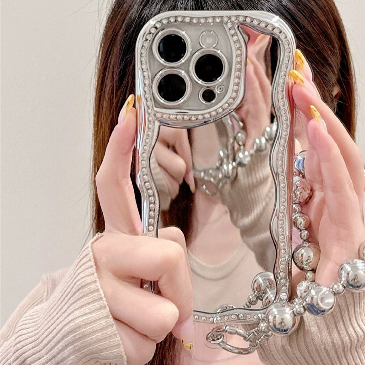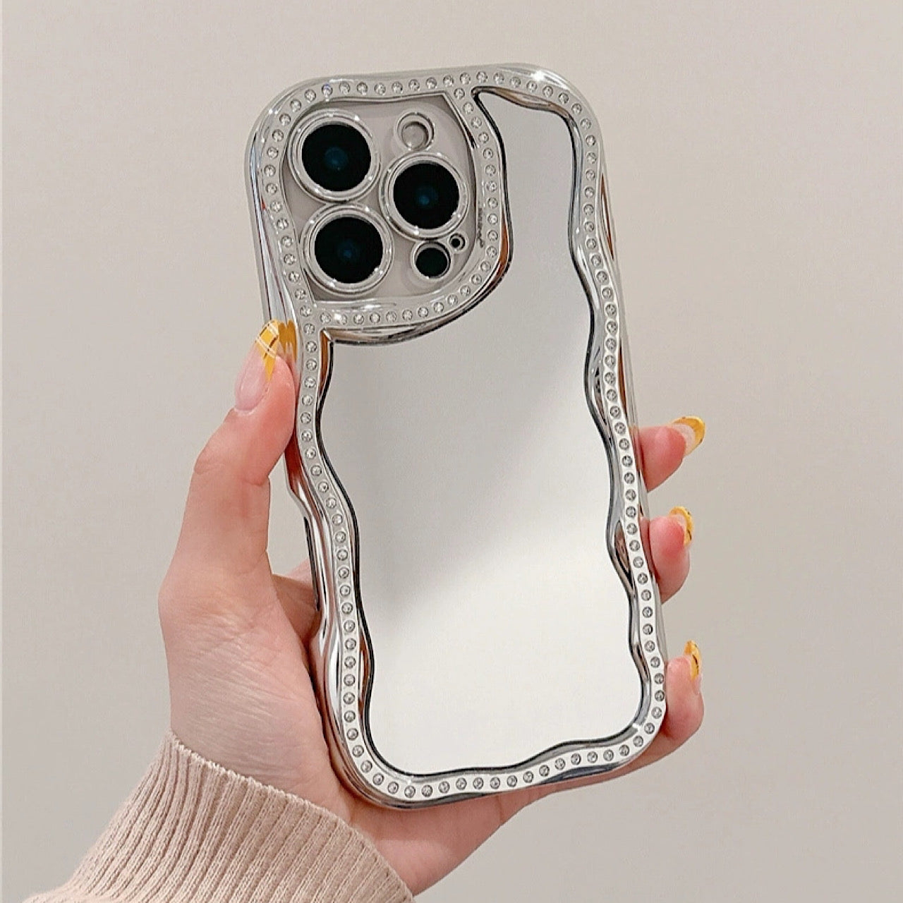 iPhoneケース おしゃれ ダイヤモンド シルバー ミラー付き スマホケース