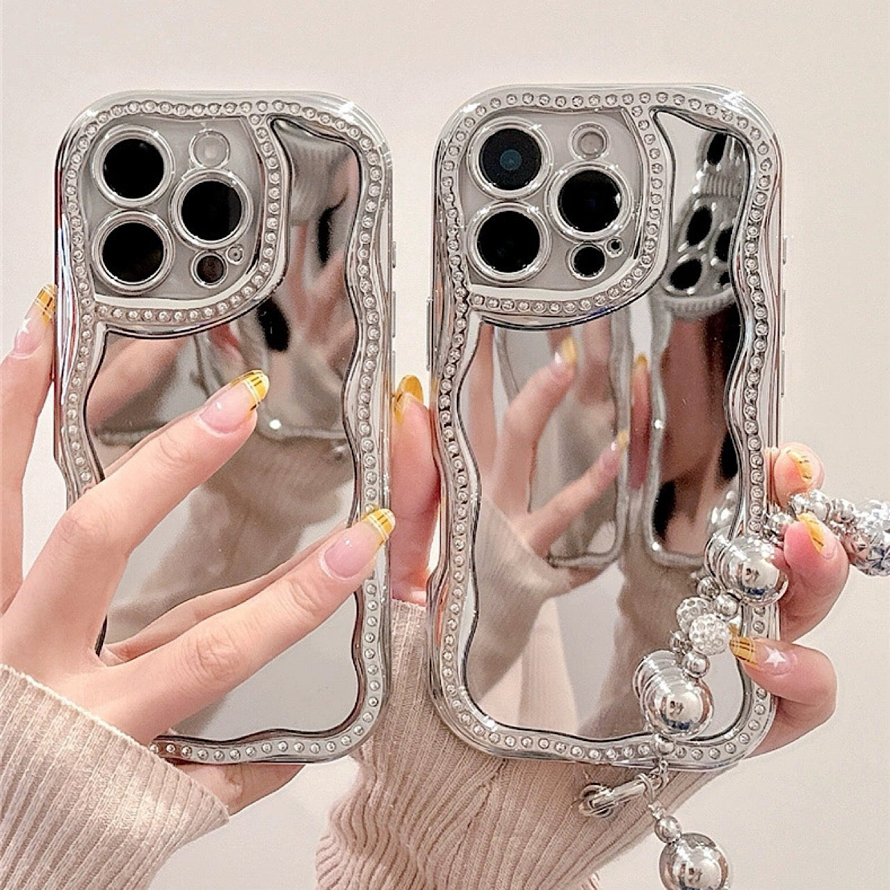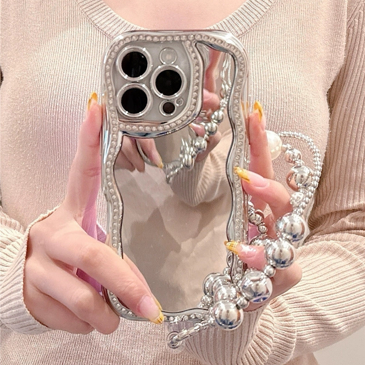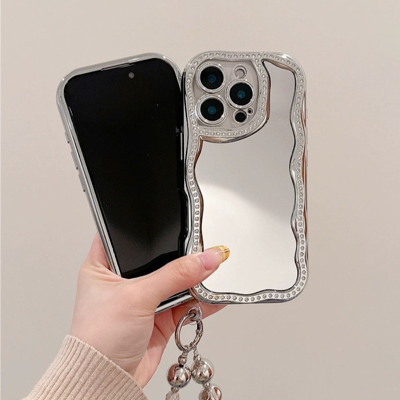 iPhoneケース おしゃれ ダイヤモンド シルバー ミラー付き スマホケース