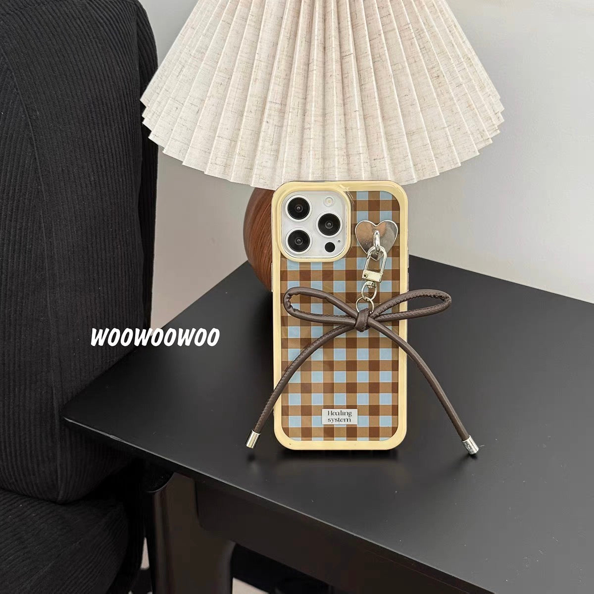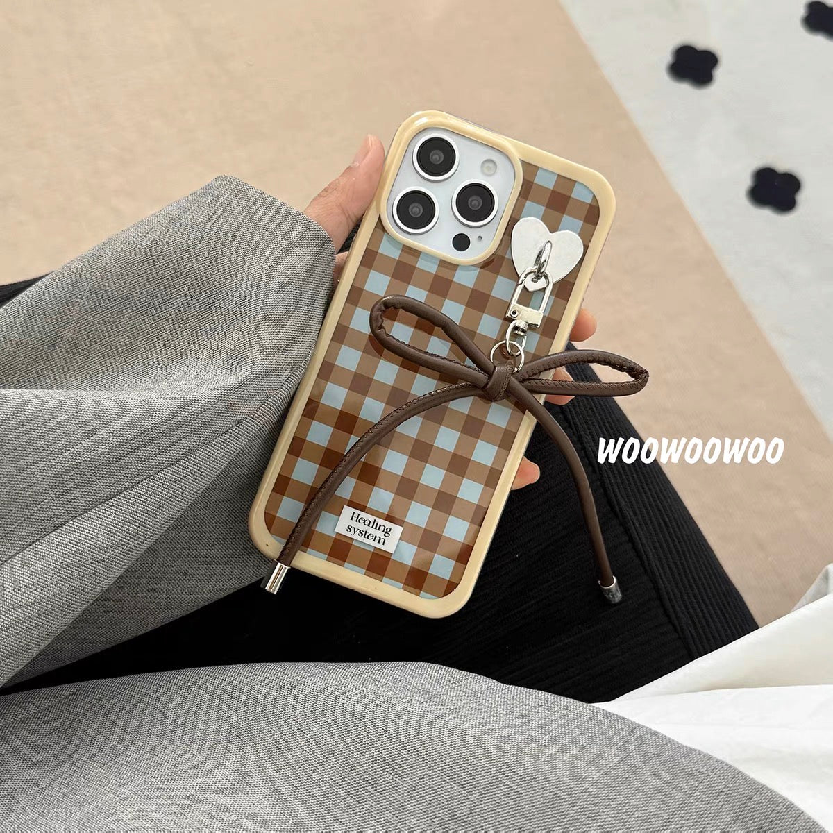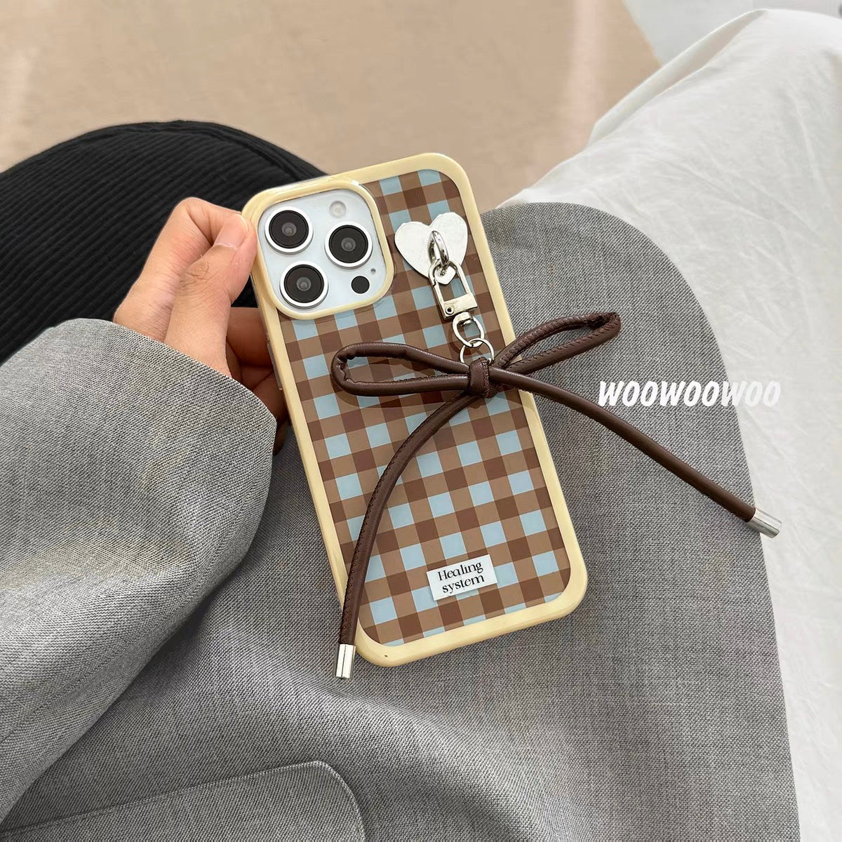 iPhoneケース おしゃれ チャーム付き チェック柄 スマホケース