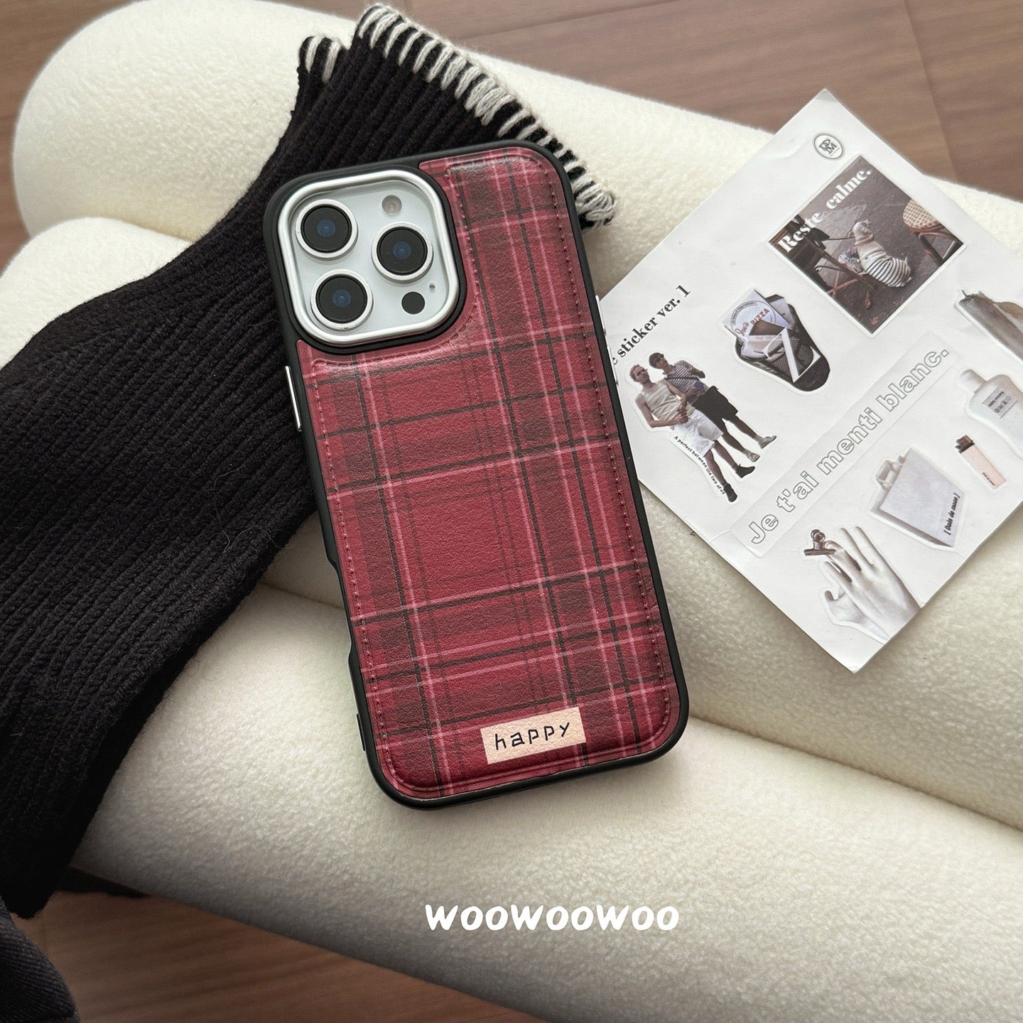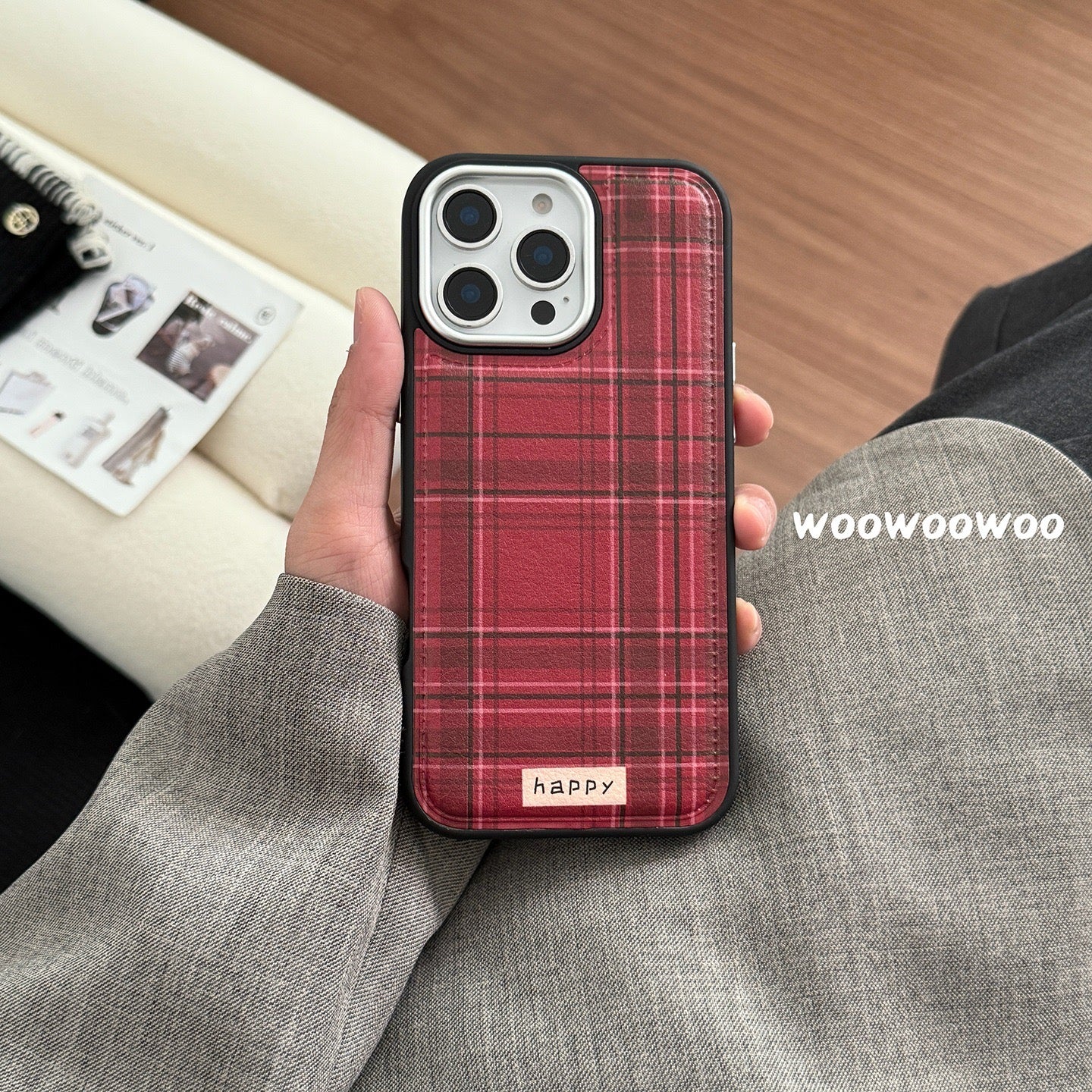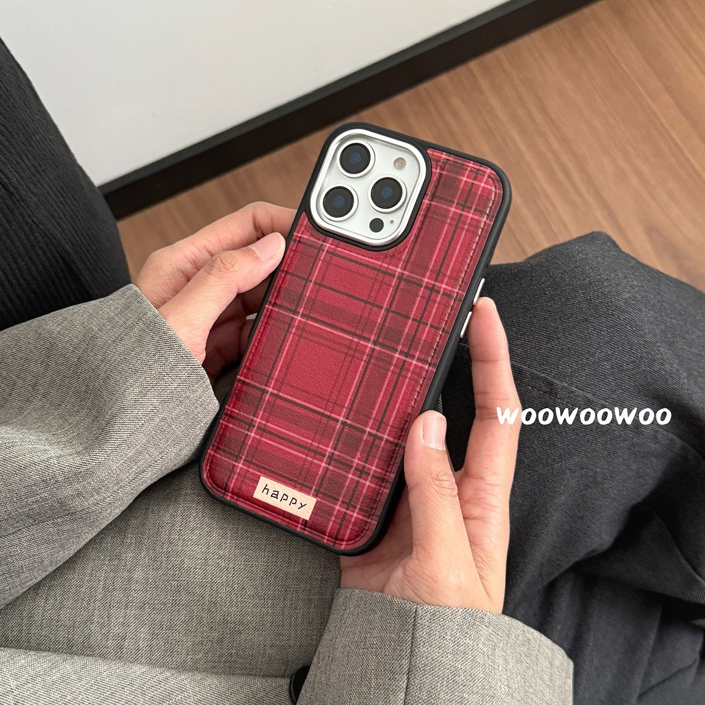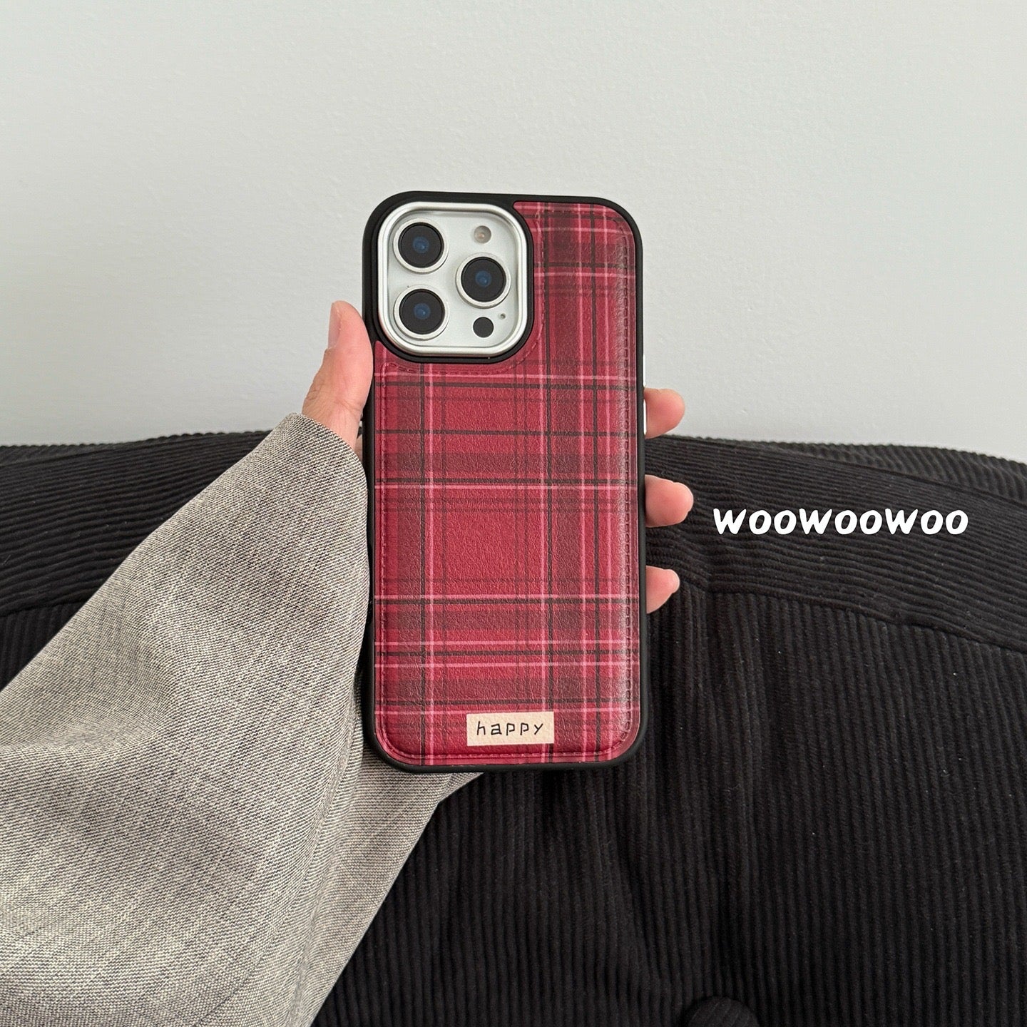 iPhoneケース おしゃれ チェック柄 赤い スマホケース
