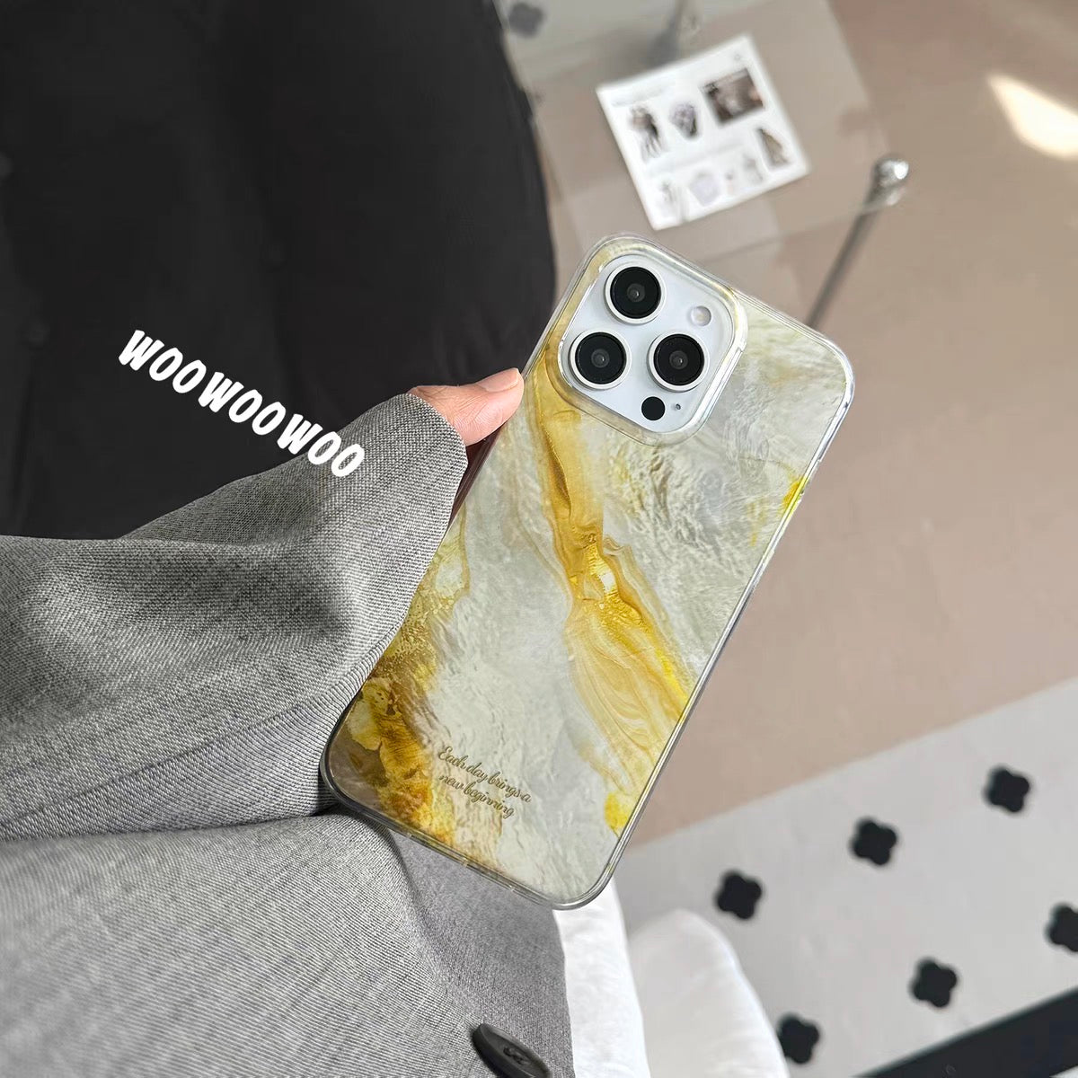 iPhoneケース おしゃれ 大理石風 イエロー スマホケース