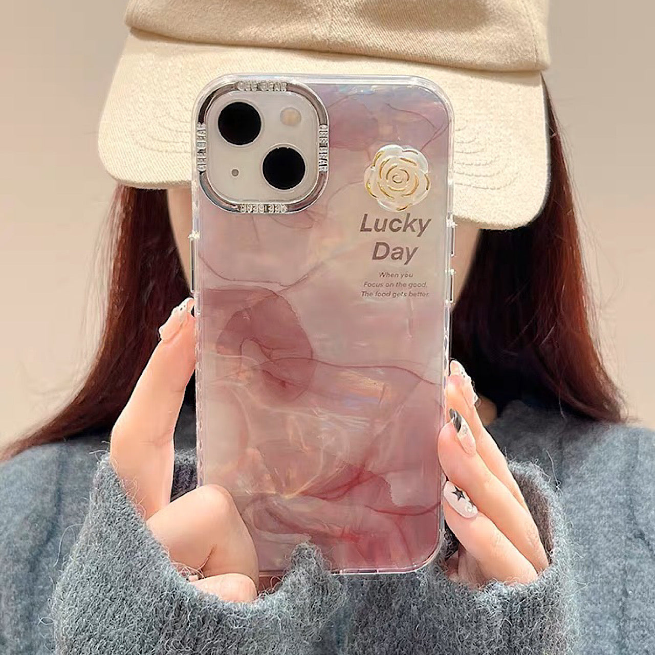 iPhoneケース おしゃれ 立体 お花 大理石風 スマホケース