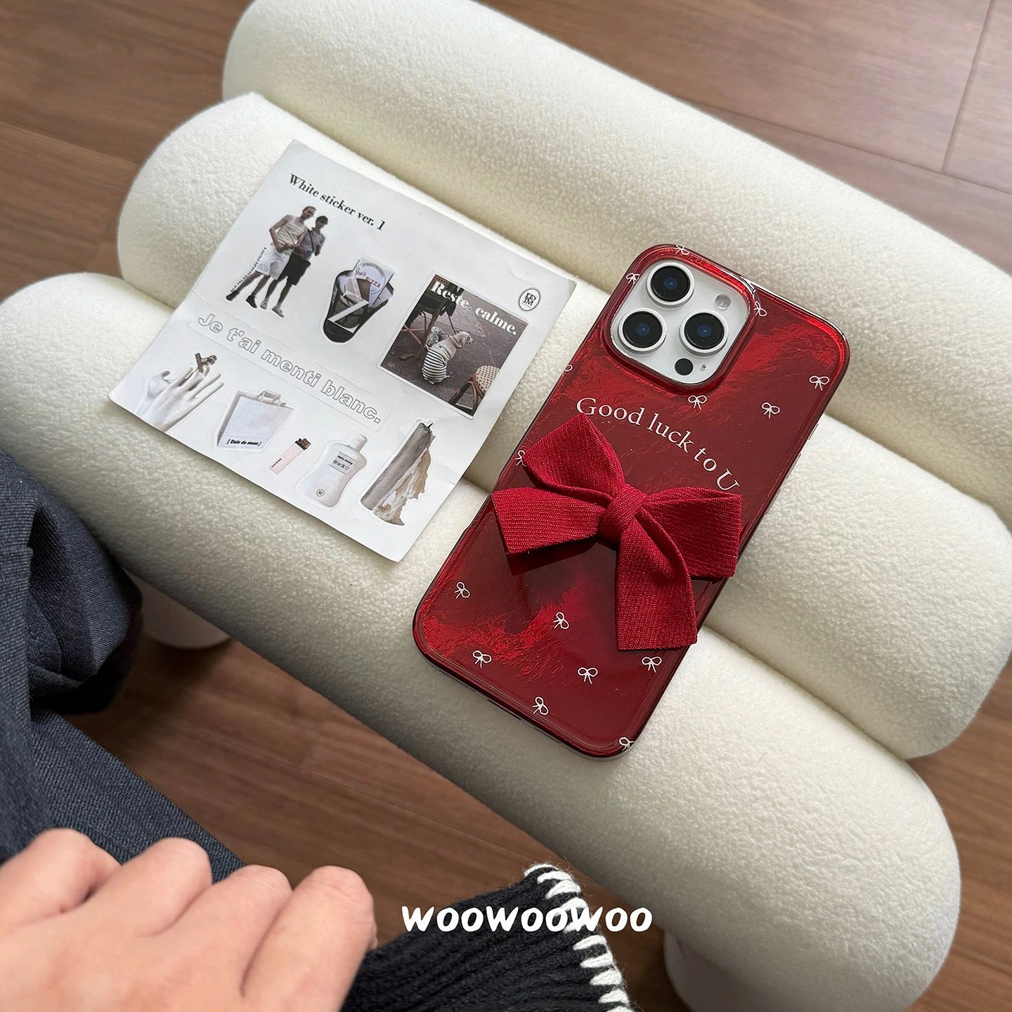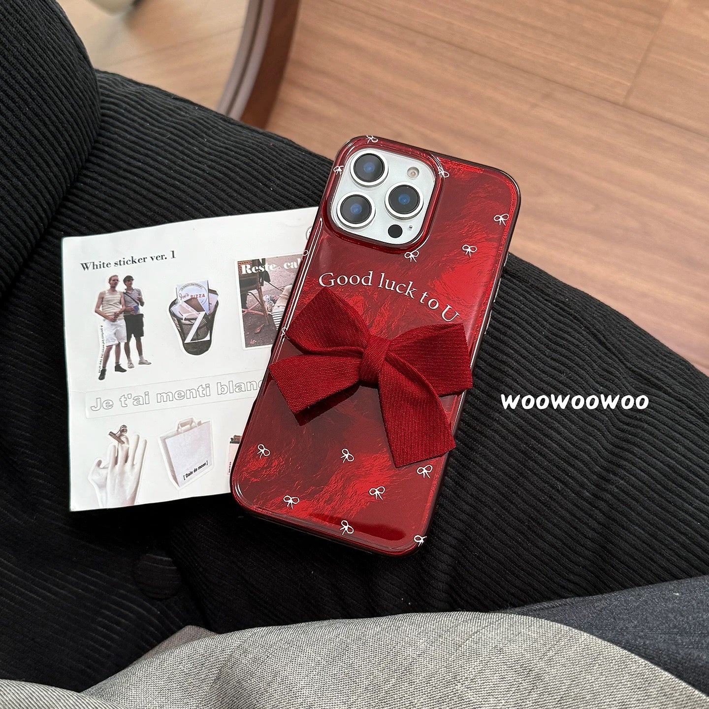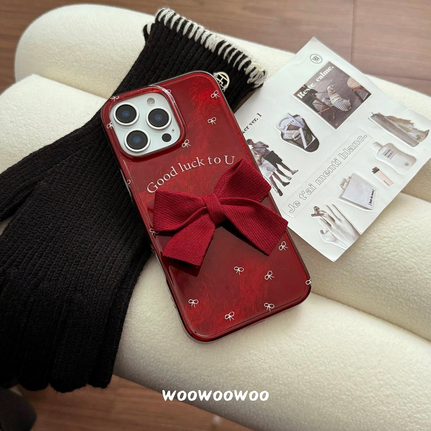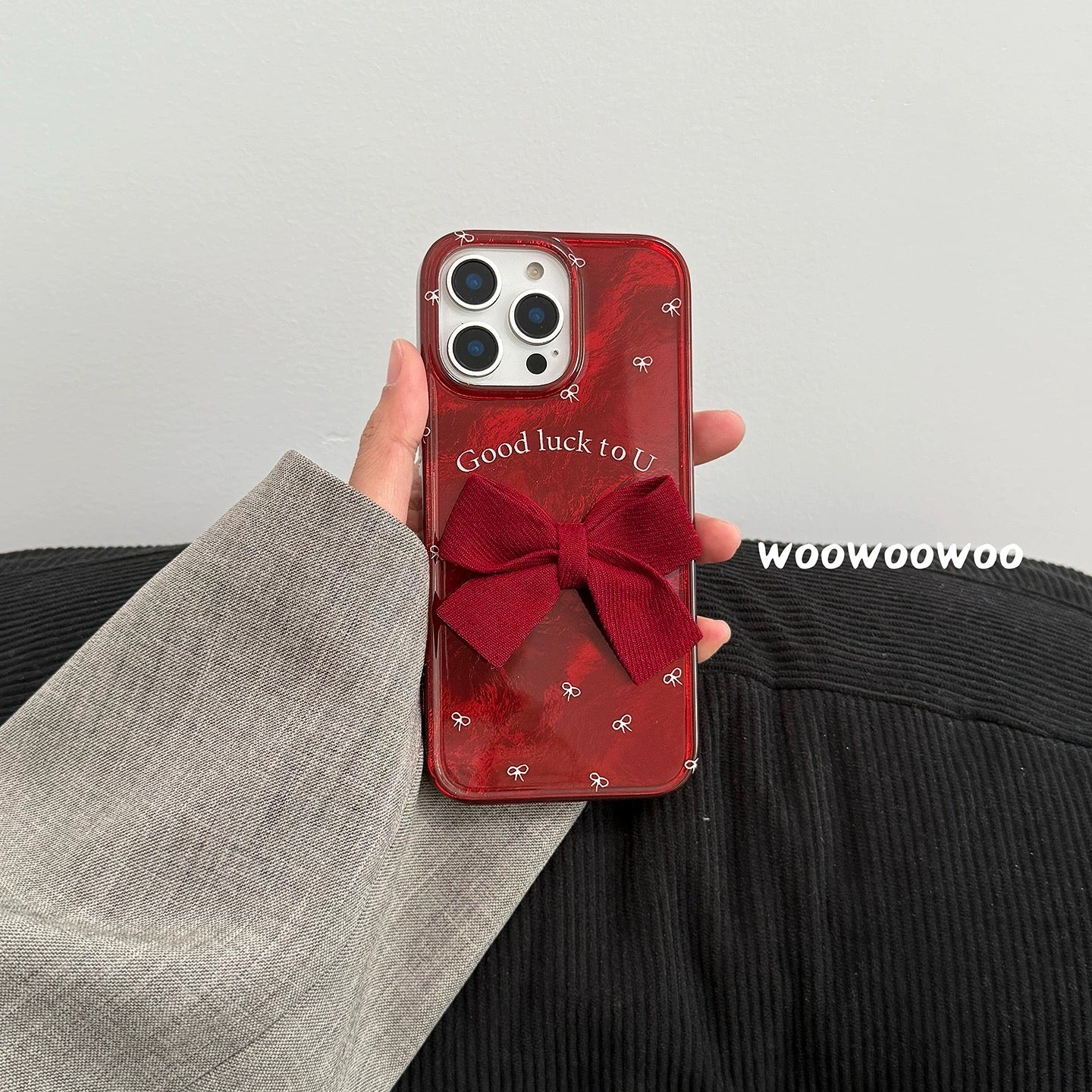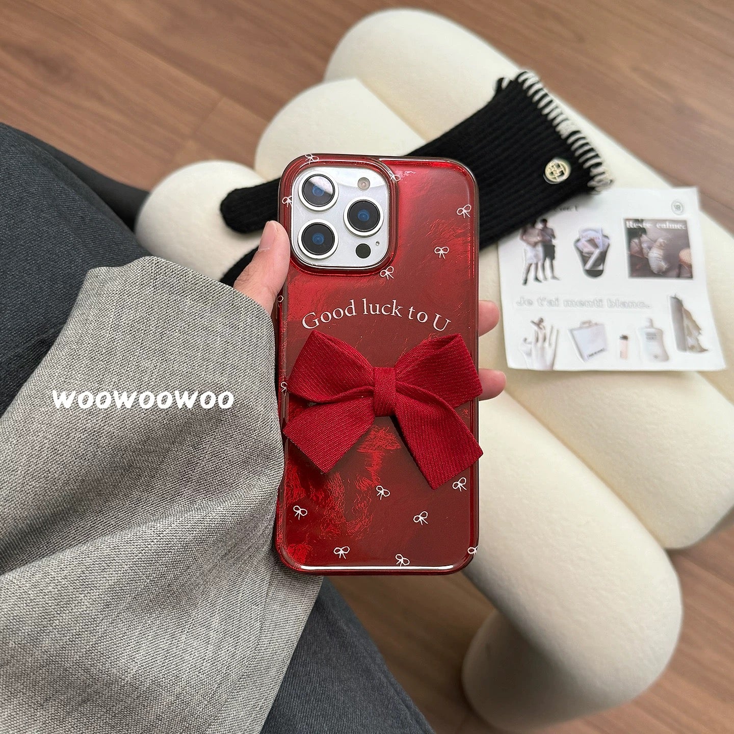 iPhoneケース おしゃれ 立体 リボン レッド スマホケース
