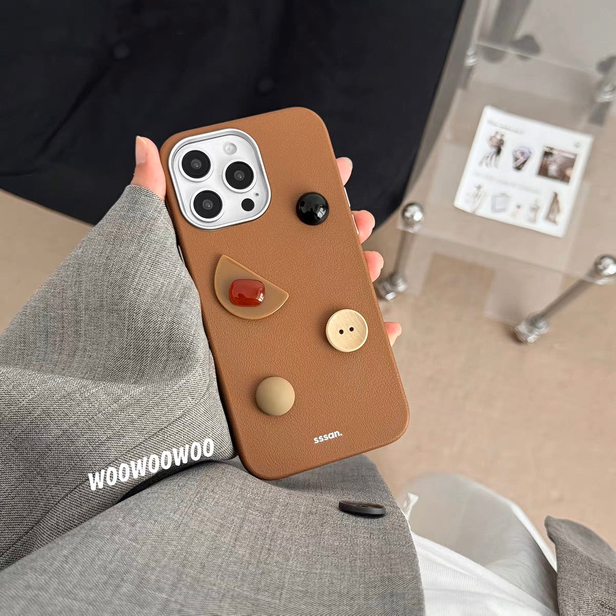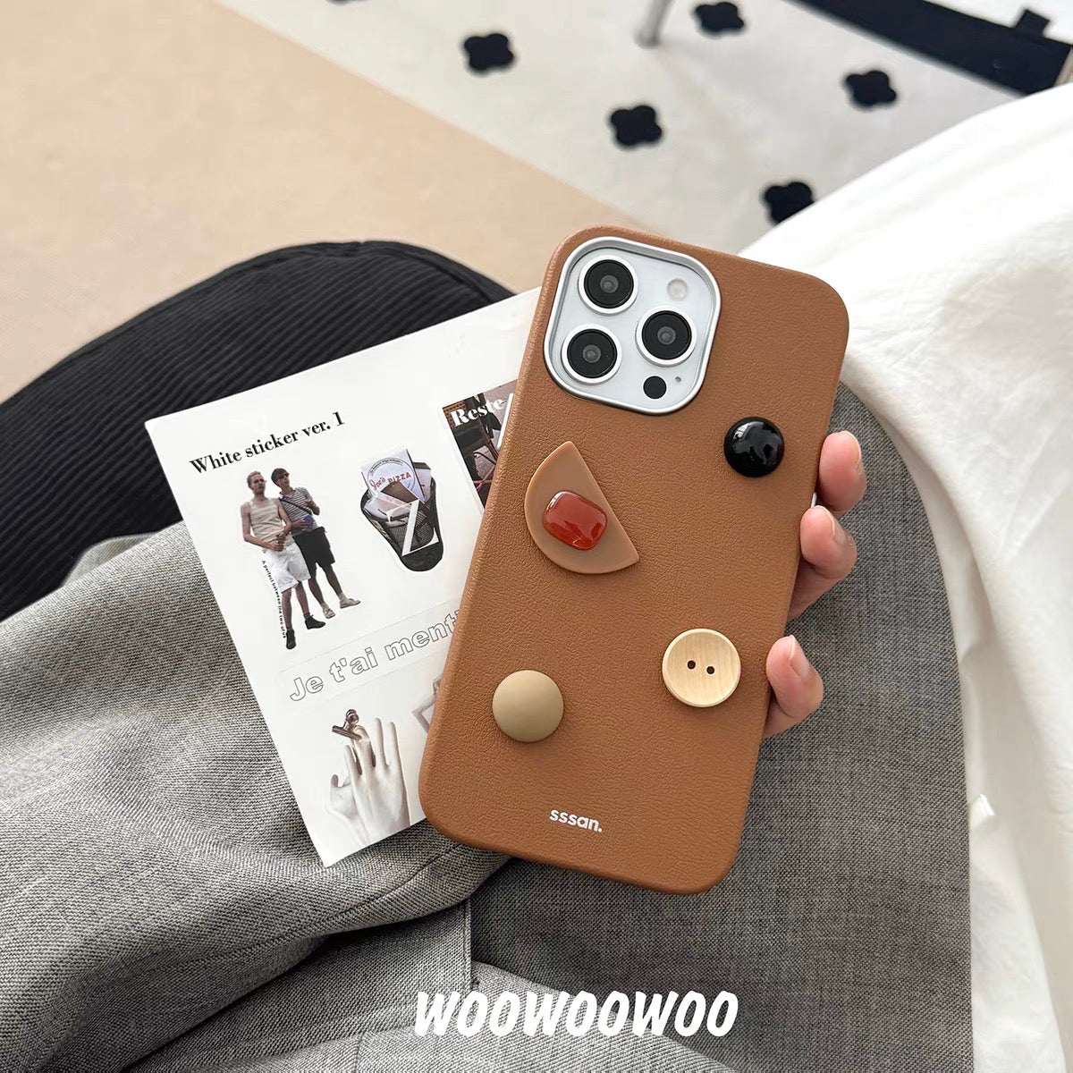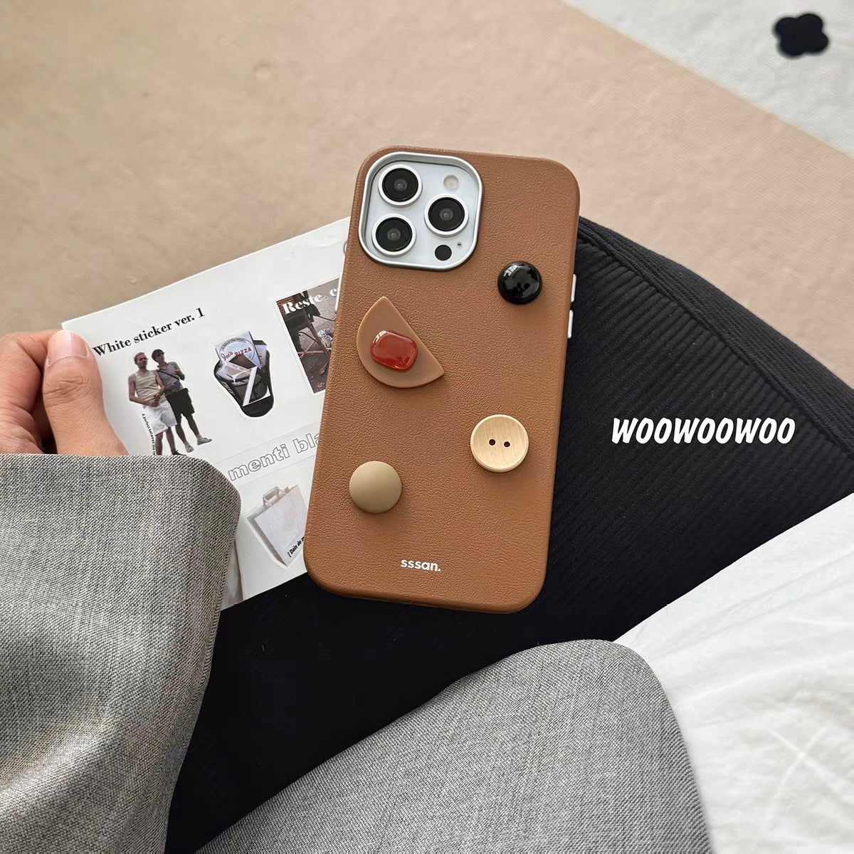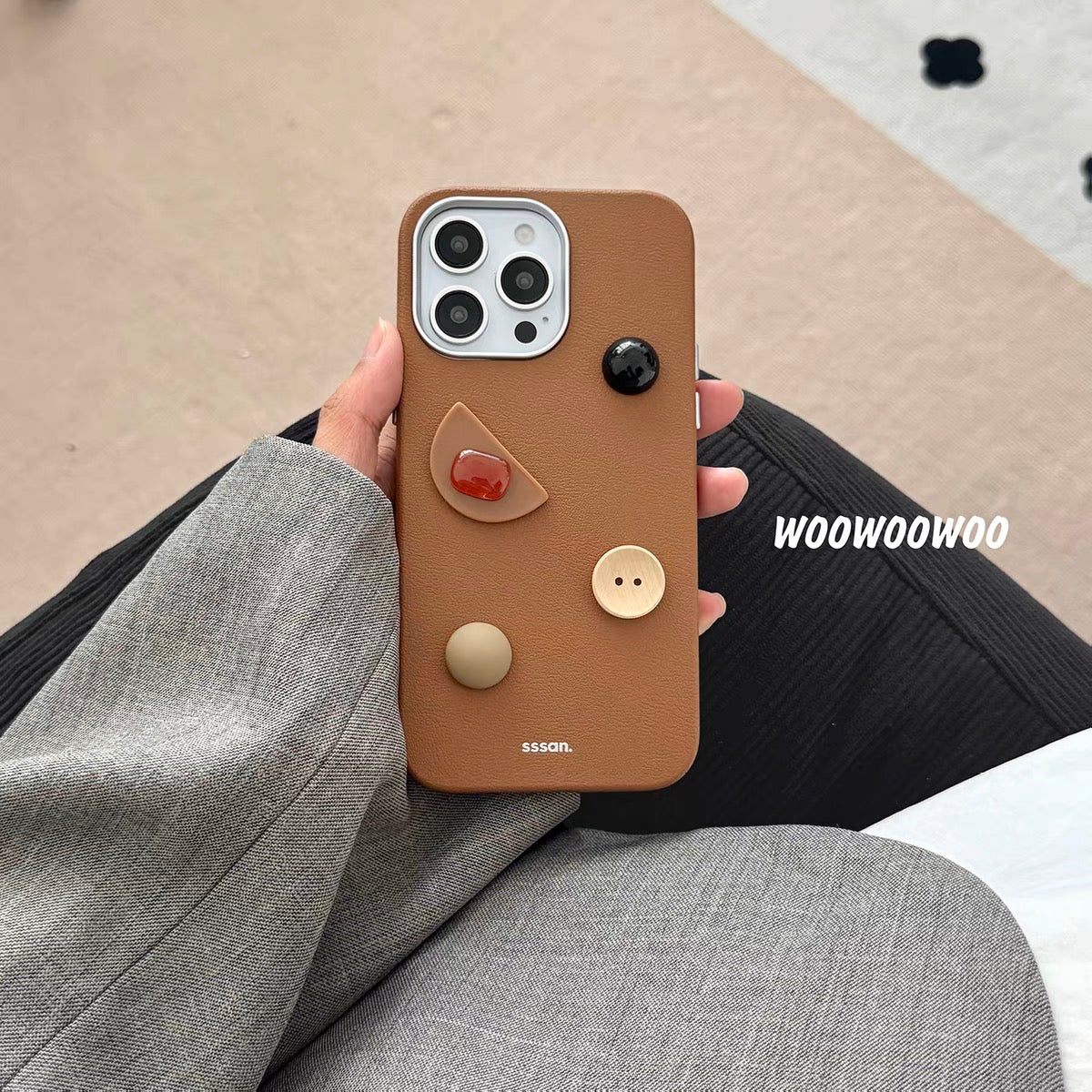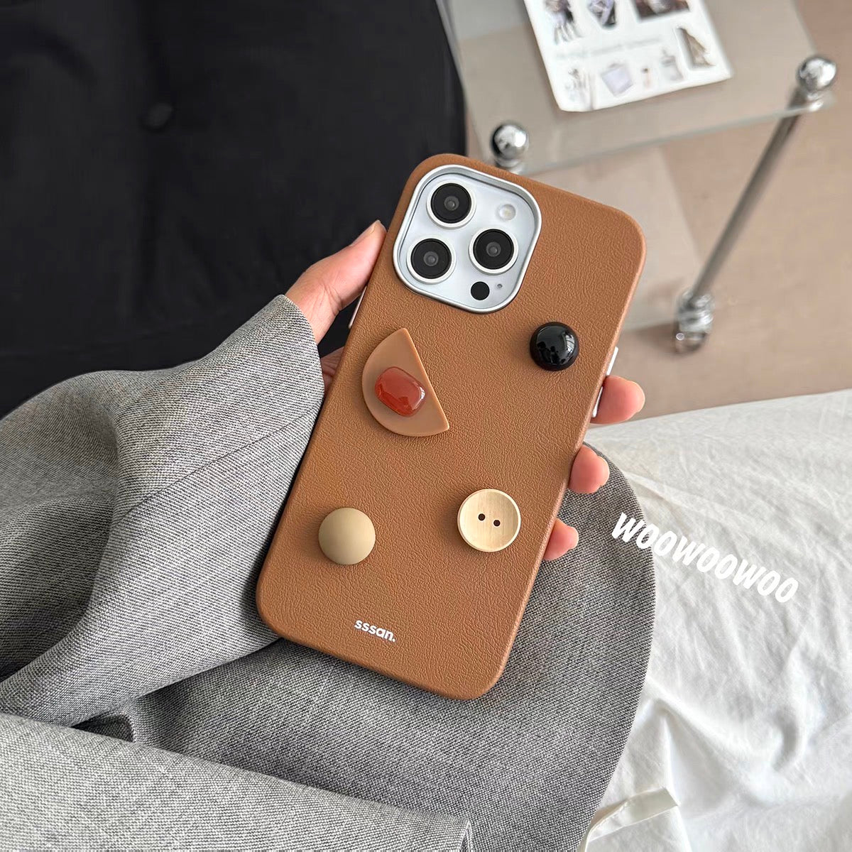 iPhoneケース おしゃれ 立体 ボタン ブラウン スマホケース