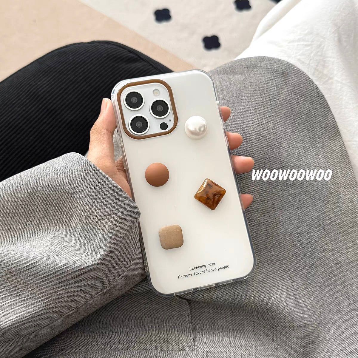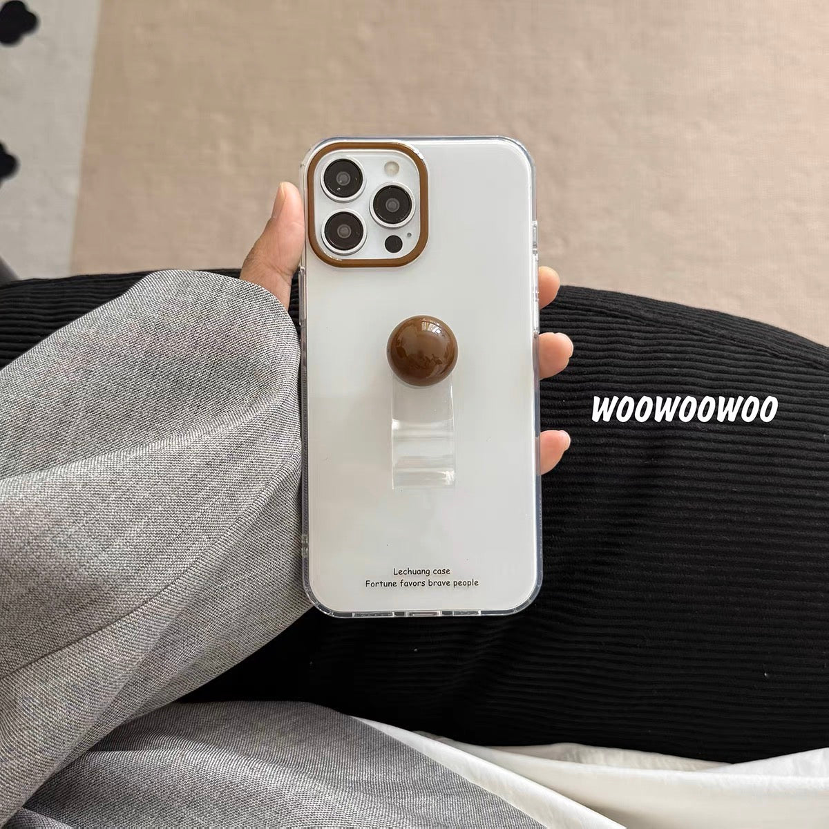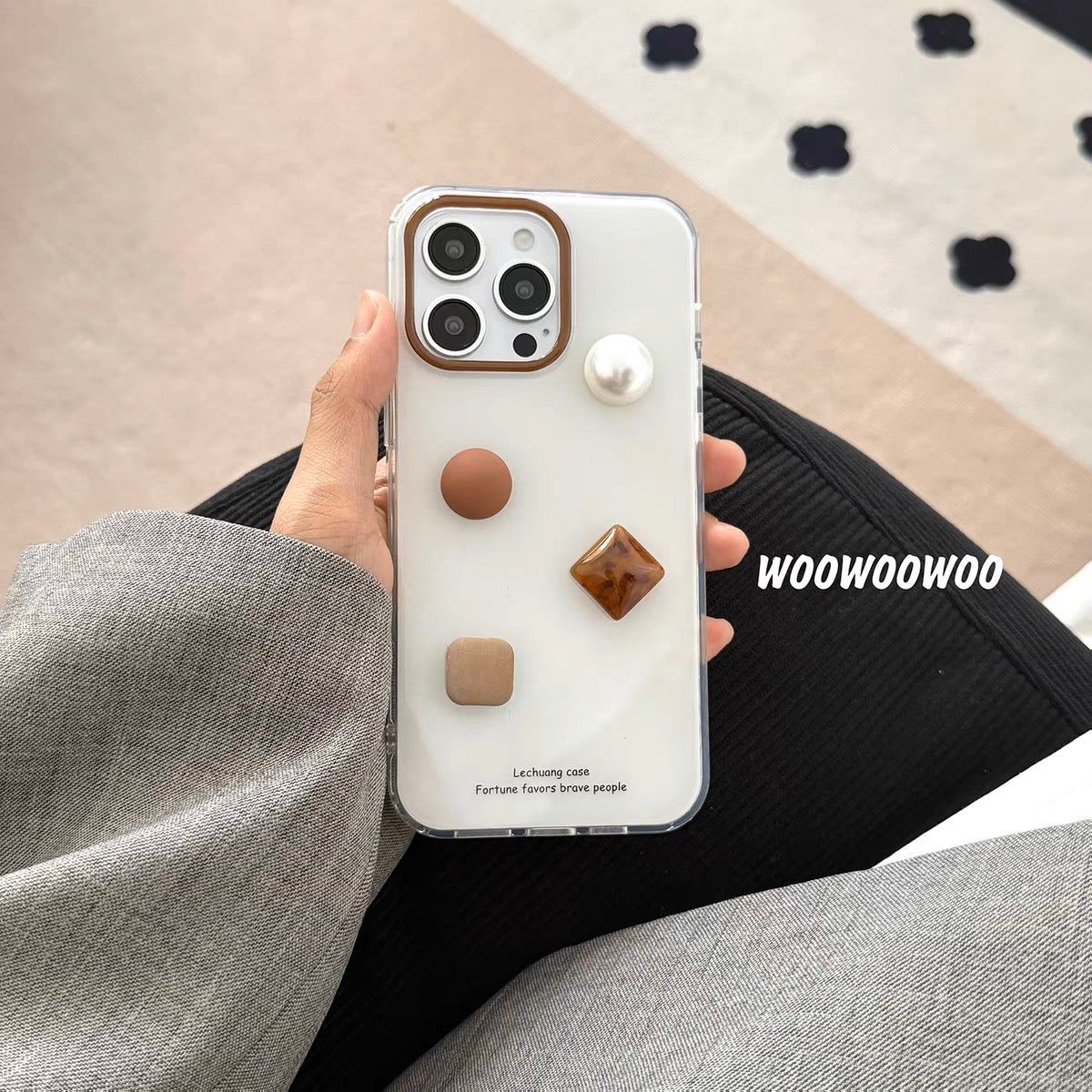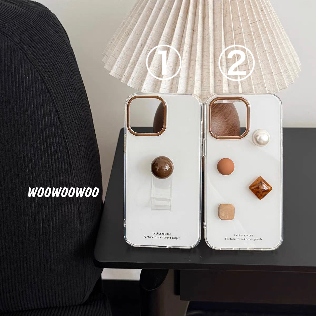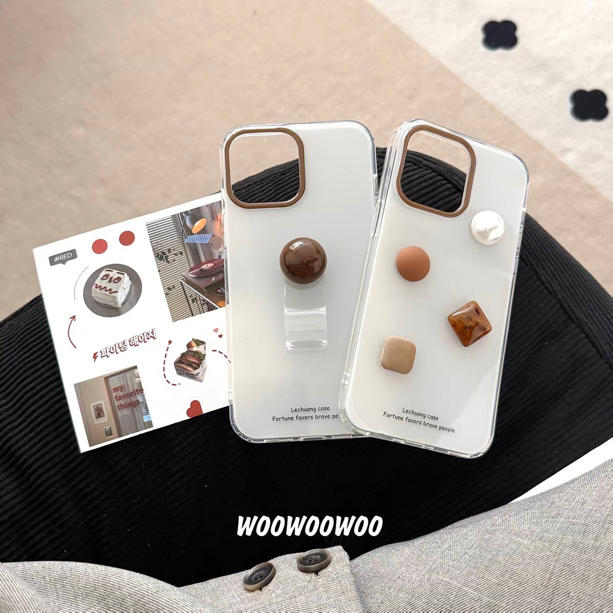 iPhoneケース おしゃれ 立体 ボタン ブラウン スマホケース