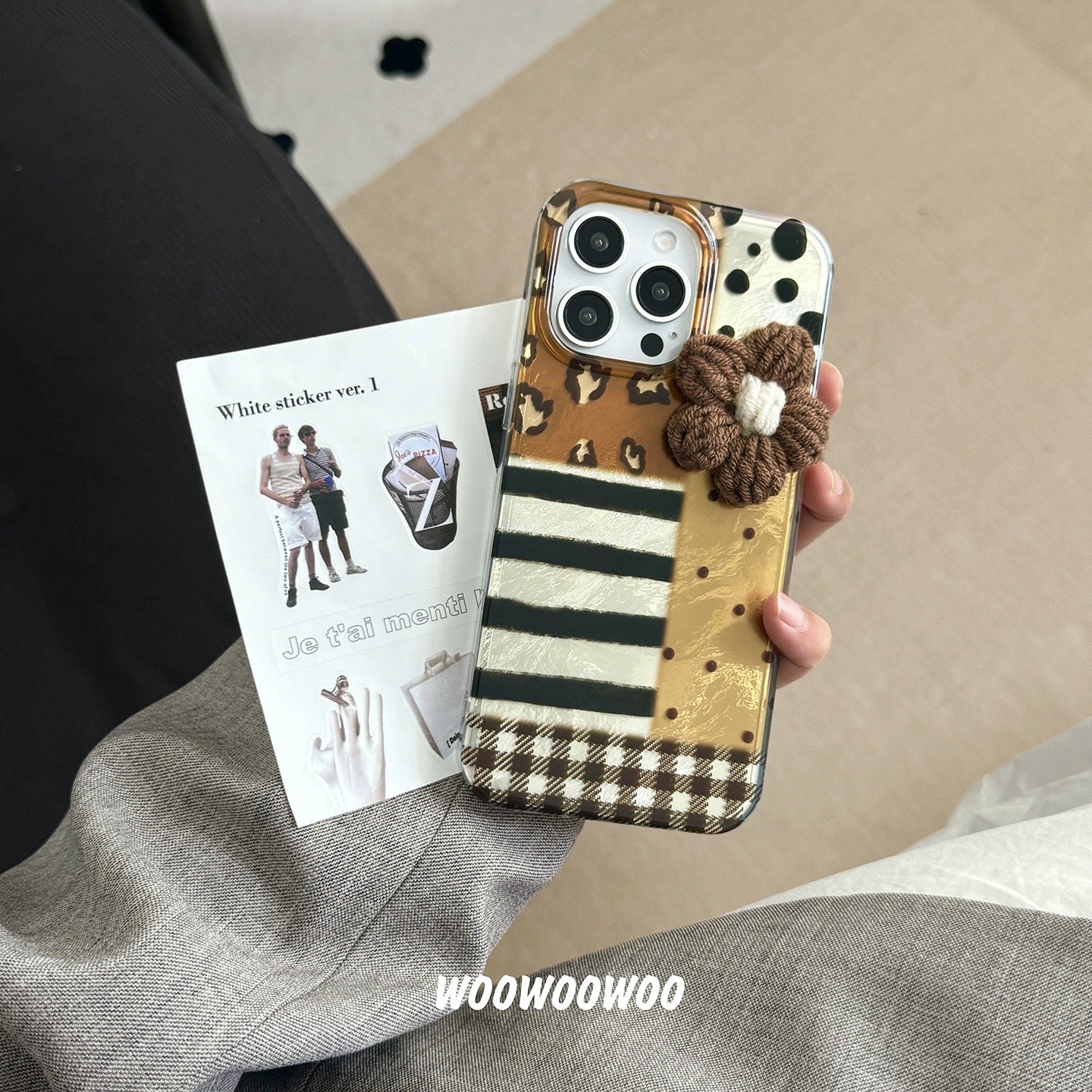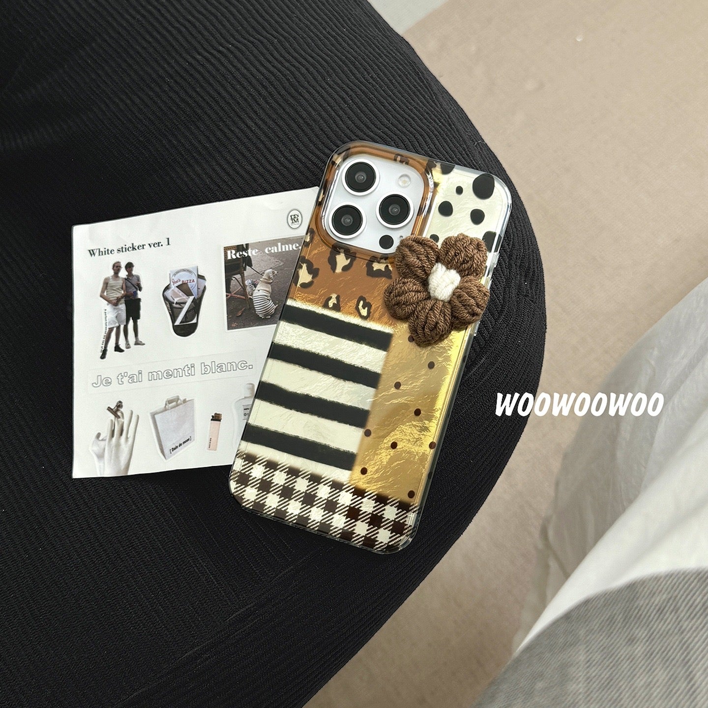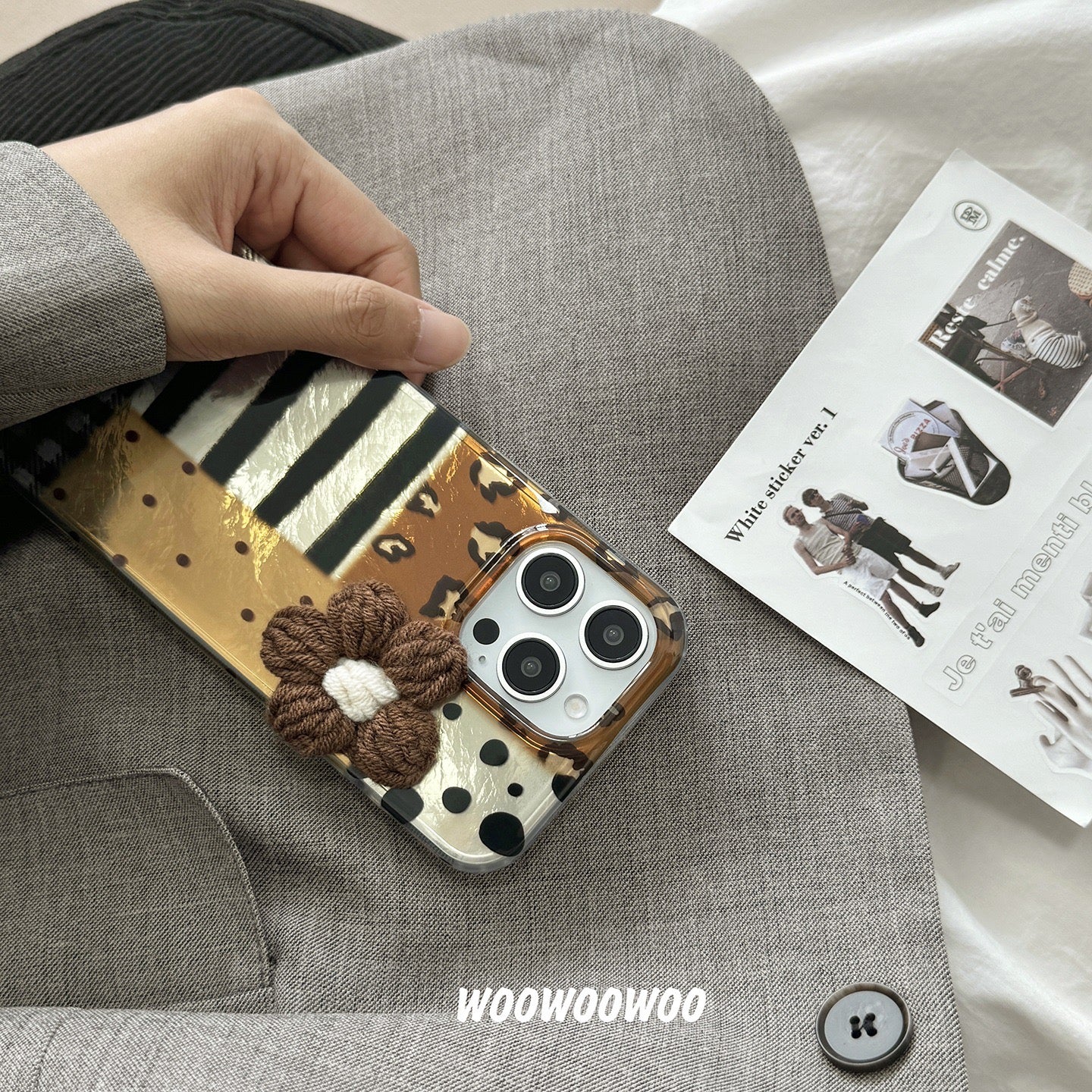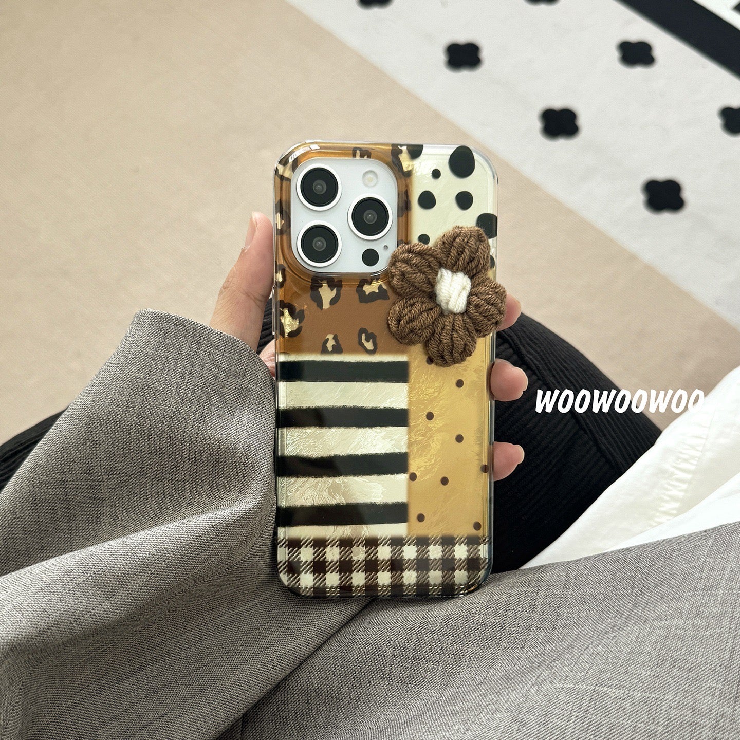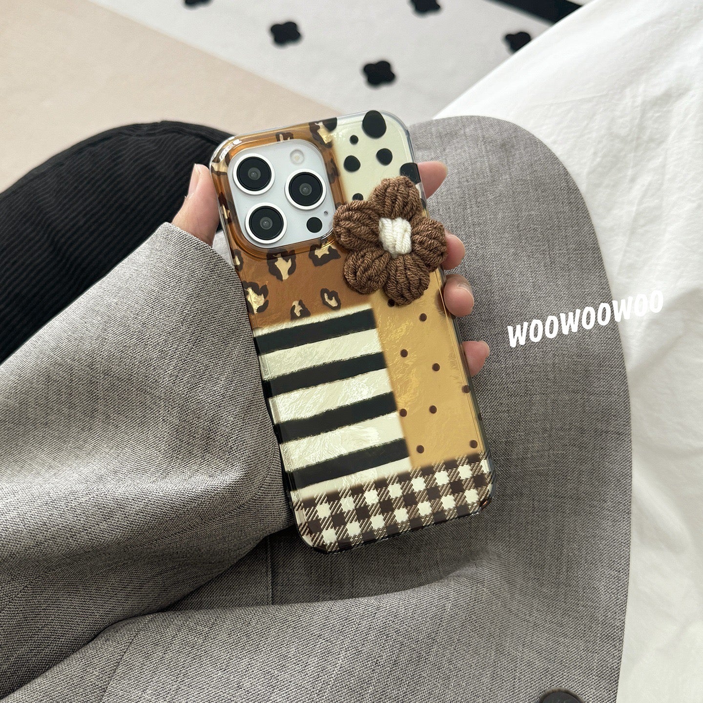 iPhoneケース おしゃれ 立体 ボタン ブラウン スマホケース