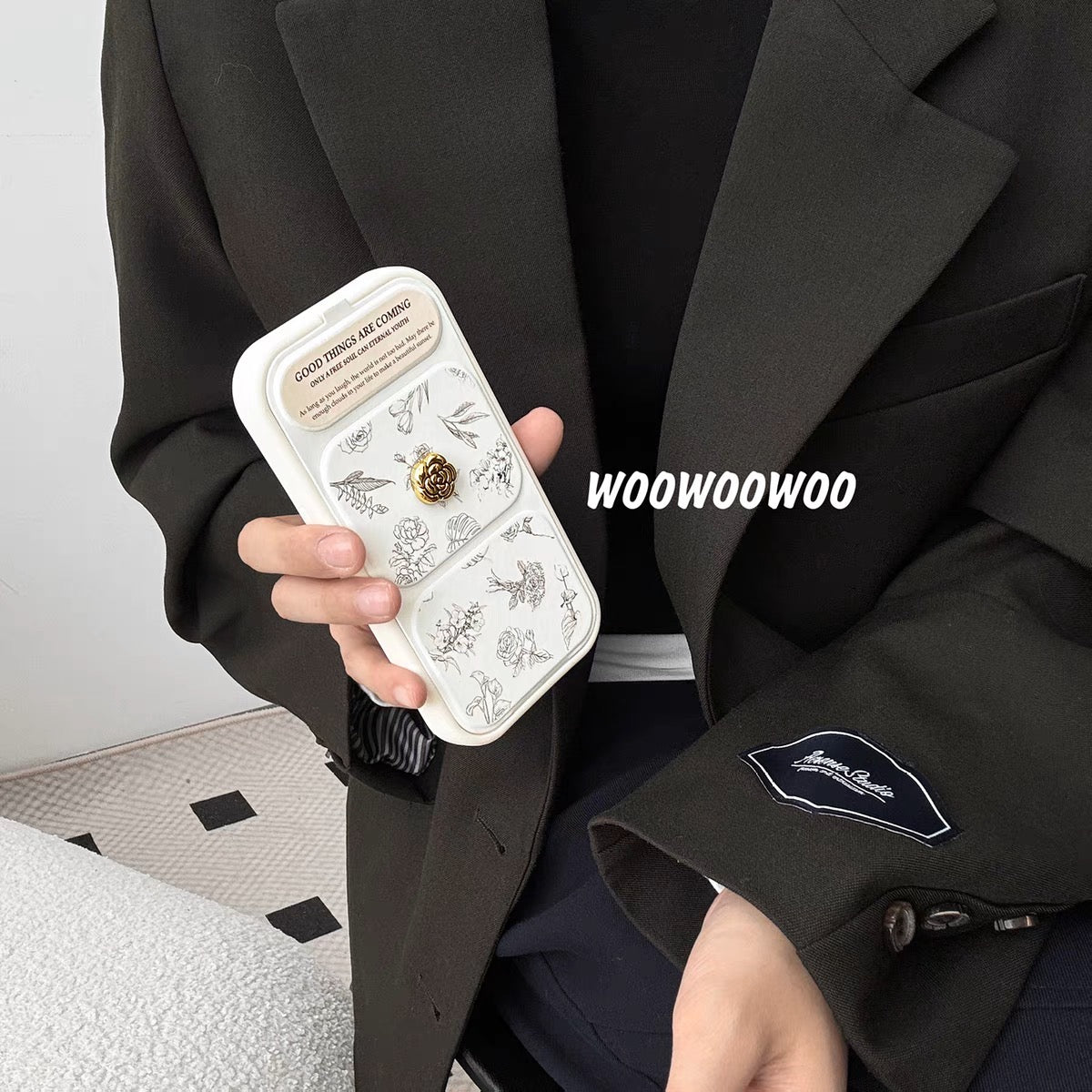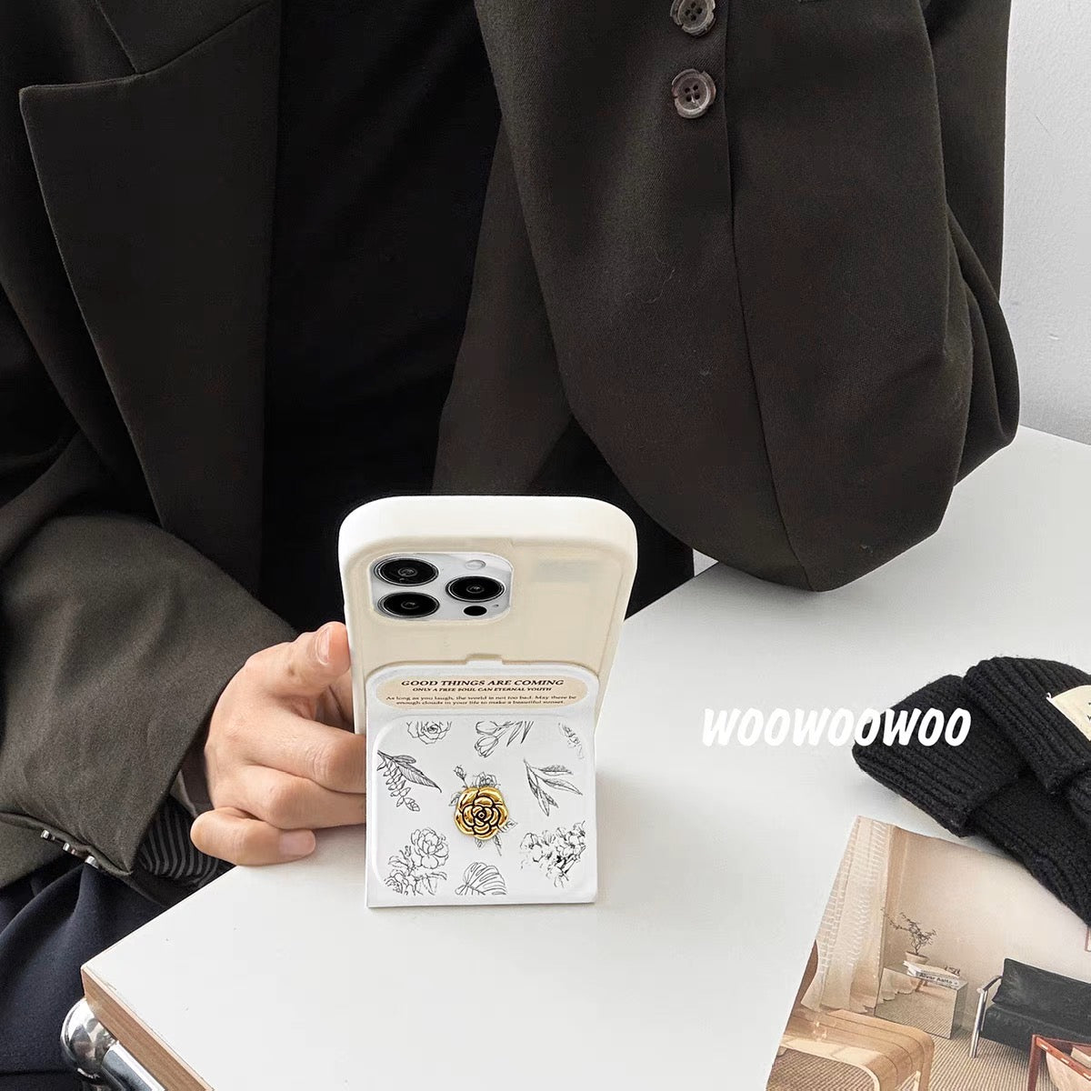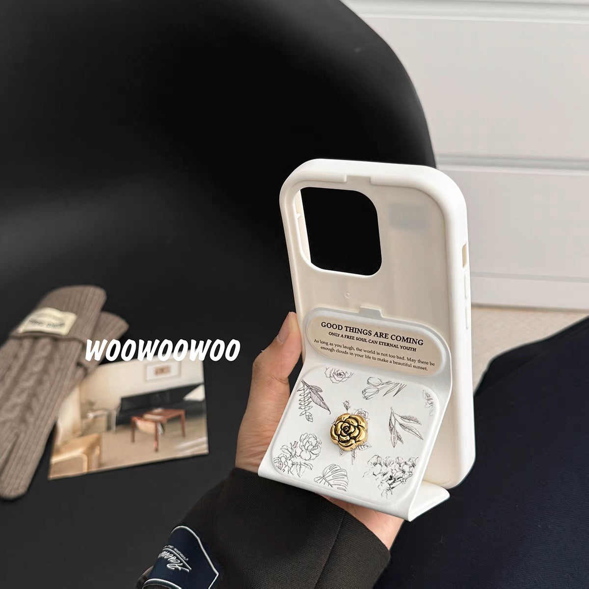 iPhoneケース おしゃれ 立体 フラワー スタンド付き ホワイト スマホケース