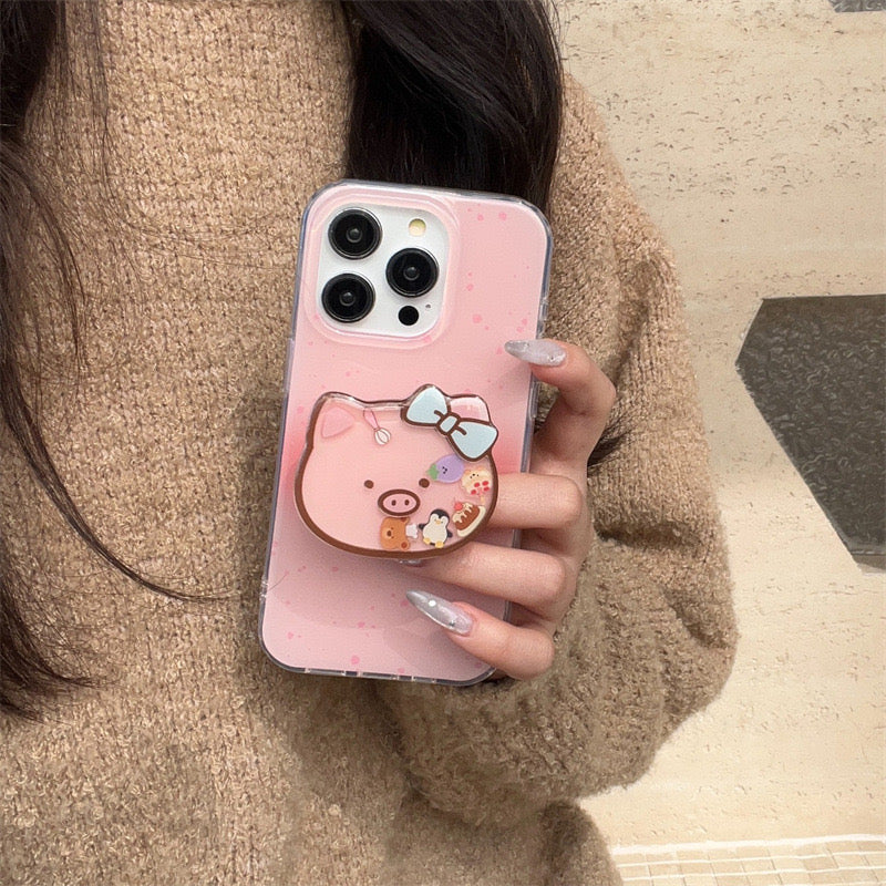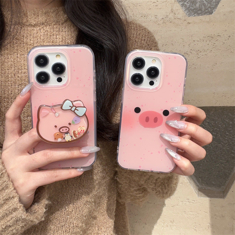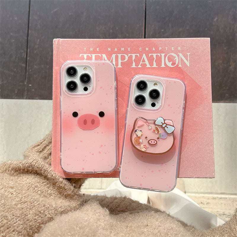 iPhoneケース かわいい 子豚 持ち手付き スマホケース