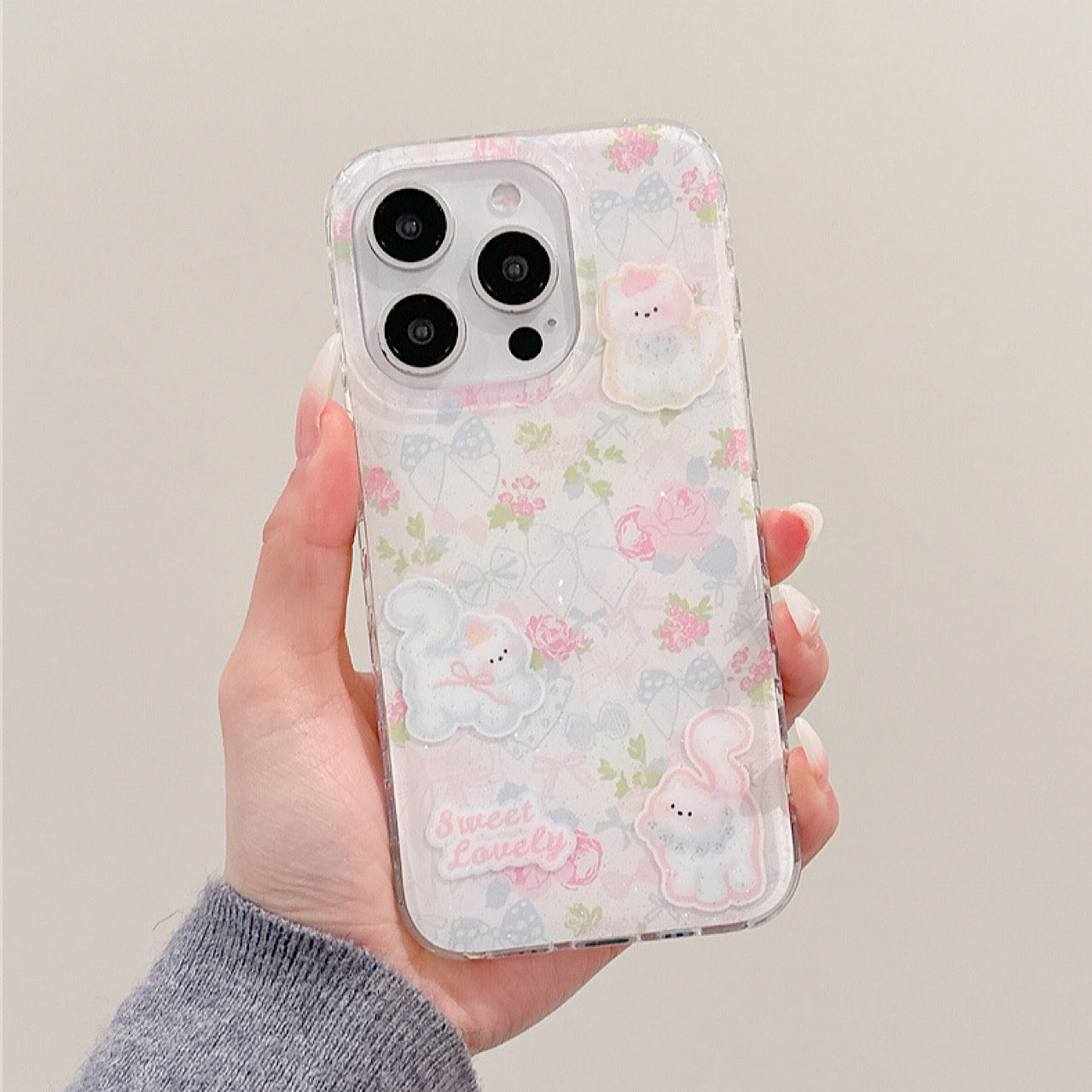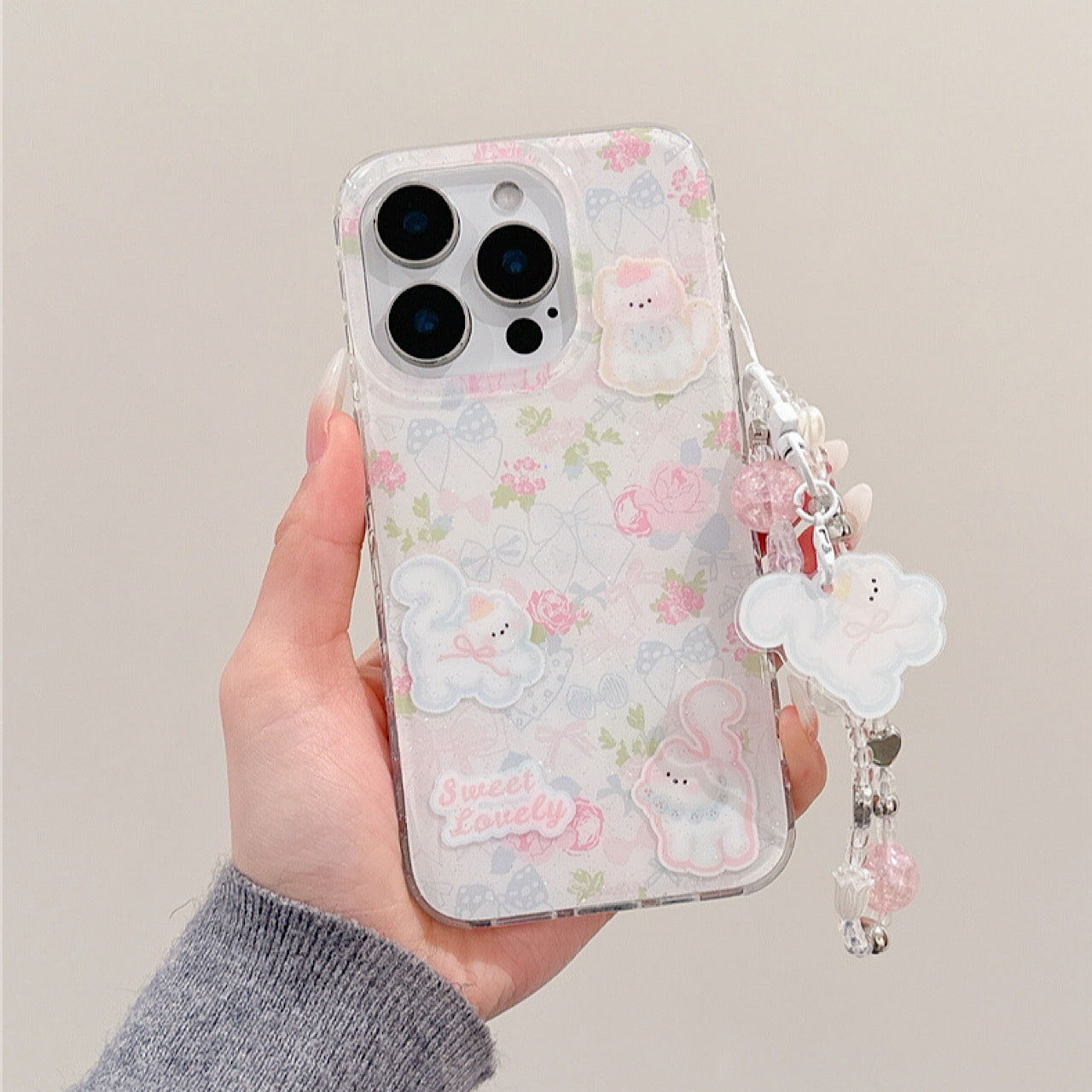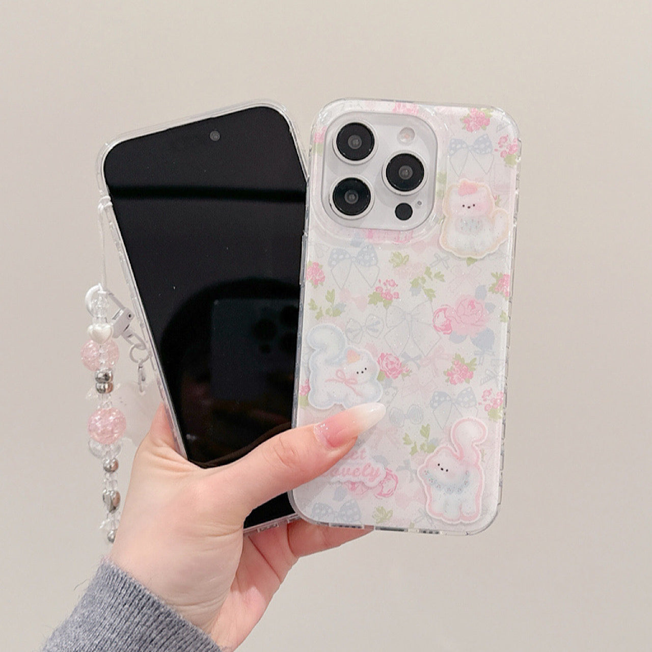iPhoneケース かわいい 白猫 フラワー リボン スマホケース
