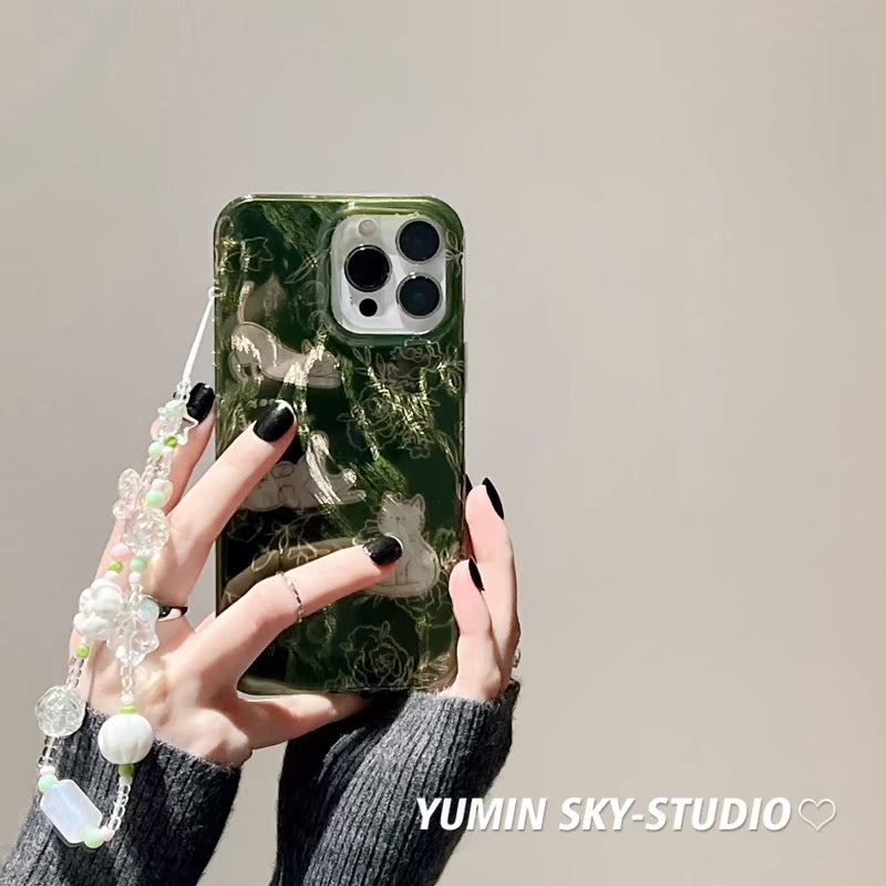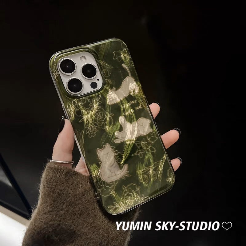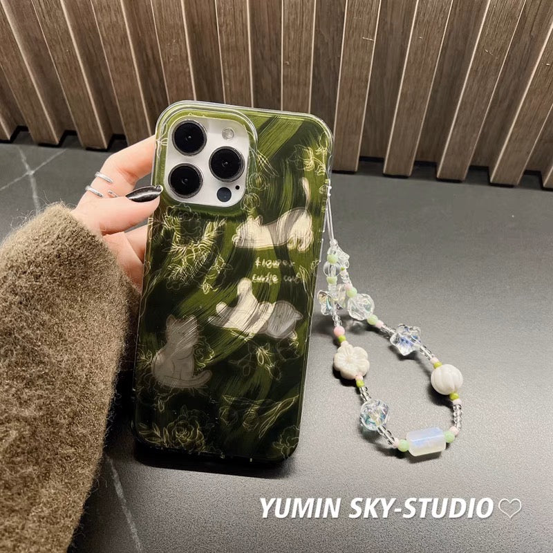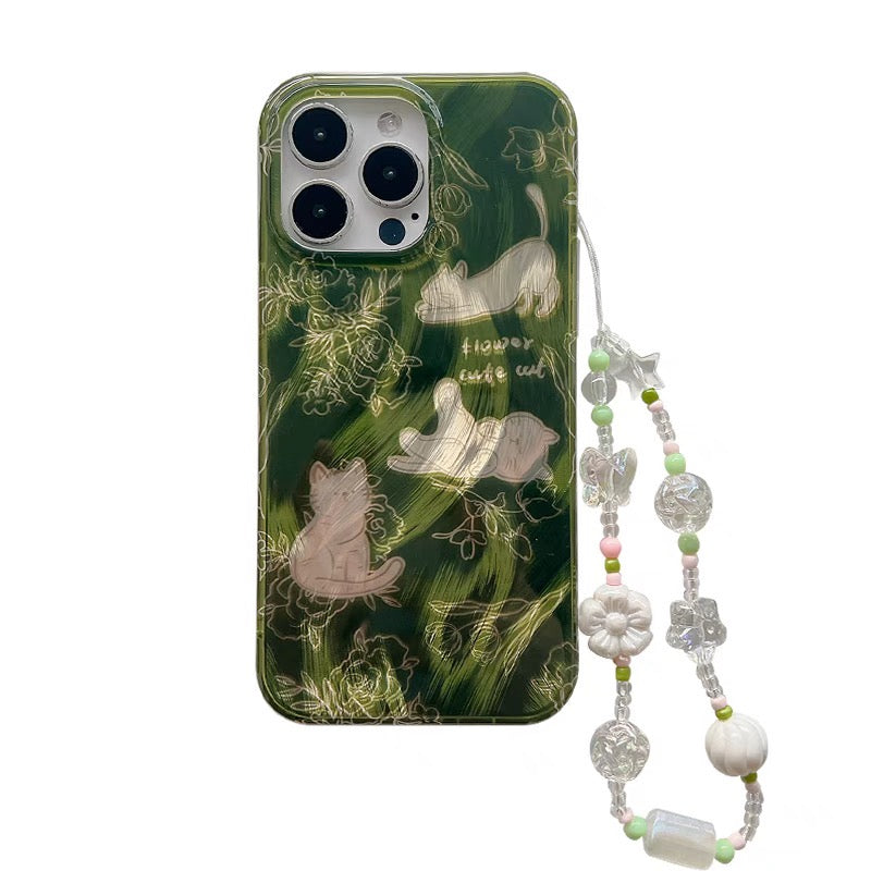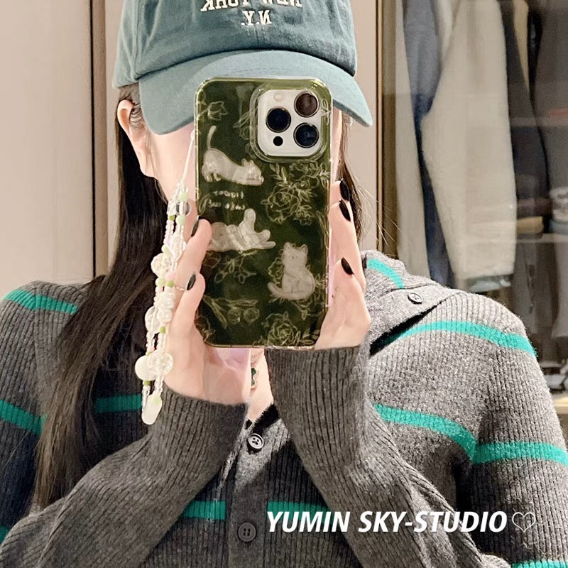 iPhoneケース かわいい 白猫 グリーン スマホケース