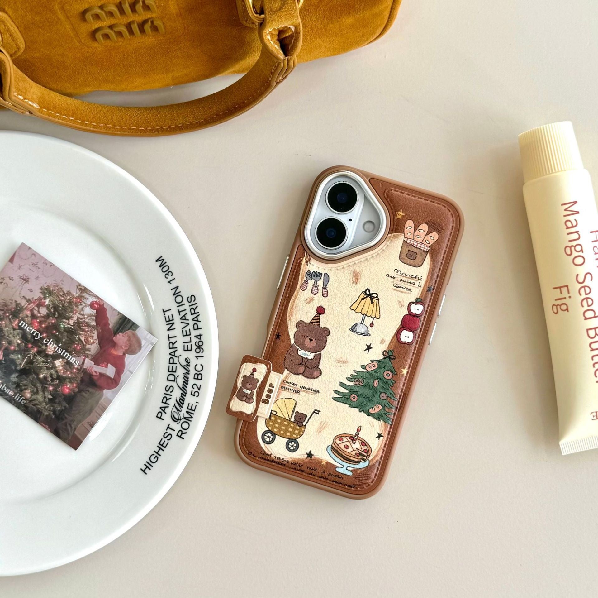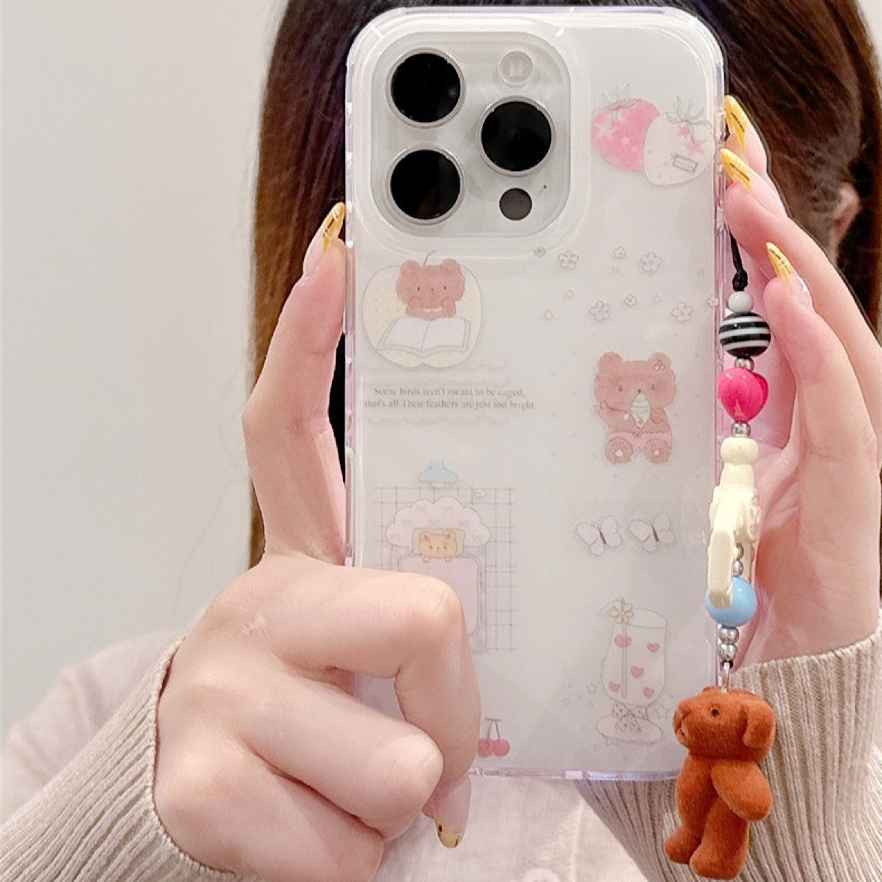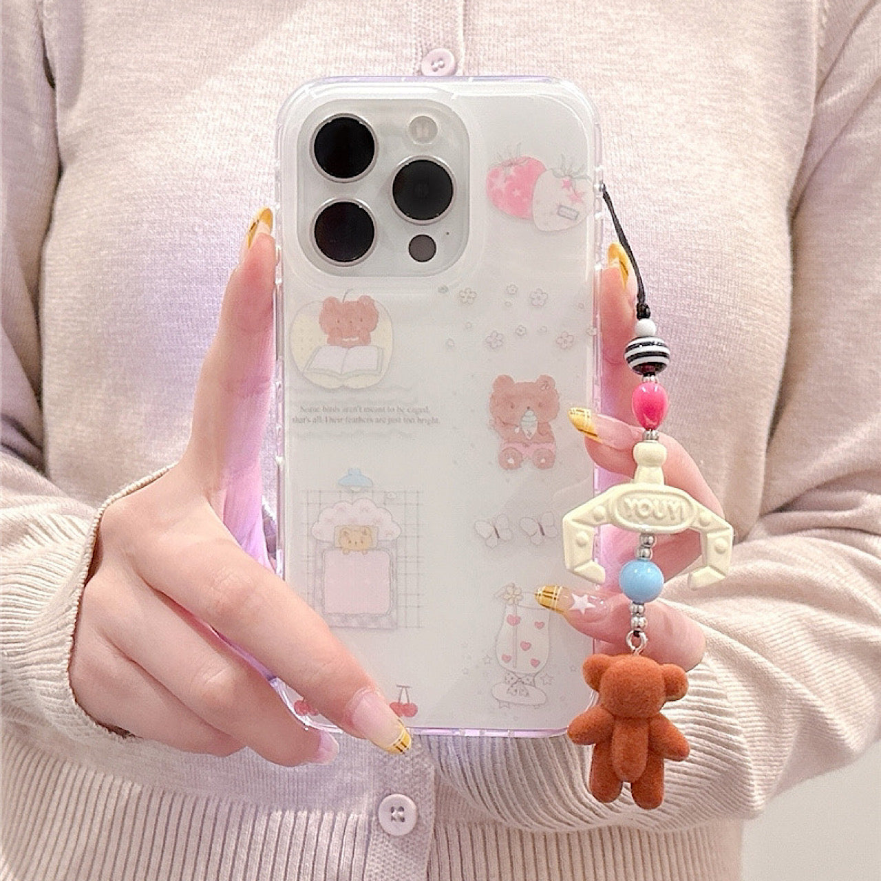 iPhoneケース かわいい 小熊 パン 持ち手付き スマホケース