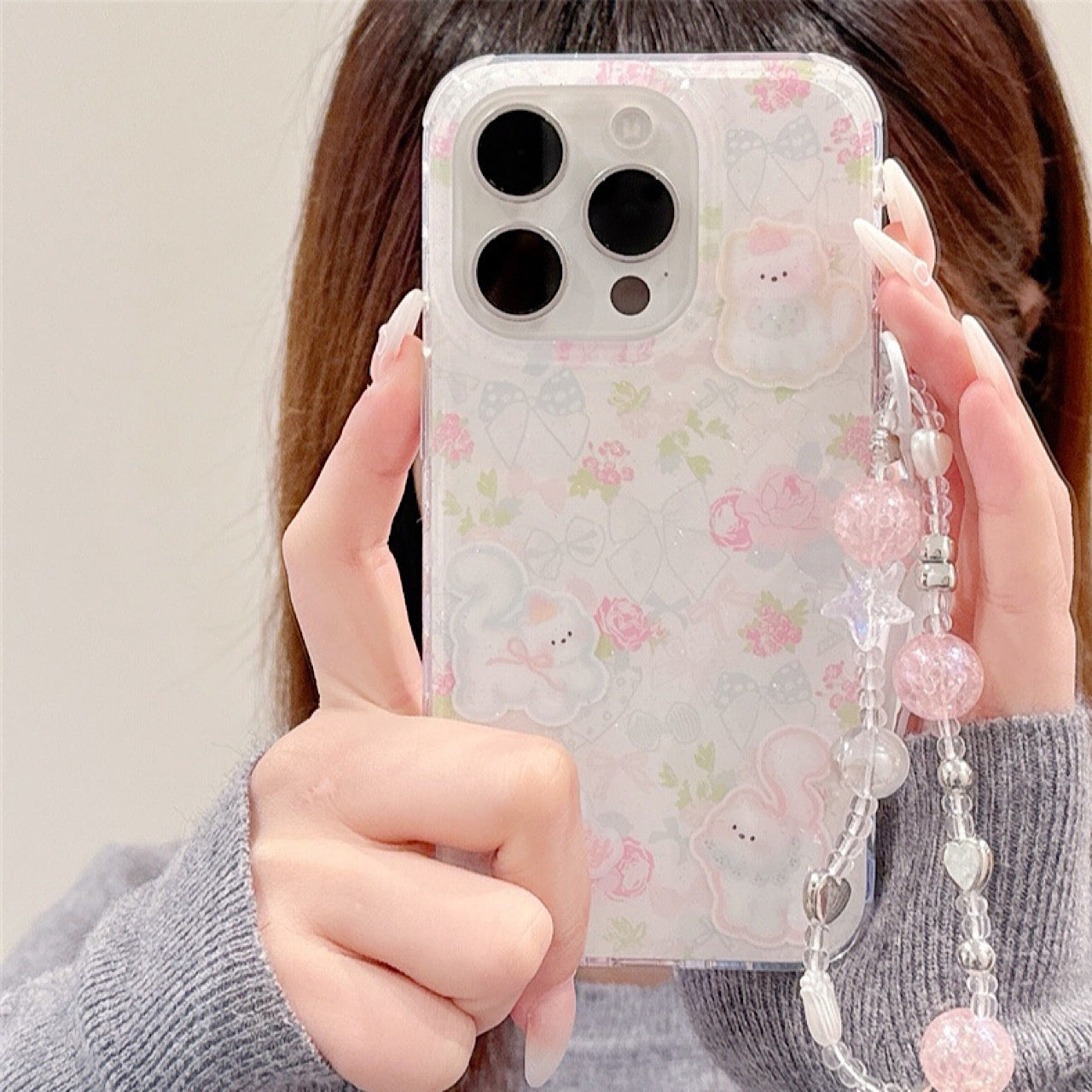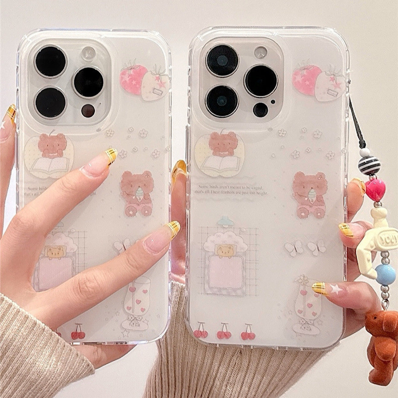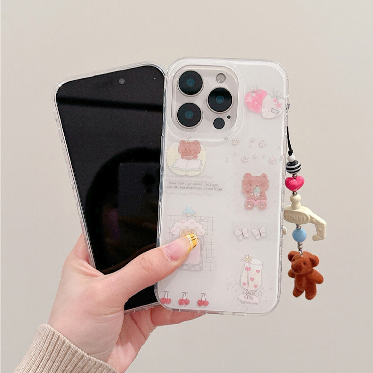 iPhoneケース かわいい 小熊 パン 持ち手付き スマホケース