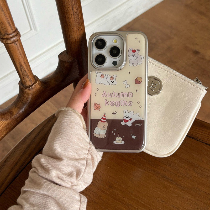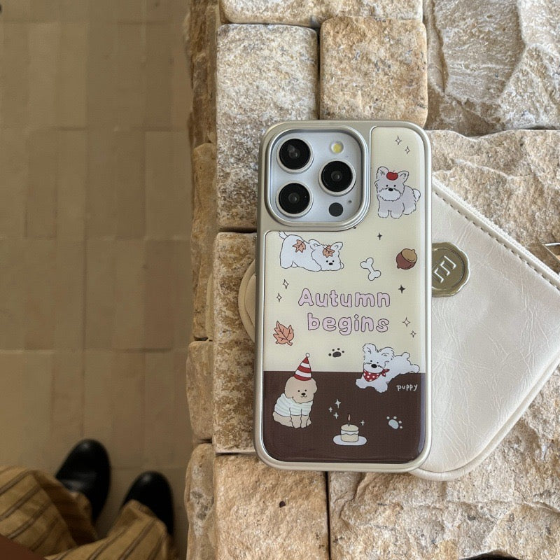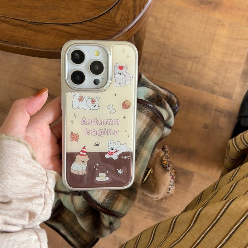 iPhoneケース かわいい 白犬 イエロー スマホケース