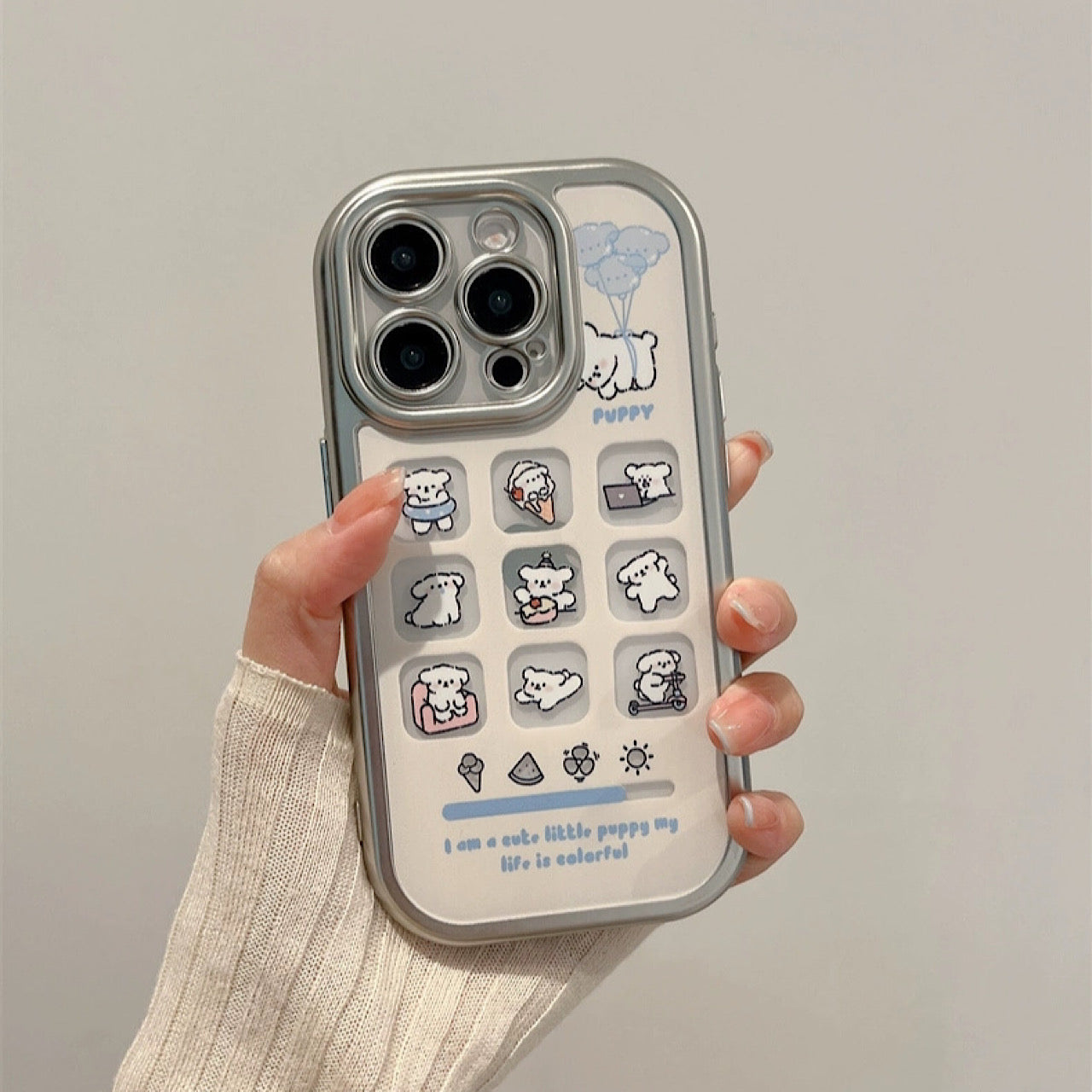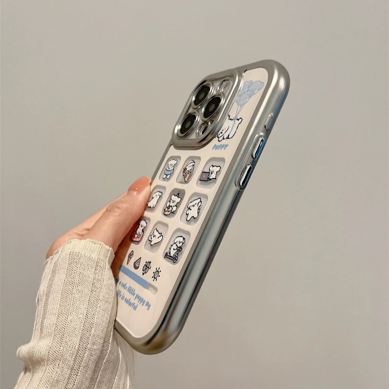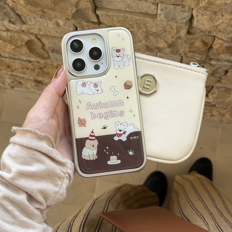 iPhoneケース かわいい 白犬 スタンド付き スマホケース