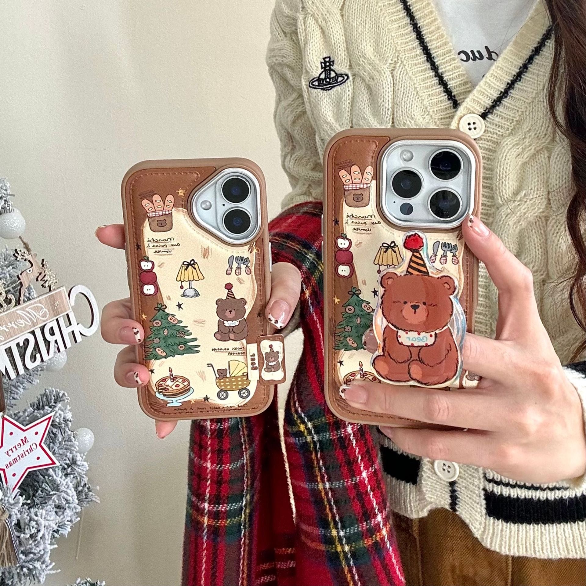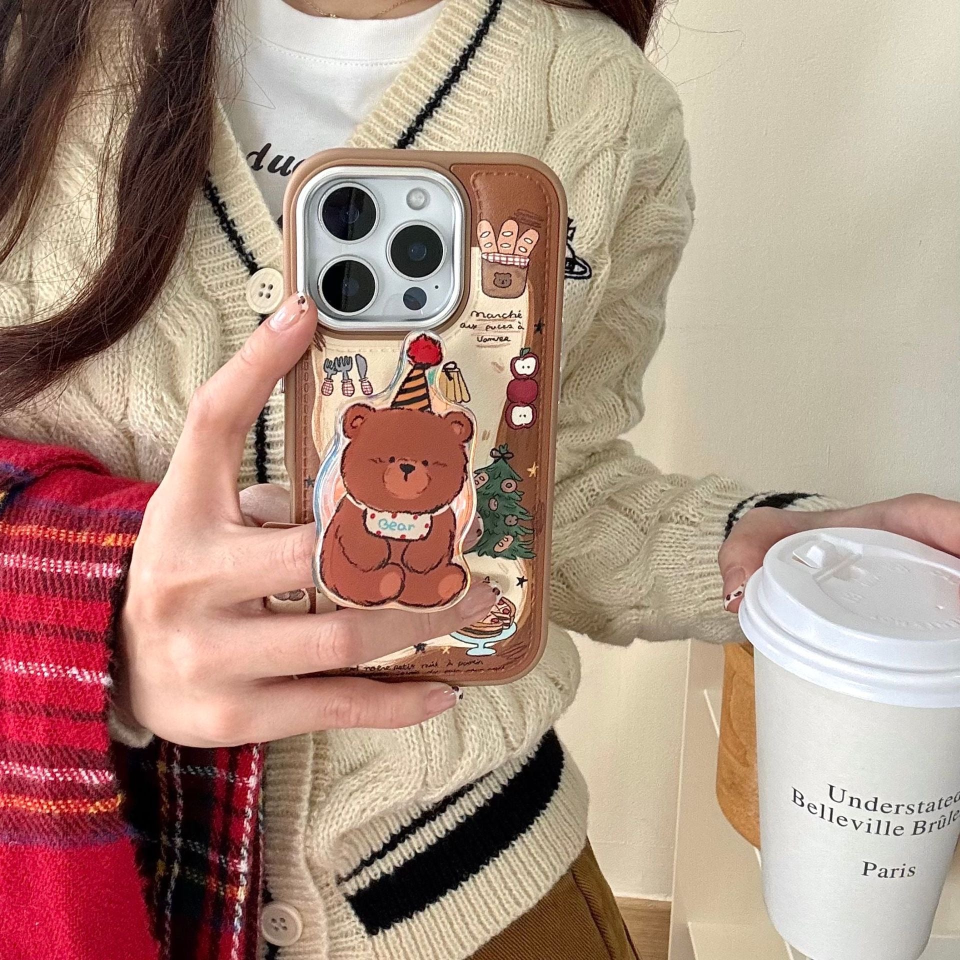 iPhoneケース かわいい 小熊 ブラウン スマホケース