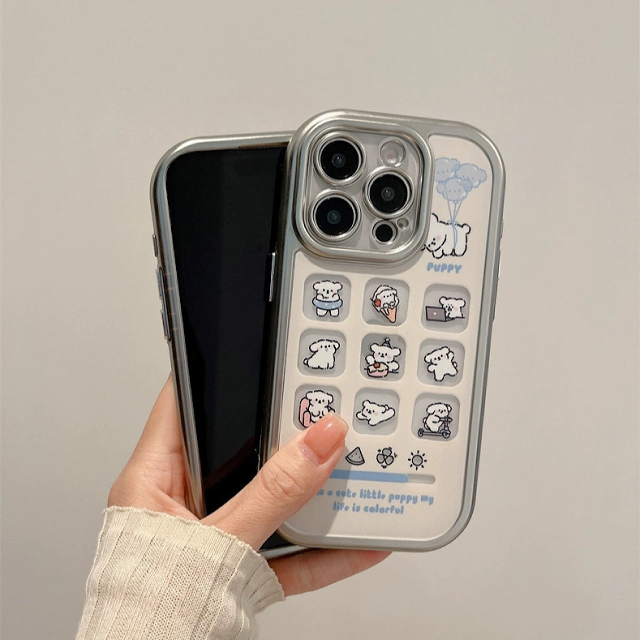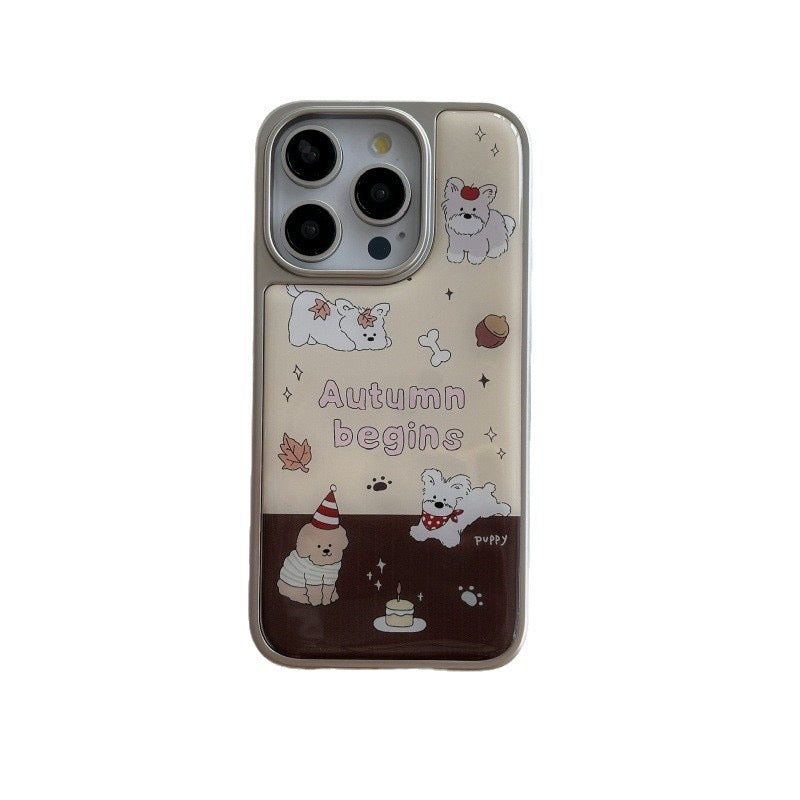 iPhoneケース かわいい 白犬 りんご スマホケース