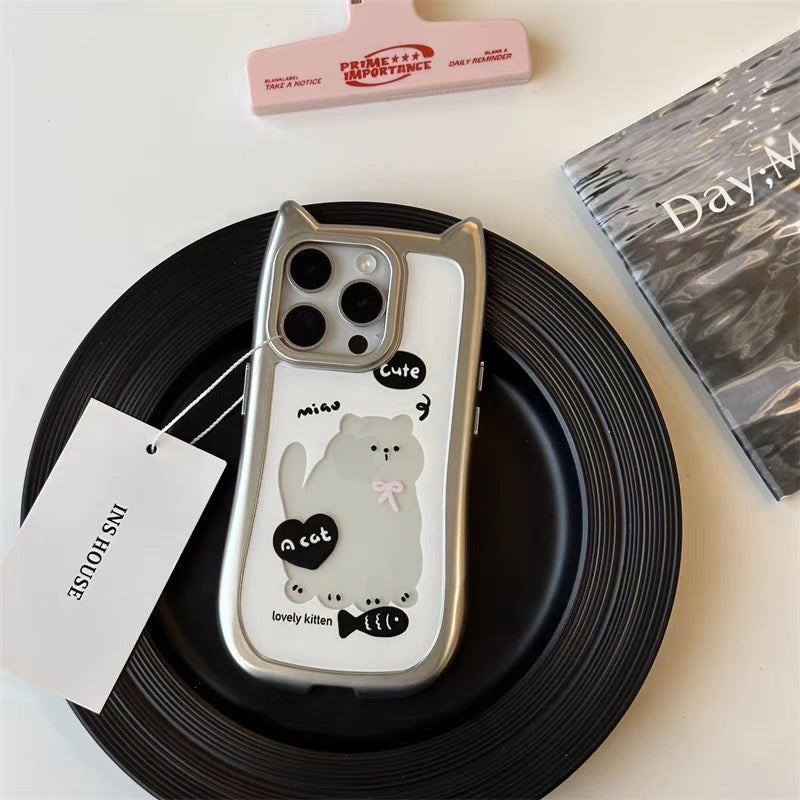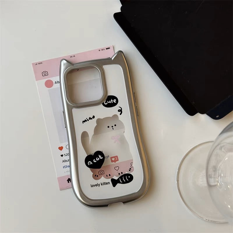 iPhoneケース かわいい 猫 フォーク&スプーン スマホケース