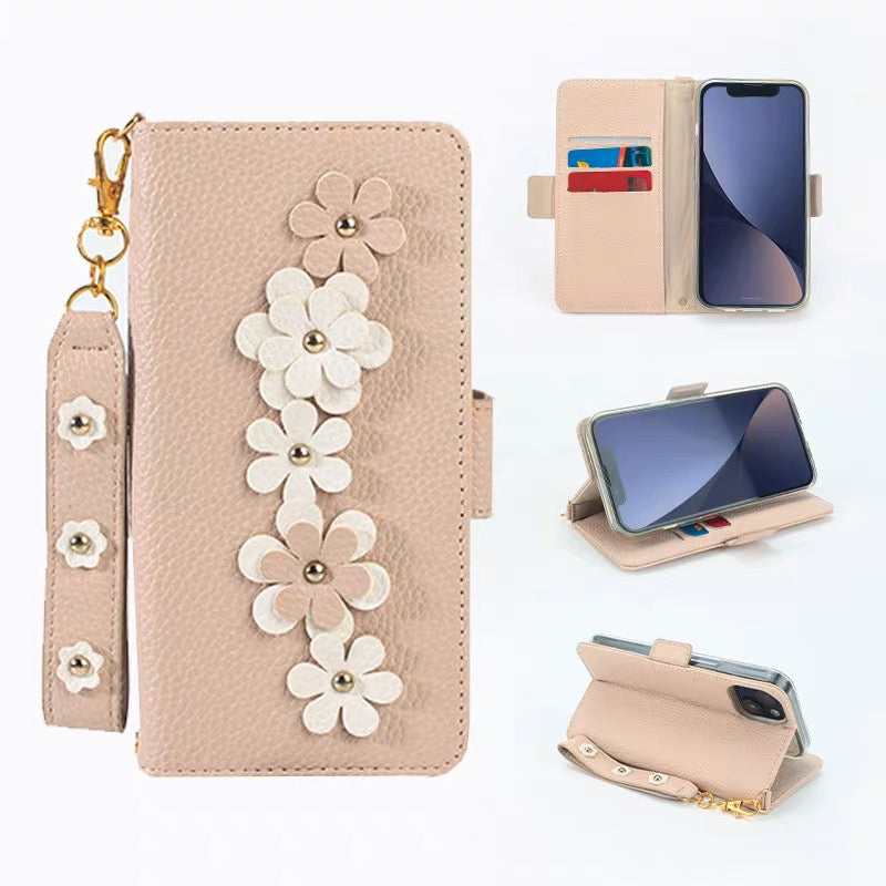 iPhoneケース おしゃれ 立体 フラワー 手帳型 スマホケース