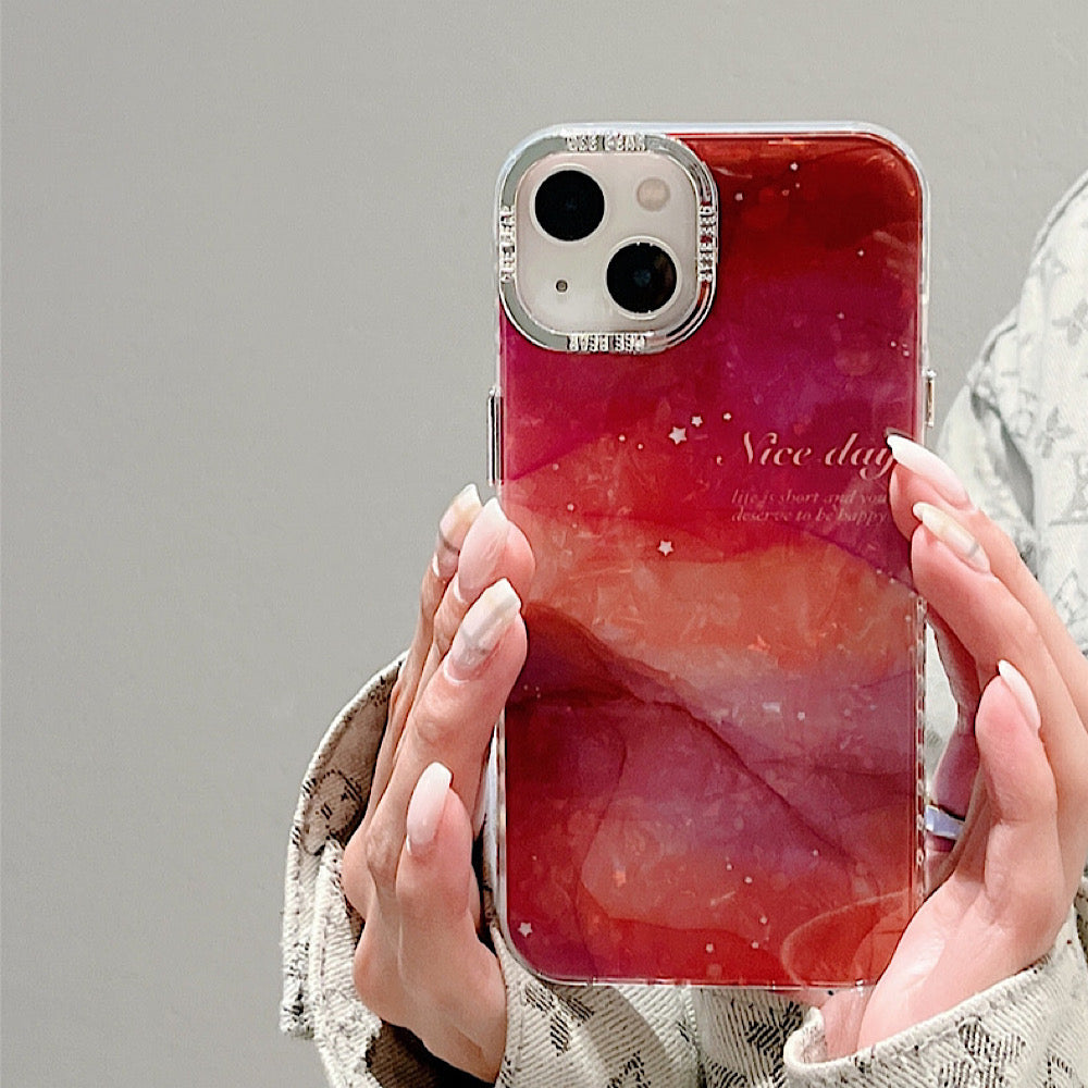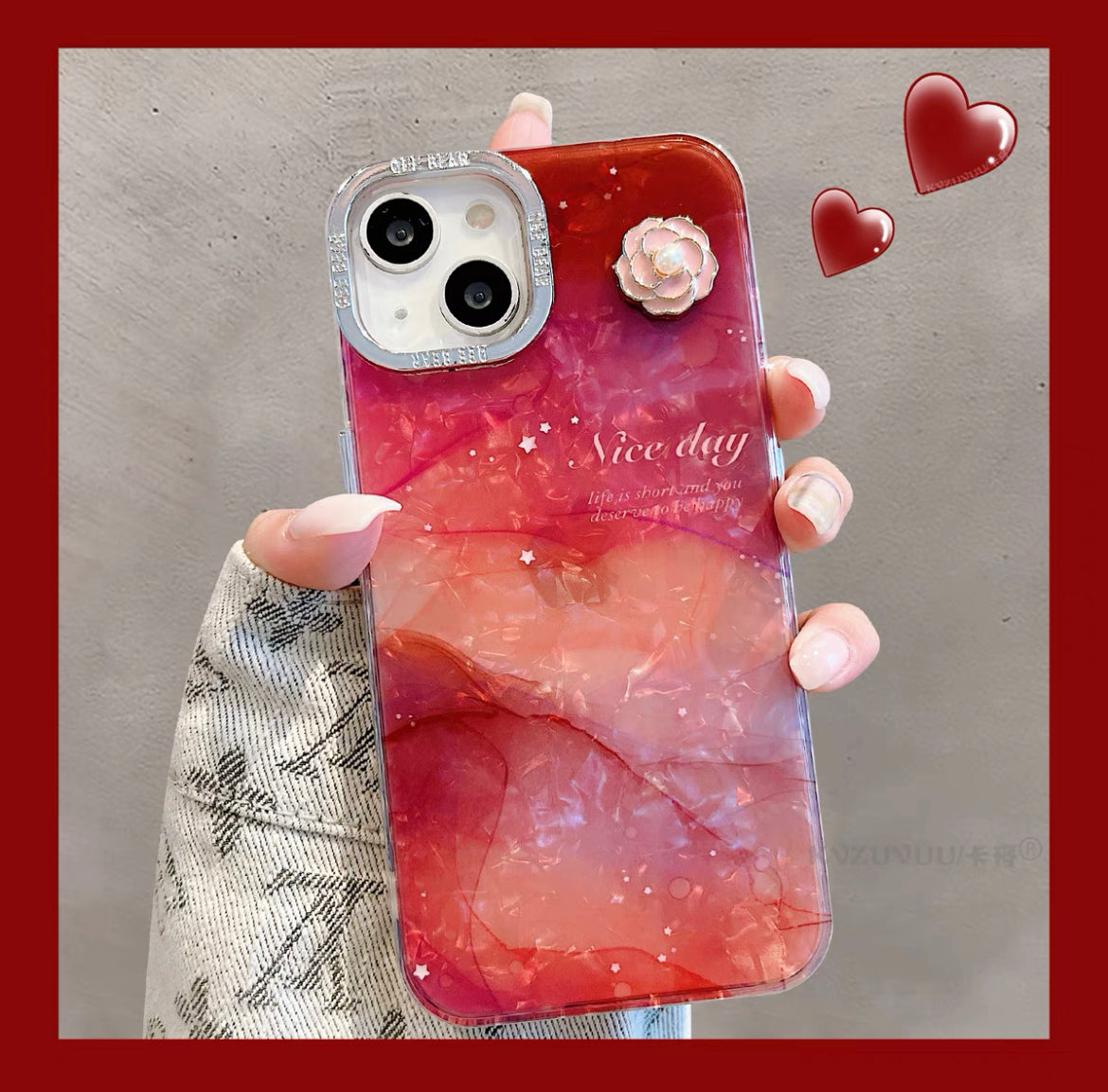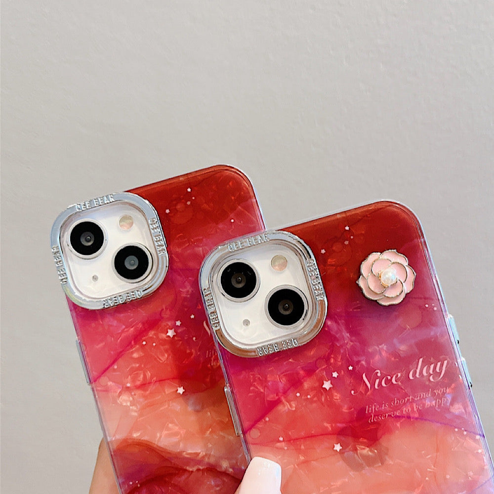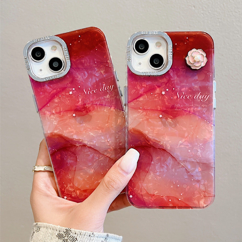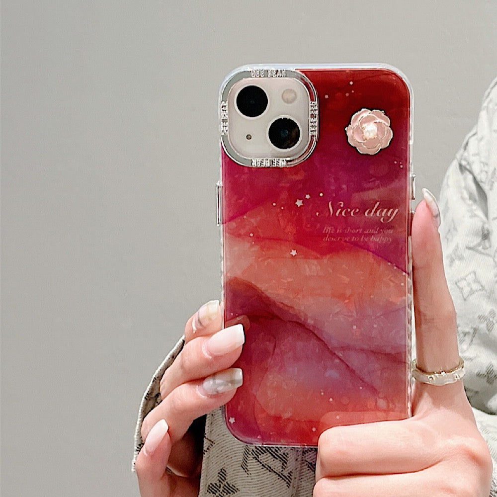 iPhoneケース 大理石風 フラワー おしゃれ レッド スマホケース