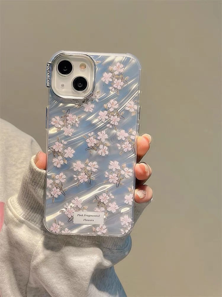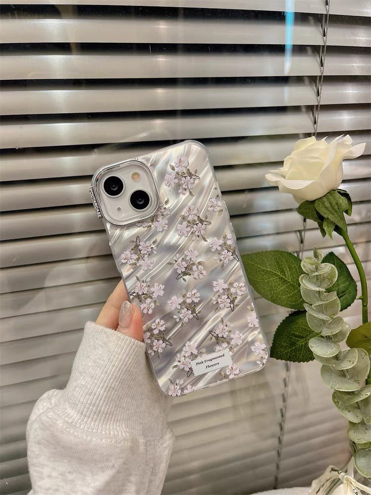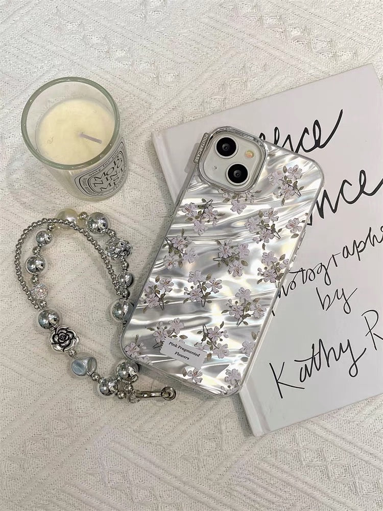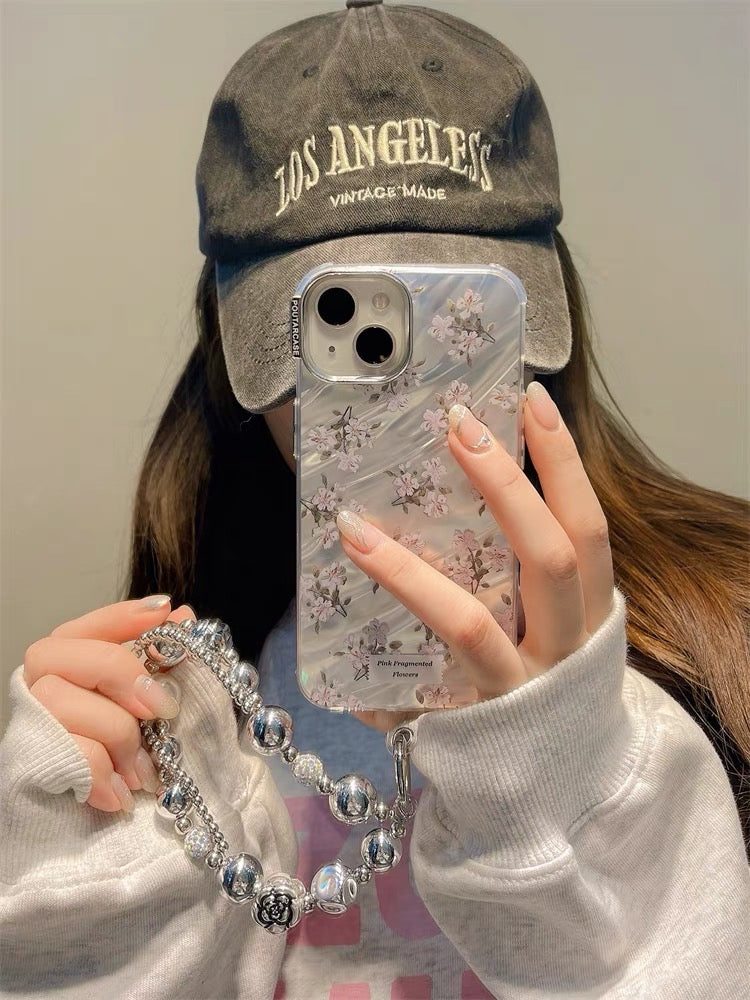 iPhoneケース ピンク フラワー かわいい シルバー スマホケース