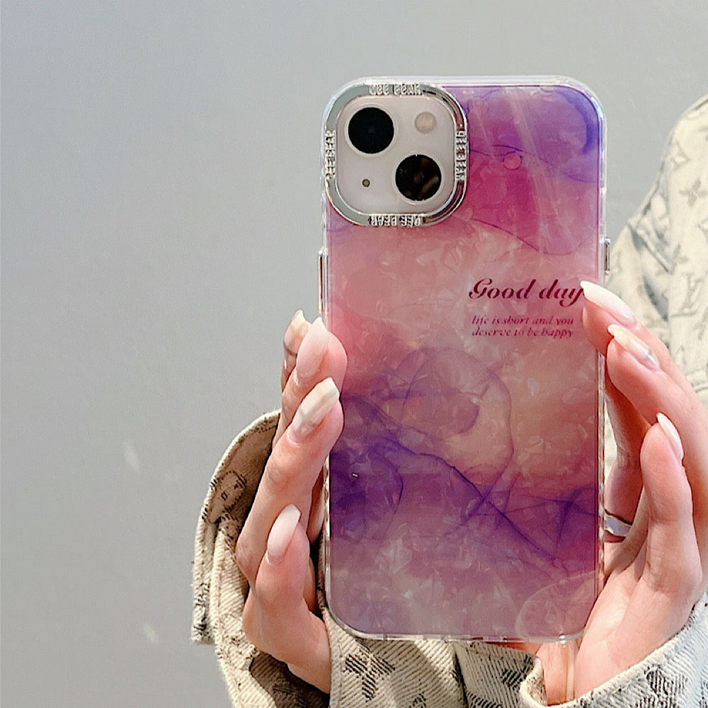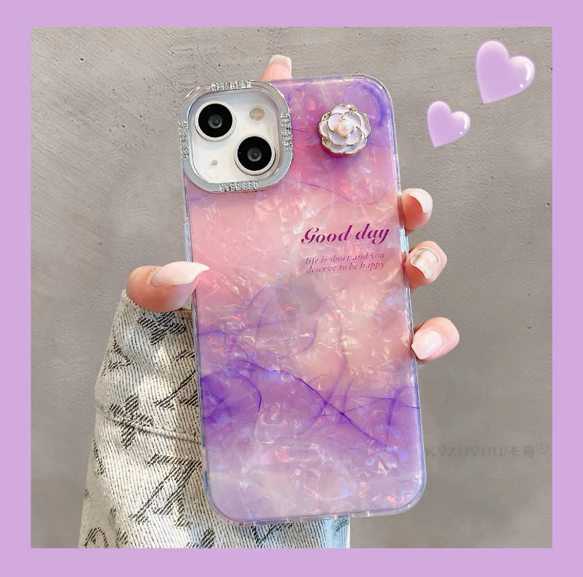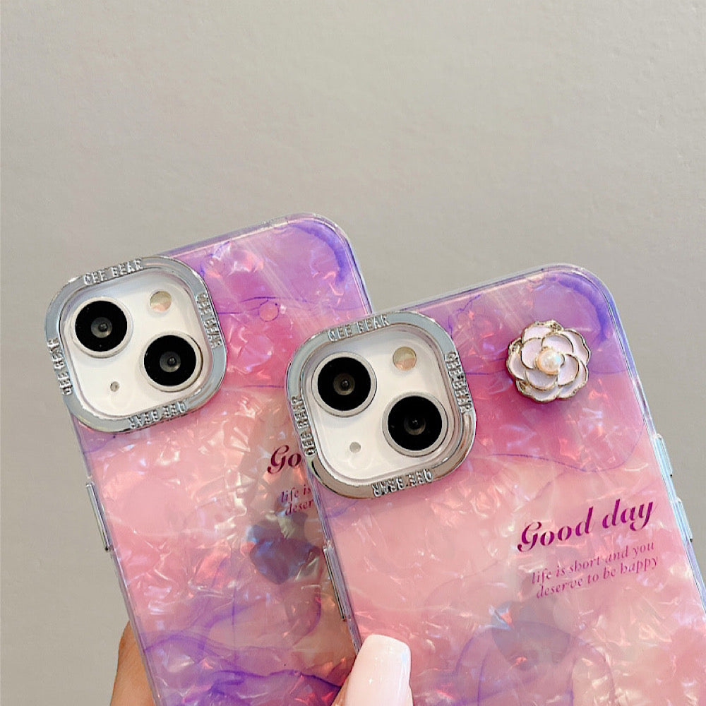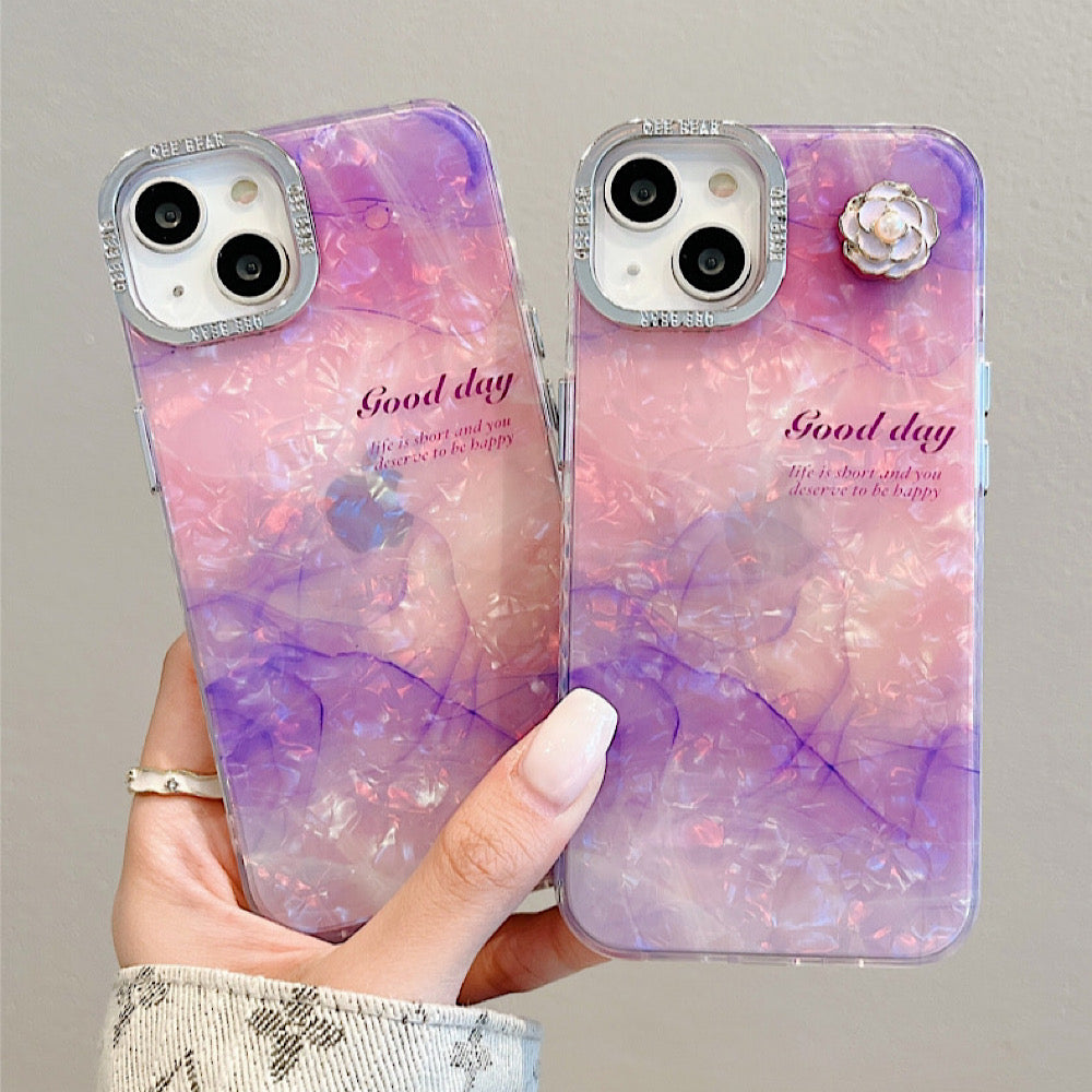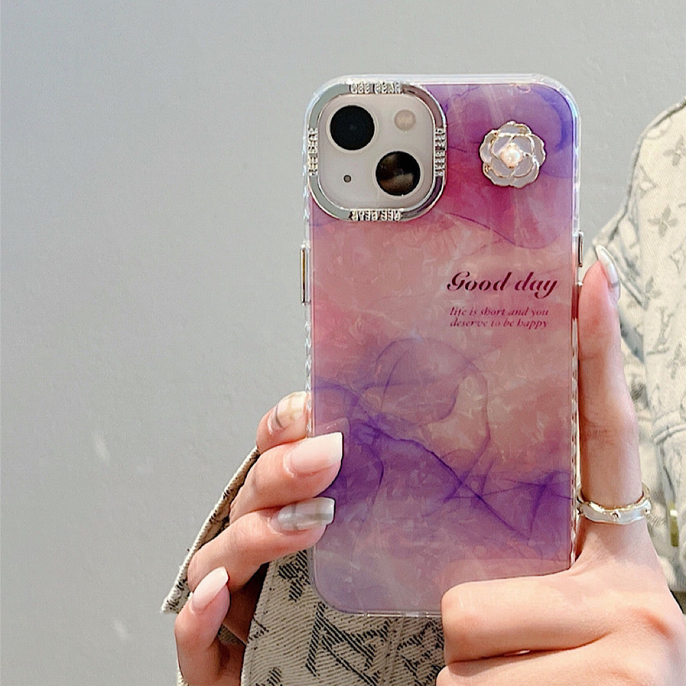 iPhoneケース 大理石風 フラワー おしゃれ パープル スマホケース