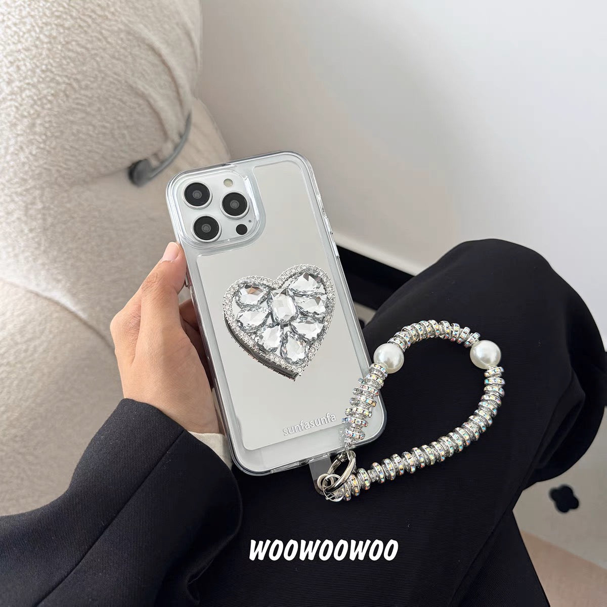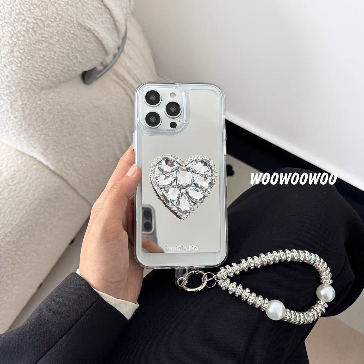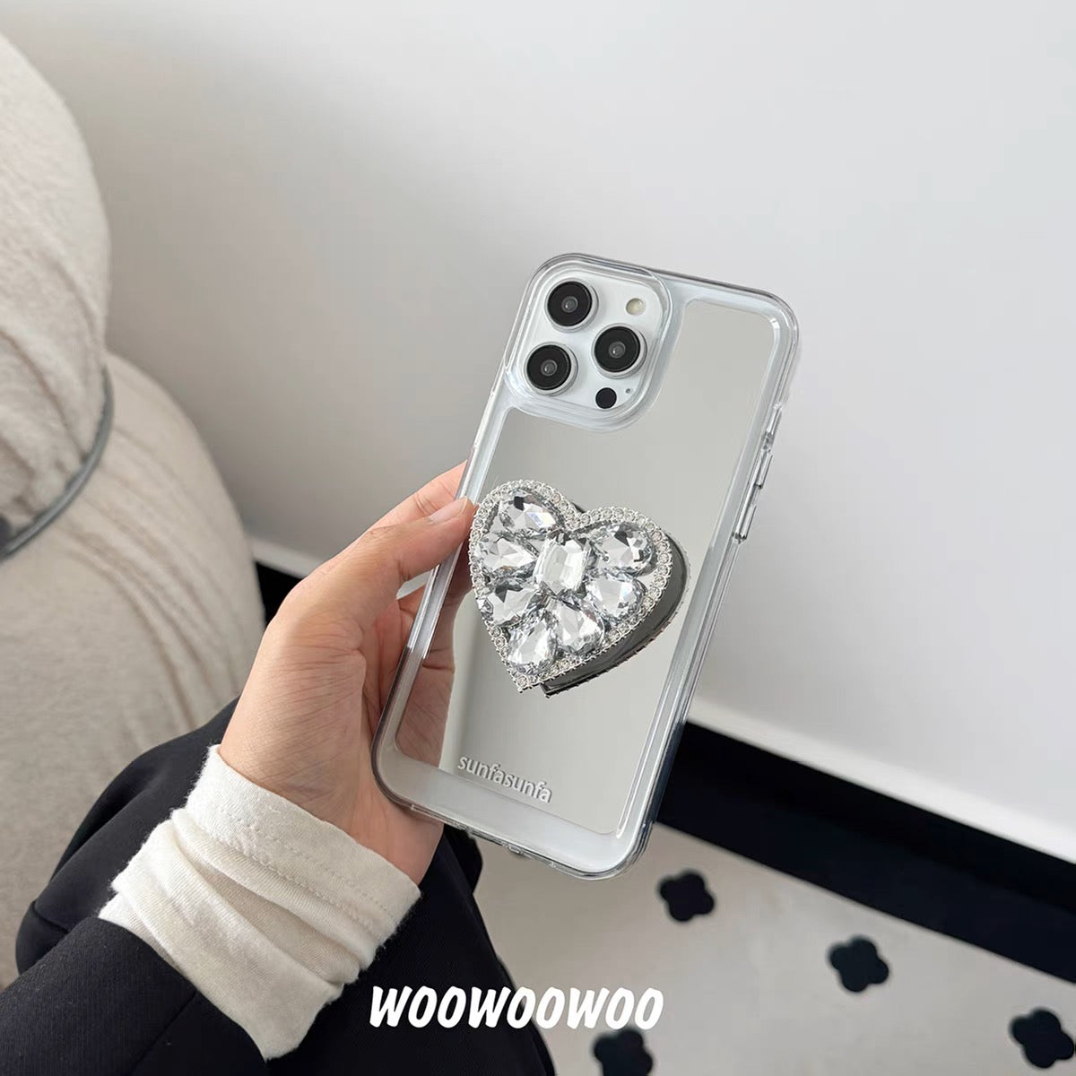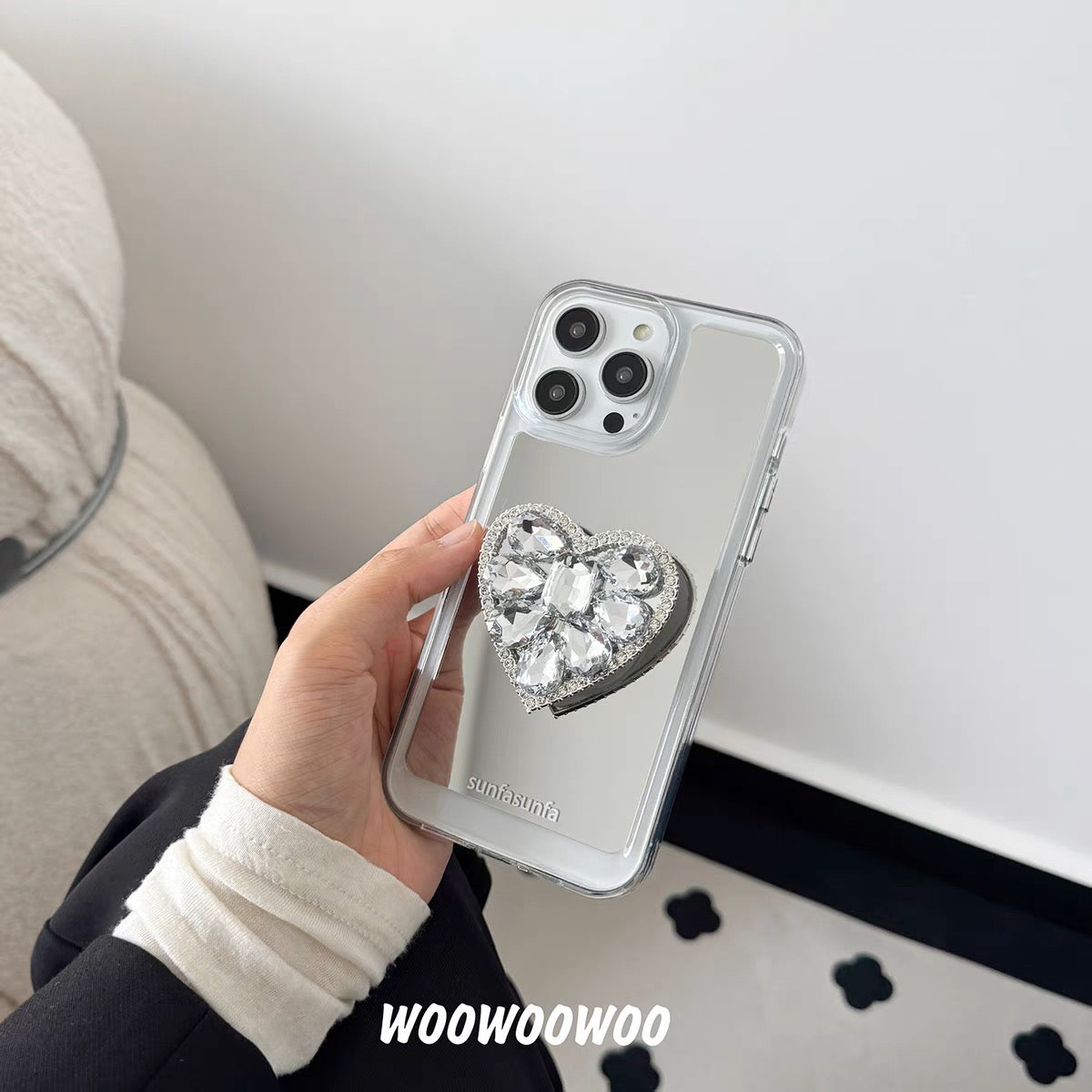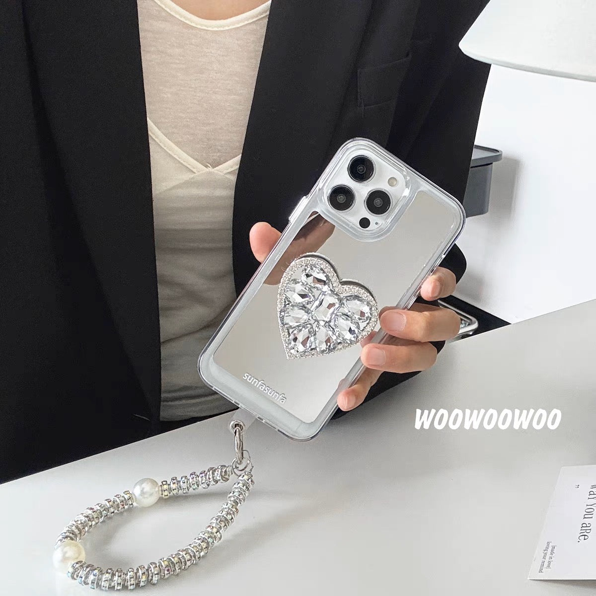 iPhoneケース おしゃれ キラキラ ハート ミラー付き スマホケース