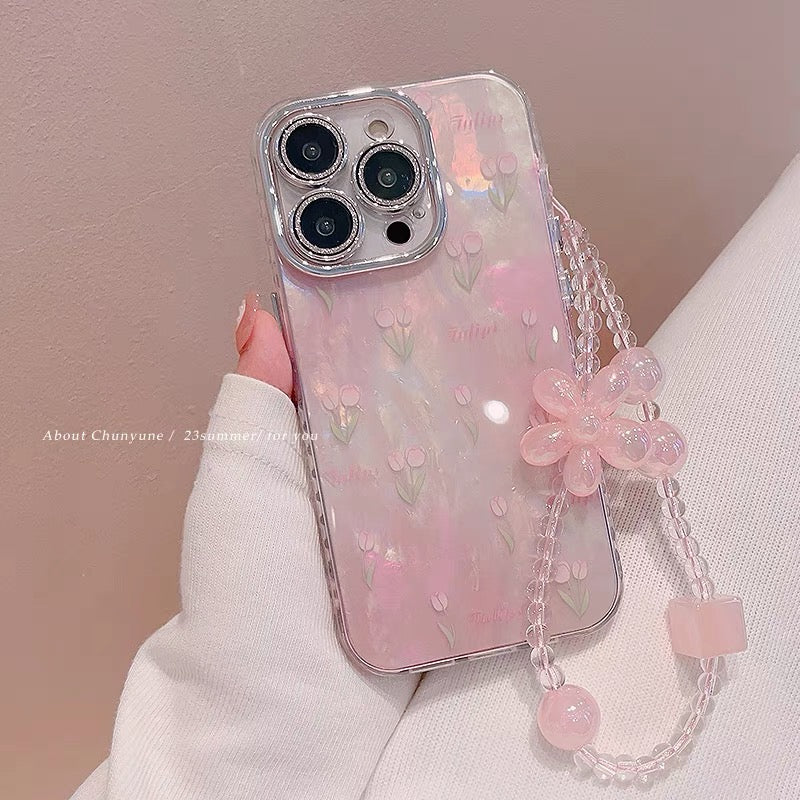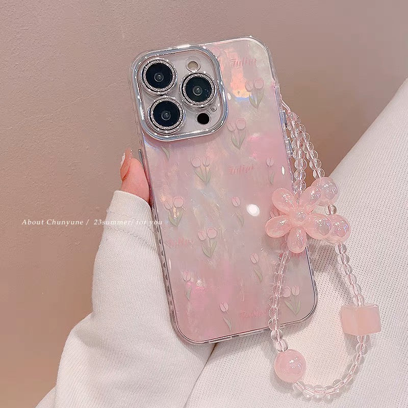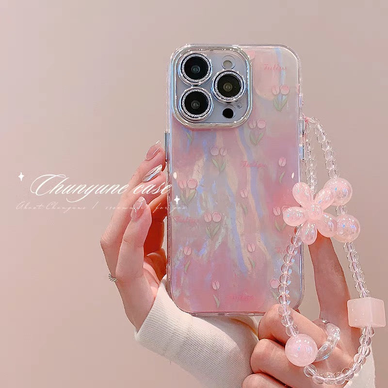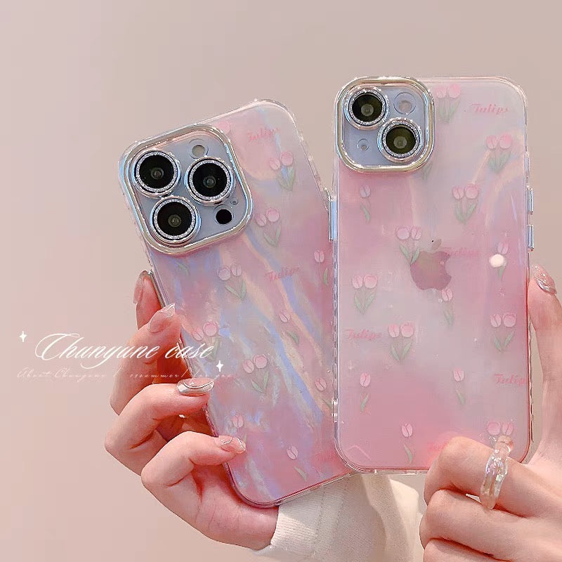 iPhoneケース かわいい ピンク チューリップ スマホケース