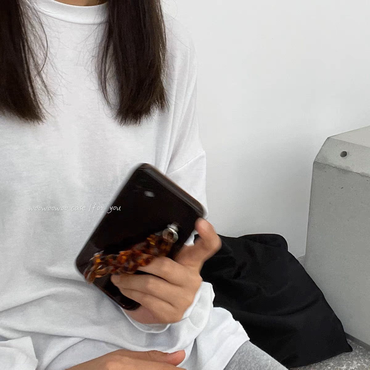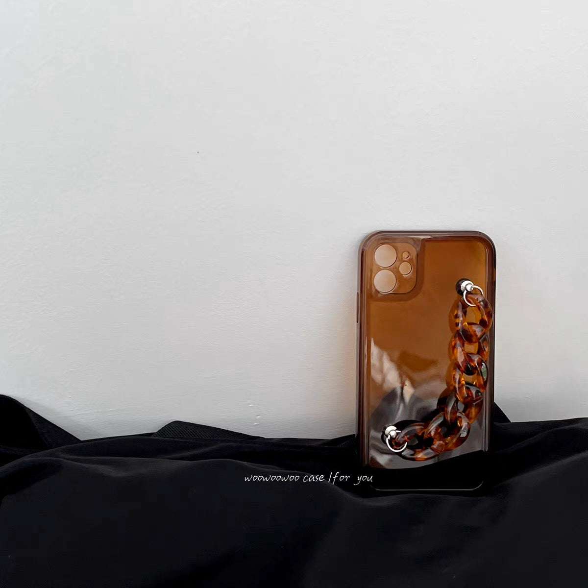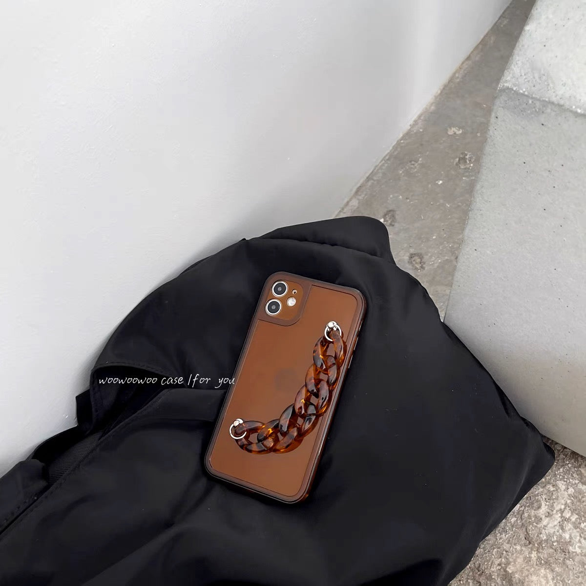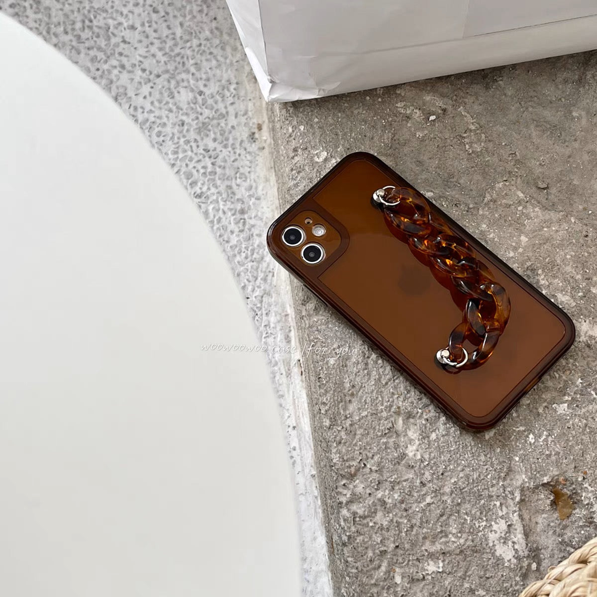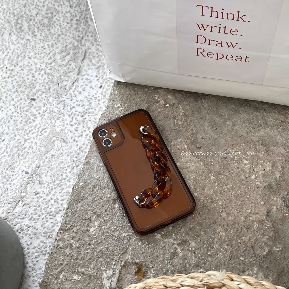 iPhoneケース おしゃれ チェーン 持ち手付き ブラウン スマホケース