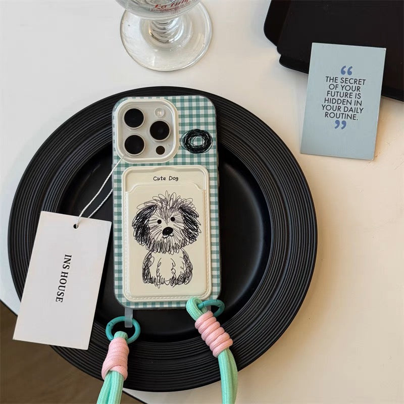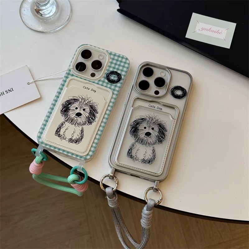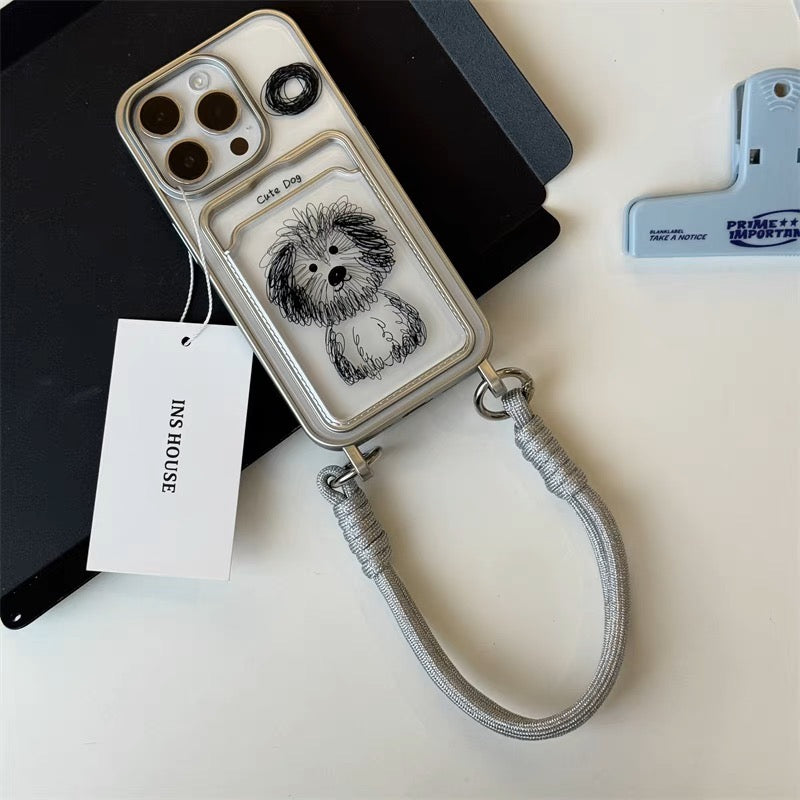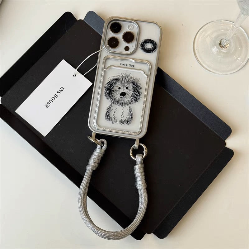 iPhoneケース 持ち手付き かわいい 犬 スマホケース