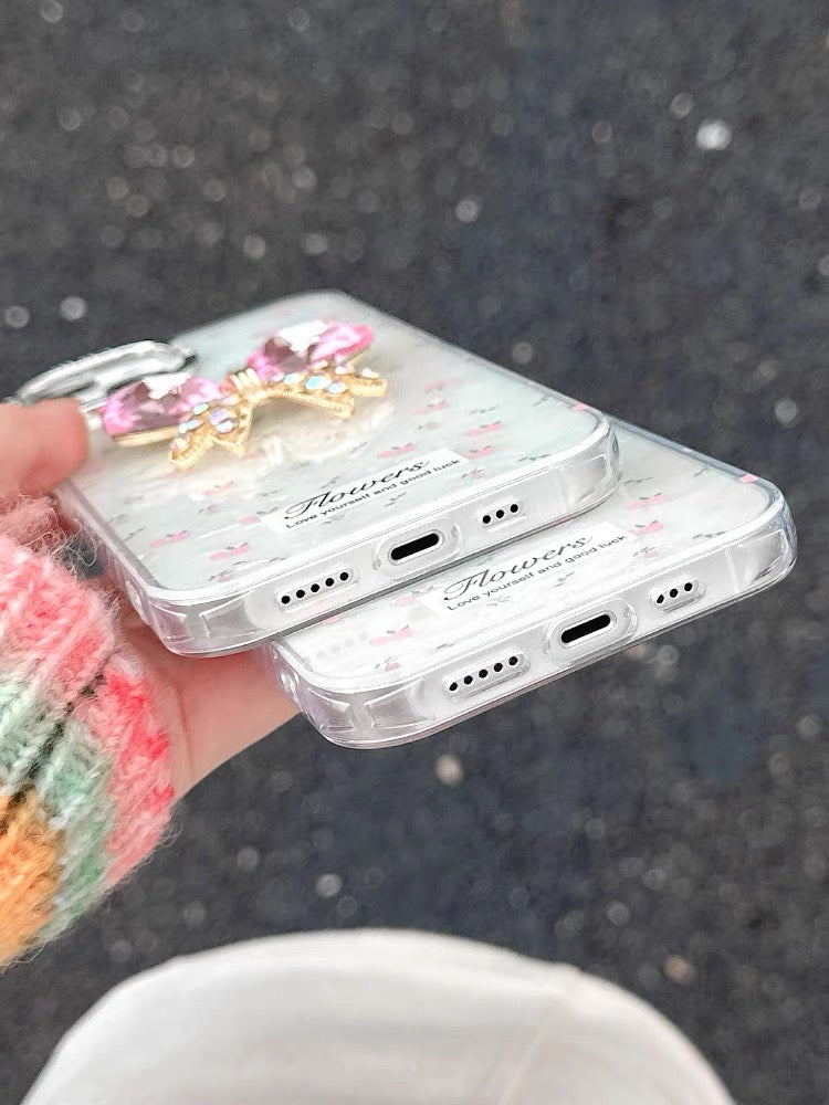 iPhoneケース リボン ピンク フラワー かわいい スマホケース