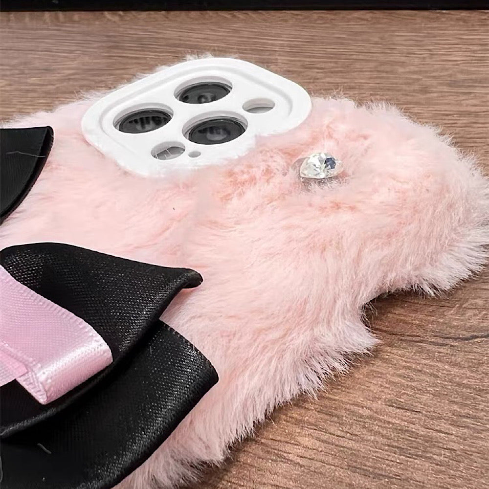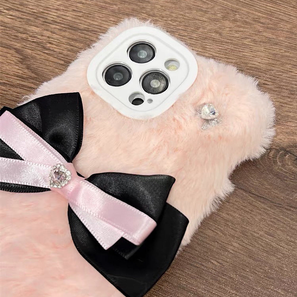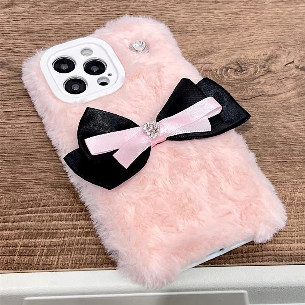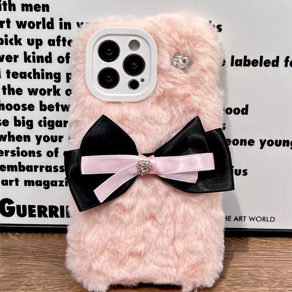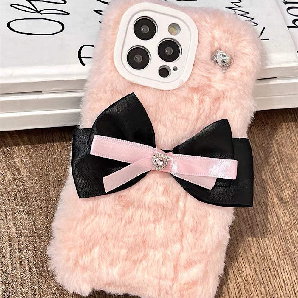 iPhoneケース もふもふ リボン ハート かわいい スマホケース