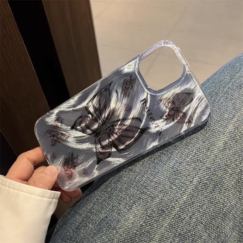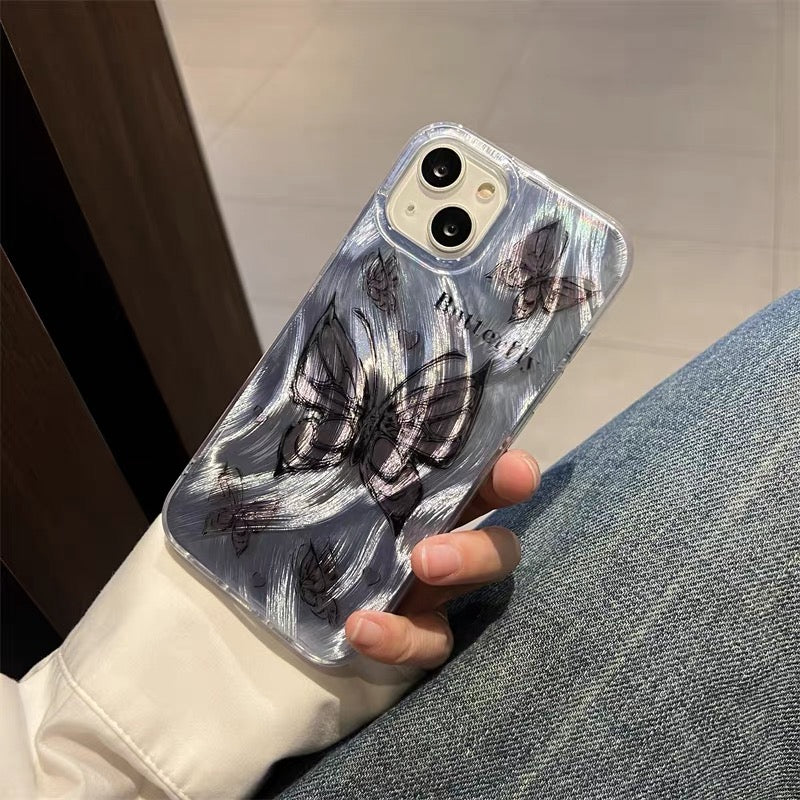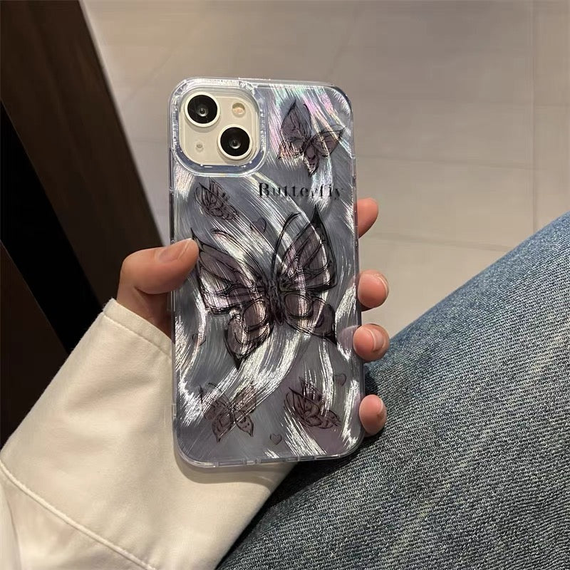 iPhoneケース 蝶々 おしゃれ シルバー スマホケース