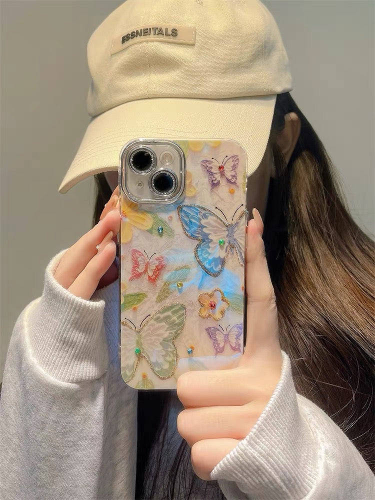 iPhoneケース カラフル 蝶々 かわいい スマホケース