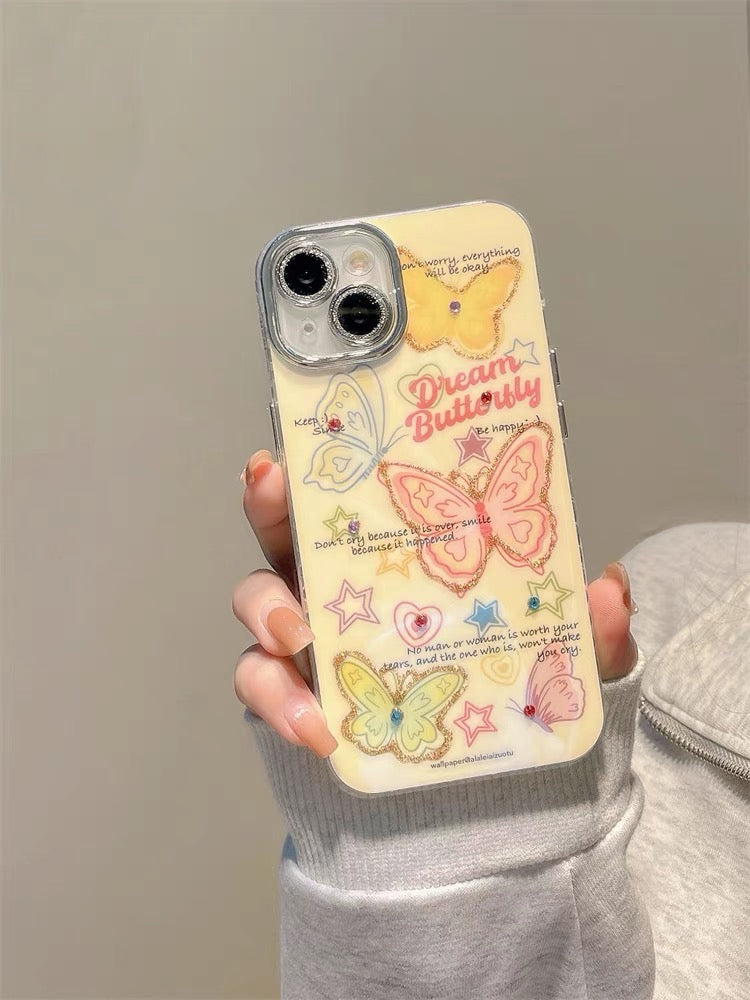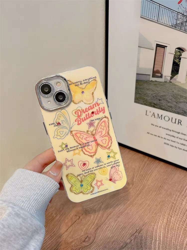 iPhoneケース カラフル 蝶々 かわいい イエロー スマホケース