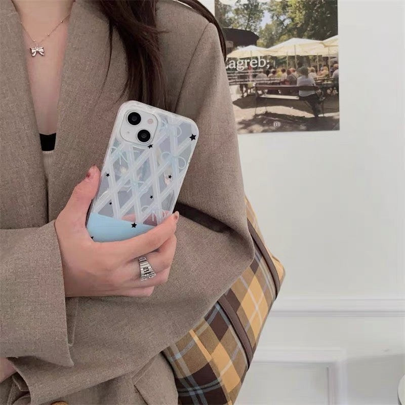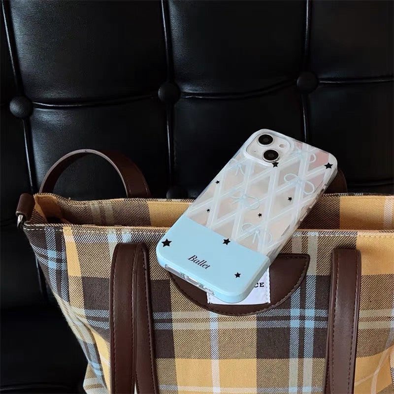 iPhoneケース アーガイル リボン スター おしゃれ スマホケース