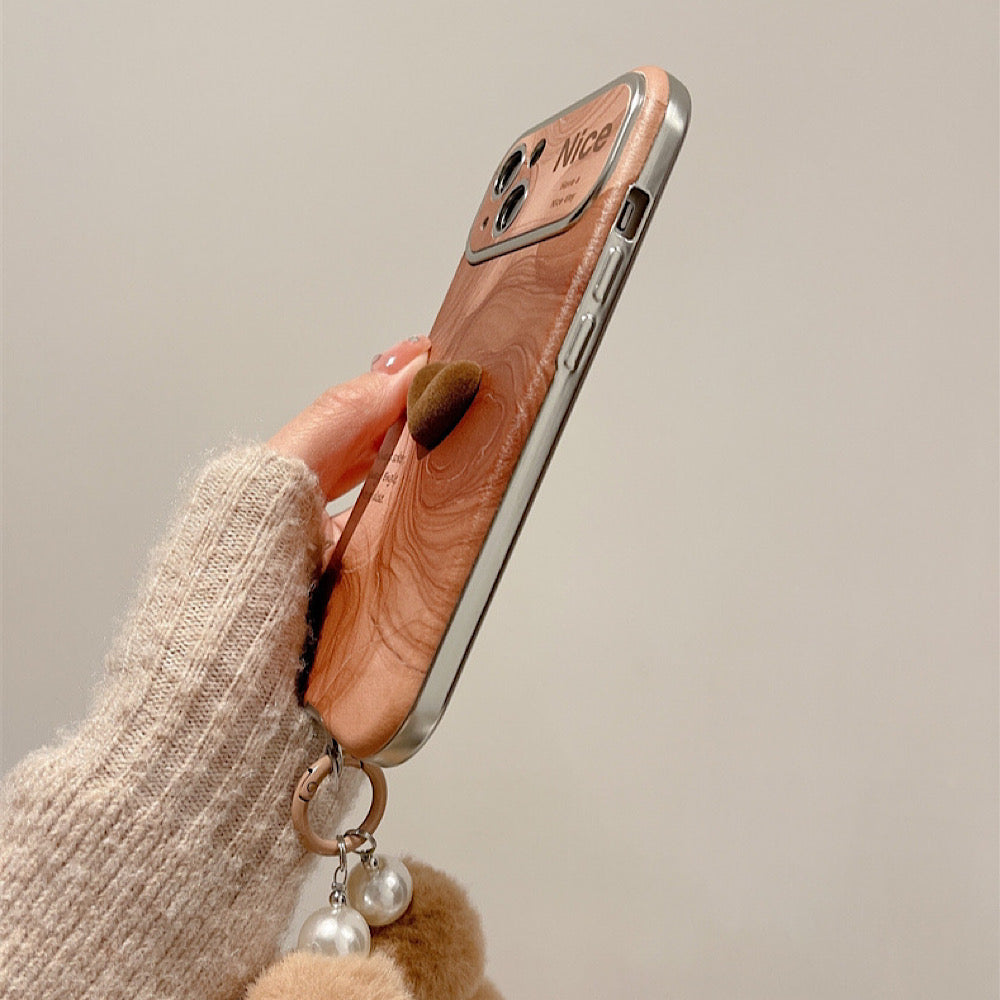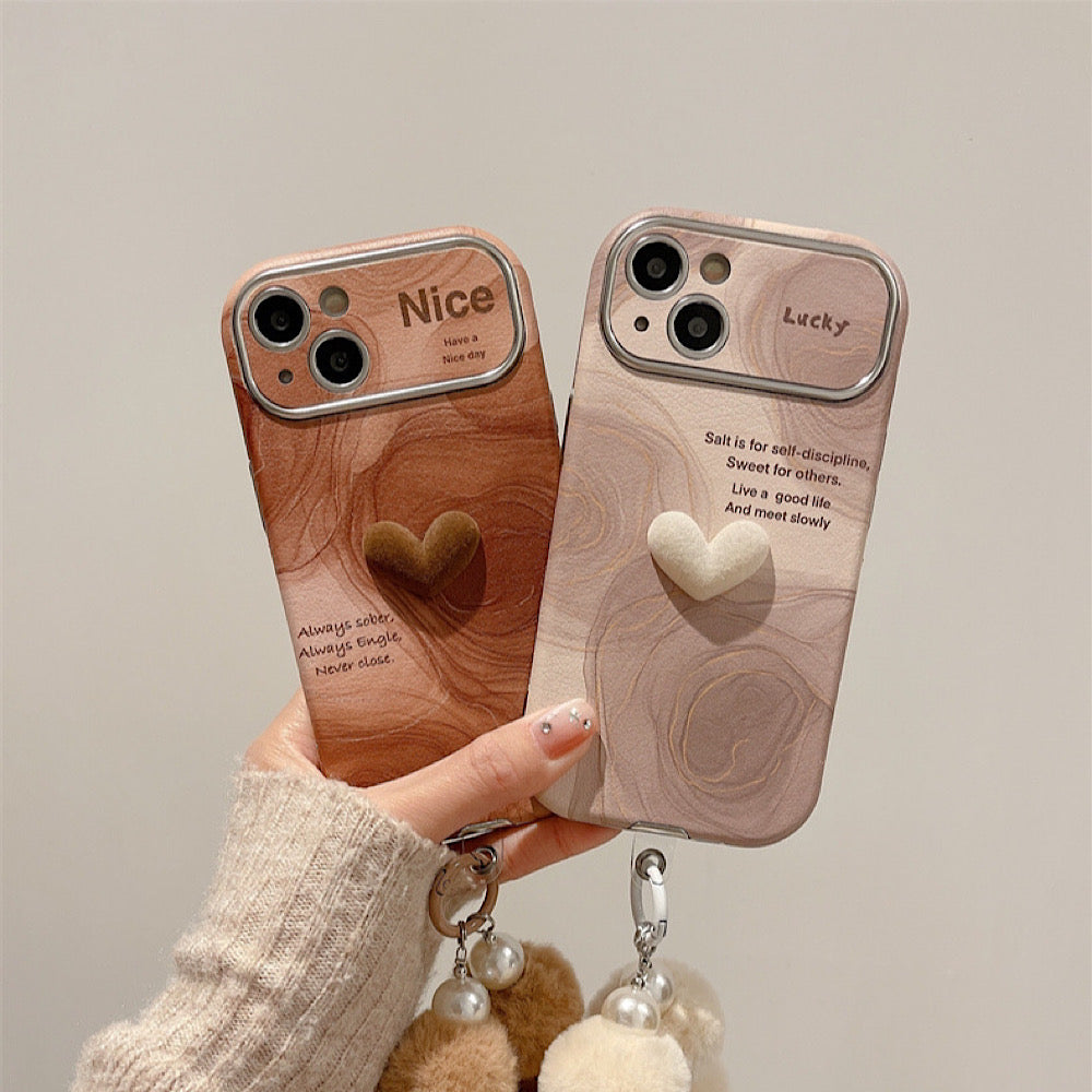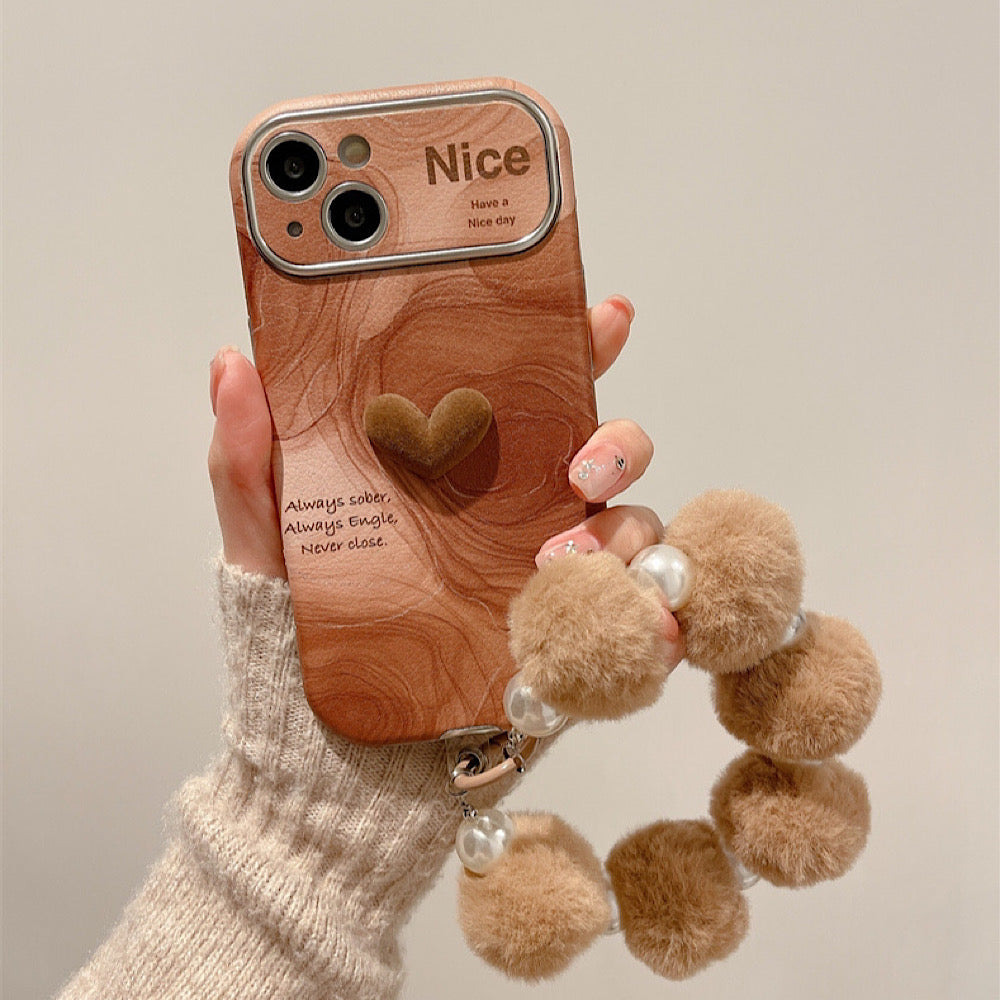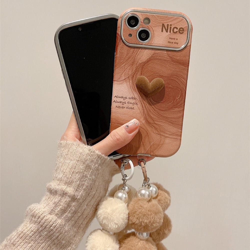 iPhoneケース カメラ保護 ハート 木製柄 おしゃれ スマホケース